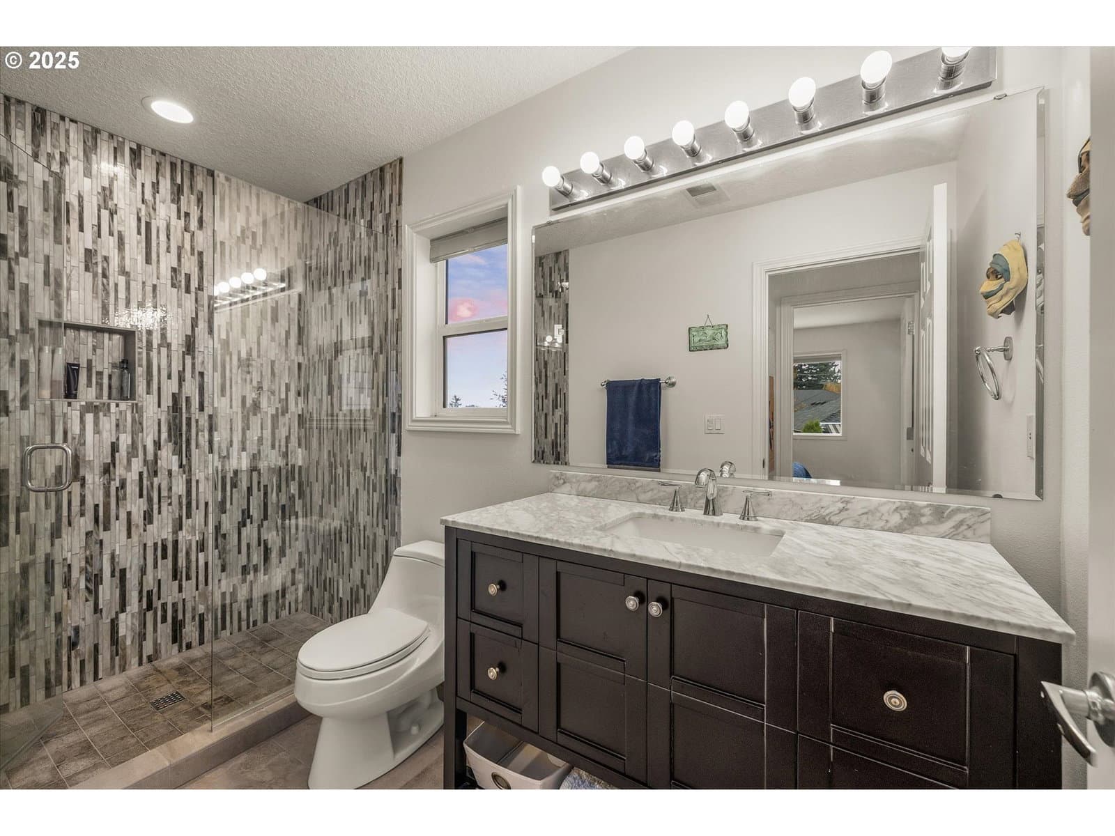 Welcome home to this stunning custom residence in the heart of Clackamas, just south of Sunnyside, where timeless design meets modern luxury. From the moment you enter, soaring vaulted ceilings and walls of natural light create an immediate sense of warmth and sophistication. Gleaming oak hardwood floors flow throughout the open-concept main level, seamlessly connecting the spacious living room, elegant dining area, and show-stopping chef’s kitchen. Designed for both everyday living and effortless entertaining, the kitchen features a large cook island with eating bar, quality upgrades throughout, and all appliances included - ready for your first gathering. The sought-after great room floor plan offers an airy, inviting space that feels both grand and comfortable. The main-level primary suite is a true retreat, complete with a spa-inspired bath featuring double sinks, a jetted soaking tub, separate shower, rich tile finishes, and a generous walk-in closet. A versatile main-level den/office, easily used as a fourth bedroom, provides the perfect work-from-home setup and includes a sliding door to the patio for seamless indoor-outdoor living. Upstairs, you’ll find two additional bedrooms and a full bathroom. Step outside to the fully fenced, low-maintenance backyard, highlighted by a custom covered patio and storage shed - ideal for morning coffee, summer evenings, or entertaining year-round. Highlights include: completely remodeled and updated throughout, vaulted ceilings and high-end finishes, Open light-filled floor plan, main-level primary suite, chef’s kitchen with island and eating bar, den/office with patio access, custom covered patio and easy-care yard. Rarely does a home of this caliber, craftsmanship, and thoughtful design become available. Don’t miss the opportunity to own this beautifully updated home in a prime location near Happy Valley. Open Houses this weekend Sat/Sun 2/7 & 2/8 12-2pm