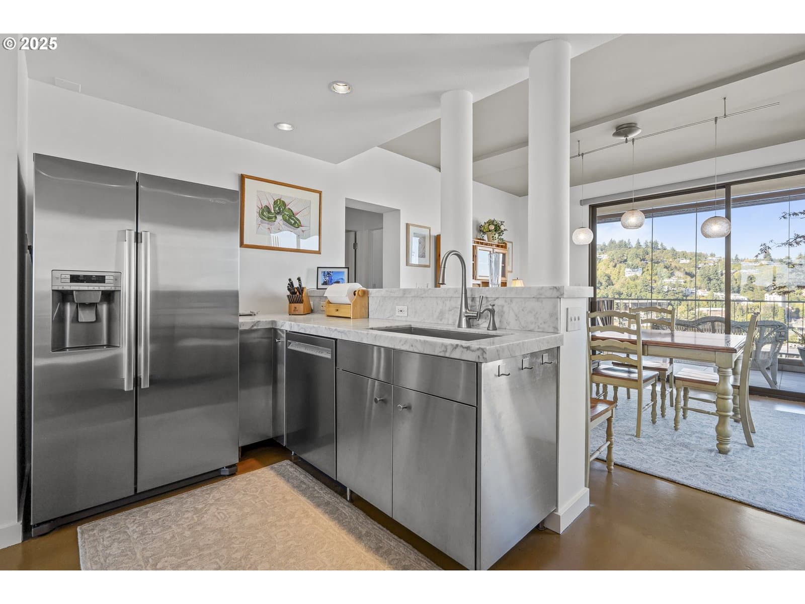 Perched on the 21st floor of the coveted American Plaza Towers, this contemporary condo offers panoramic views that redefine city living. With balconies on both the east and west sides, you’ll wake to serene river and mountain vistas and wind down with dazzling sunsets and twinkling city lights—every room is framed by breathtaking scenery.Inside, the open floorplan is thoughtfully updated for modern comfort and style. Marble countertops, sleek stainless steel cabinetry, open shelving, and premium stainless appliances—including a wine fridge and convection oven—create a kitchen that’s as functional as it is beautiful. The primary suite is a private retreat, featuring a walk-in shower and dual stainless vanity for a spa-like experience.The Plaza is a full-service community that elevates your lifestyle with secure garage parking, indoor and outdoor pools, hot tubs, saunas, a fully equipped cardio/weight training gym, and 24/7 security and concierge services. Whether you're entertaining, relaxing, or working from home, this condo in the sky offers the perfect blend of luxury, convenience, and stunning Portland views.