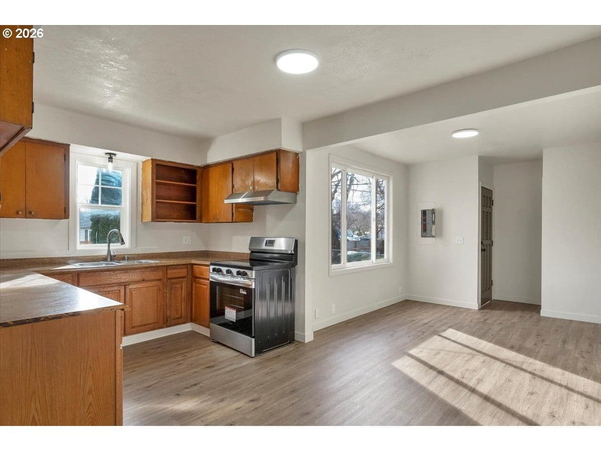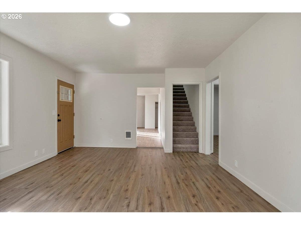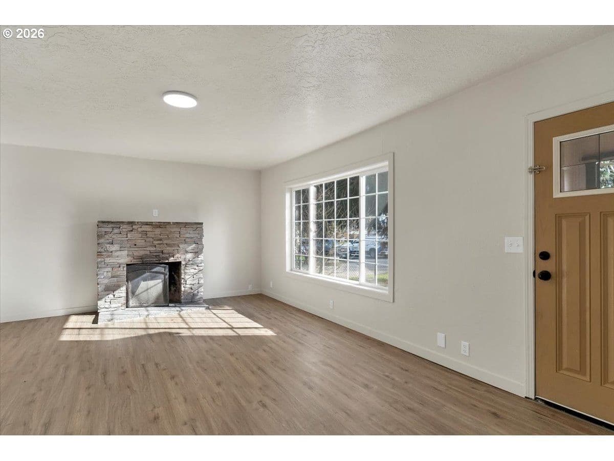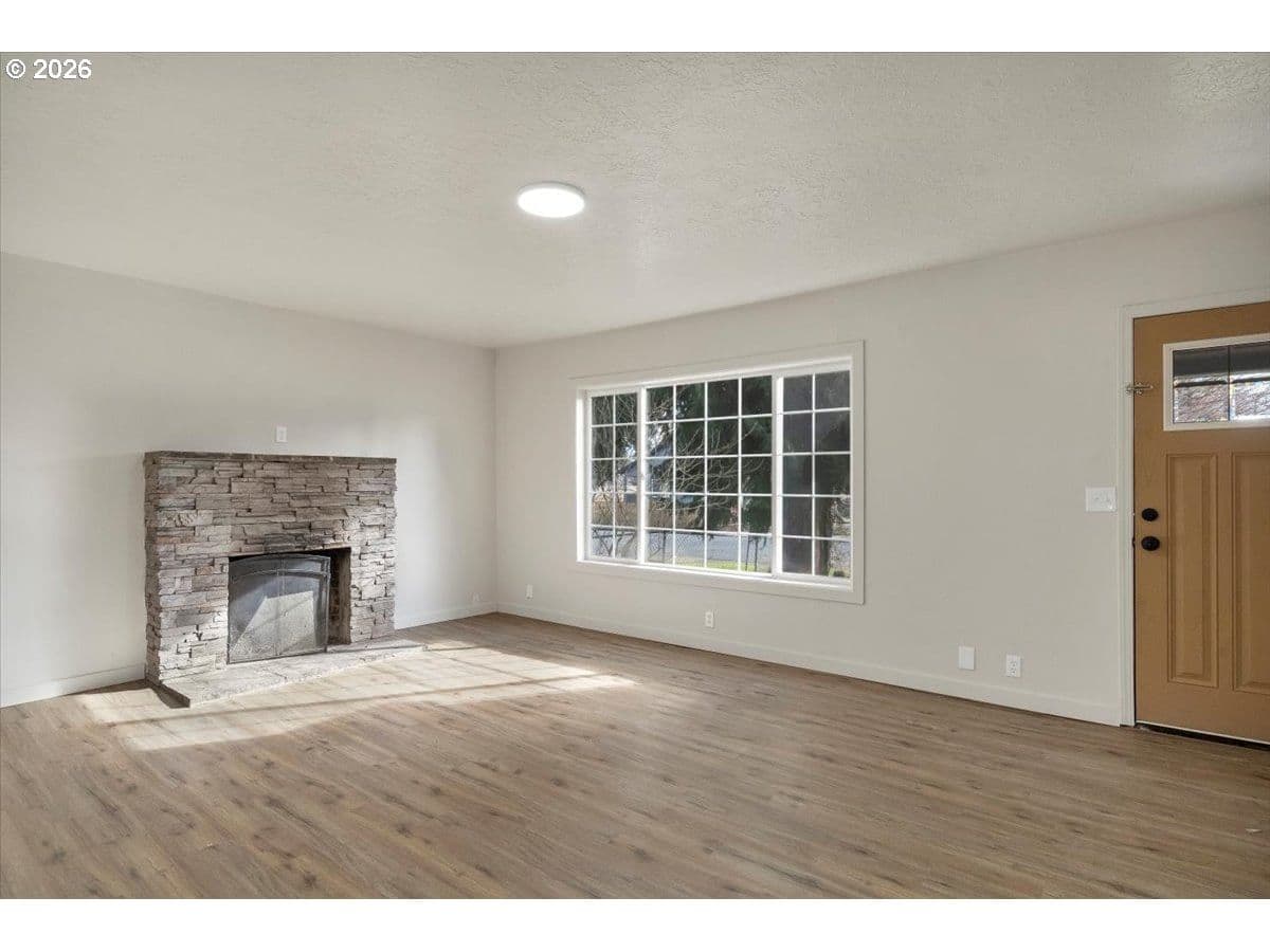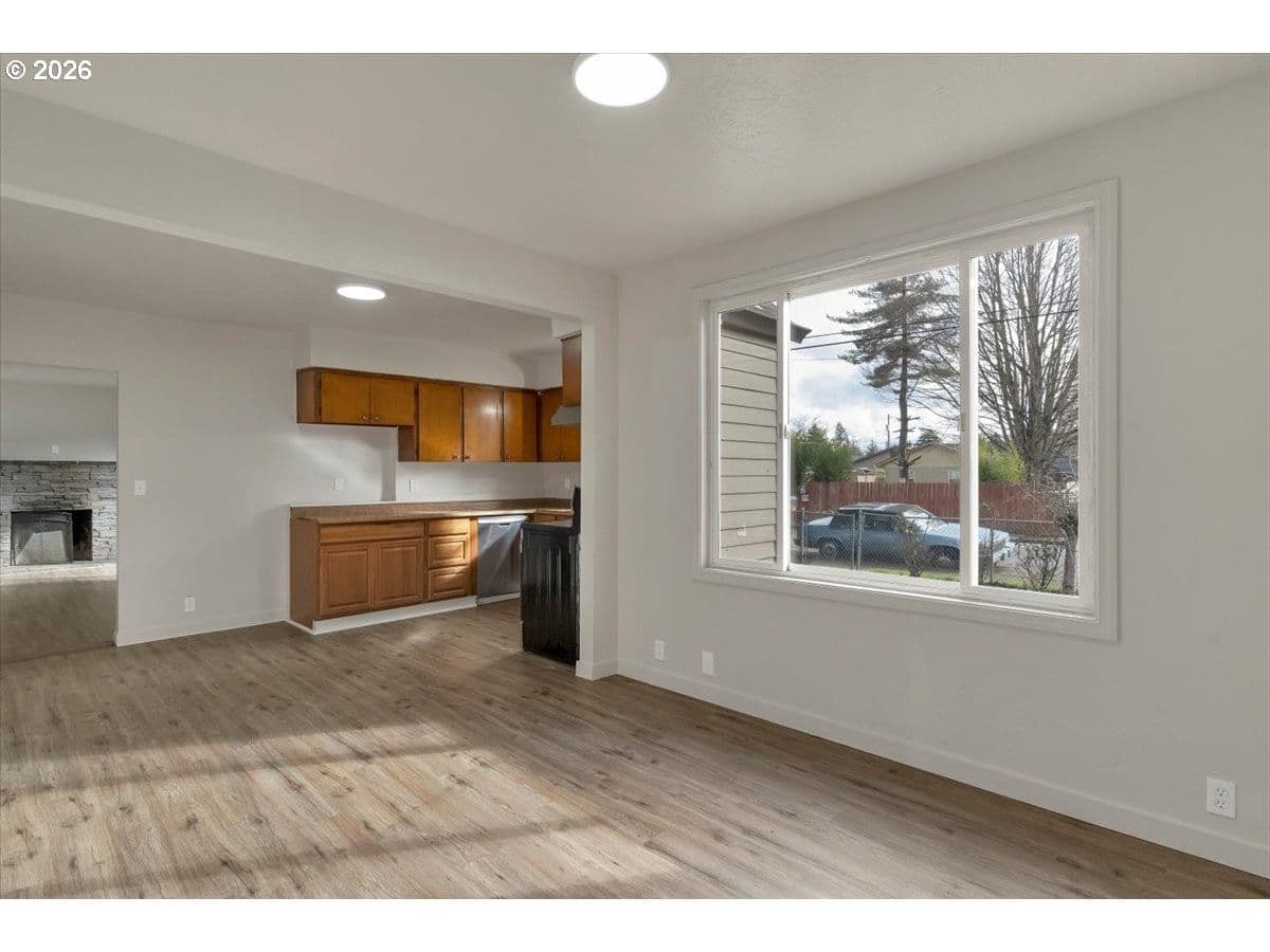 Spacious two-story home featuring 5 bedrooms and 2 full baths, perfect for flexible living. Enjoy fresh interior paint and brand-new flooring throughout, creating a clean, modern feel. The inviting wood-burning fireplace anchors the main living area, ideal for cozy evenings. Generous layout offers room to grow, work, and entertain. Step outside to a large yard with endless potential for outdoor living, gardening, or play. A must-see property with space and updates already in place!LB has ownership interest.