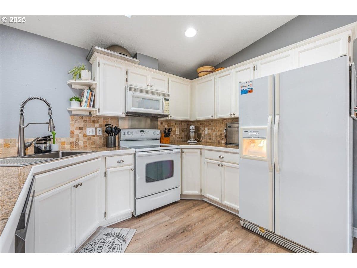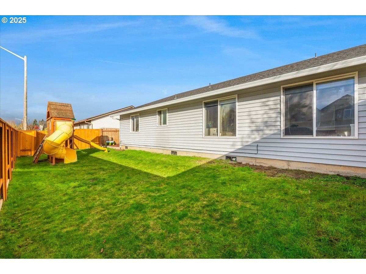 Battle Ground Beauty - 1 level home has 3-beds, 2-baths. This 1,688 SqFt home shines with pride of ownership and thoughtful updates. Open-concept living with vaulted ceilings, a bright kitchen with lots of counter space, cabinetry, and pantry! The primary has a step in shower, soaking tub, and large walk-in closet.Updates include: roof (2017), water heater (2020), fresh interior paint & modern fixtures (2023), and new flooring (2025). Attached 2-car garage offers additional storage and utility sink. Step outside to a new fully fenced backyard with gazebo, play structure, dog run, and shed — perfect for pets, play, or relaxing evenings. No HOA & Move-In Ready! schedule your appointment today.