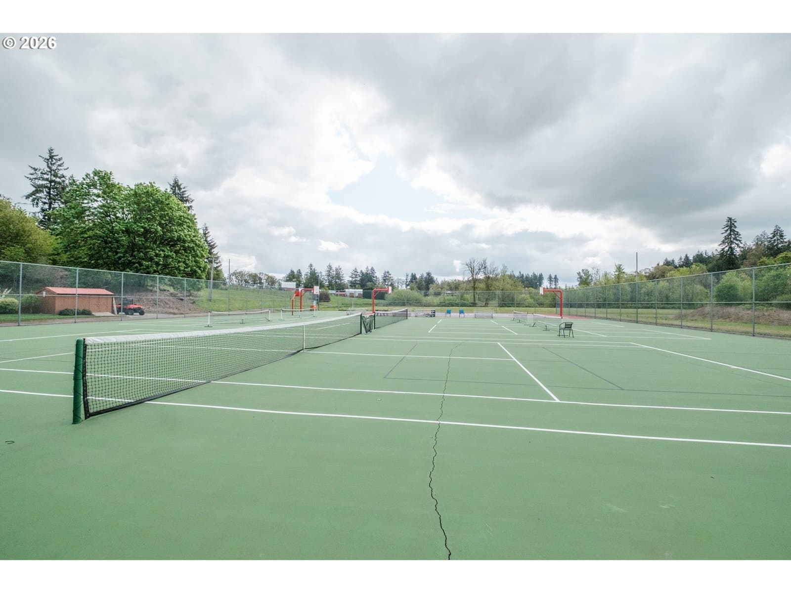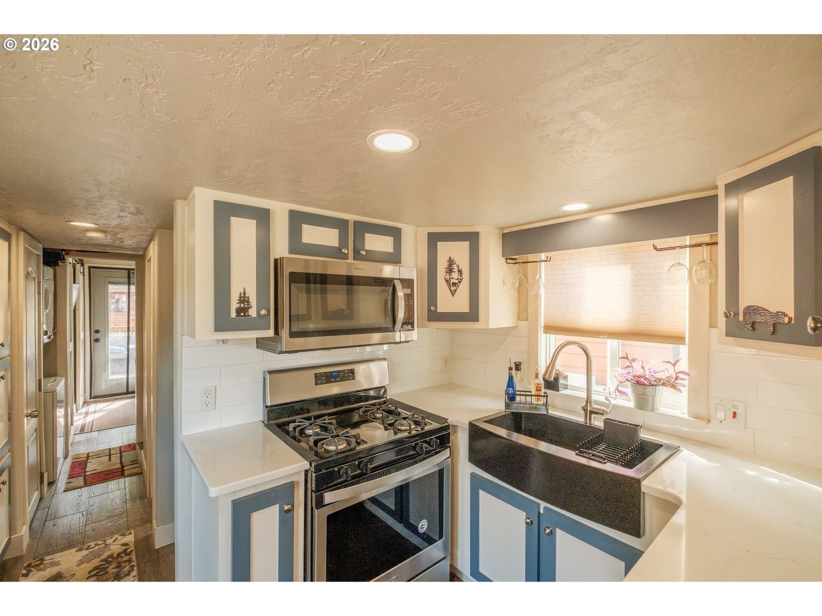 Welcome to this thoughtfully designed 1 bed/1 bath tiny home that blends modern efficiency with cozy charm. Built for comfort and functionality, the home features 50-amp electrical, dual mini splits providing energy-efficient heating & cooling, a beautiful farmhouse sink, stainless appliances, stackable washer/dryer and an oversized loft. Inviting outdoor living with two separate covered decks. Resort living featuring a pool, hot tub, tennis courts, clubhouse, fitness center, walking trails & security gate