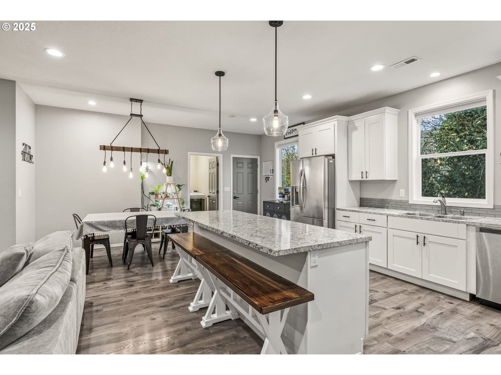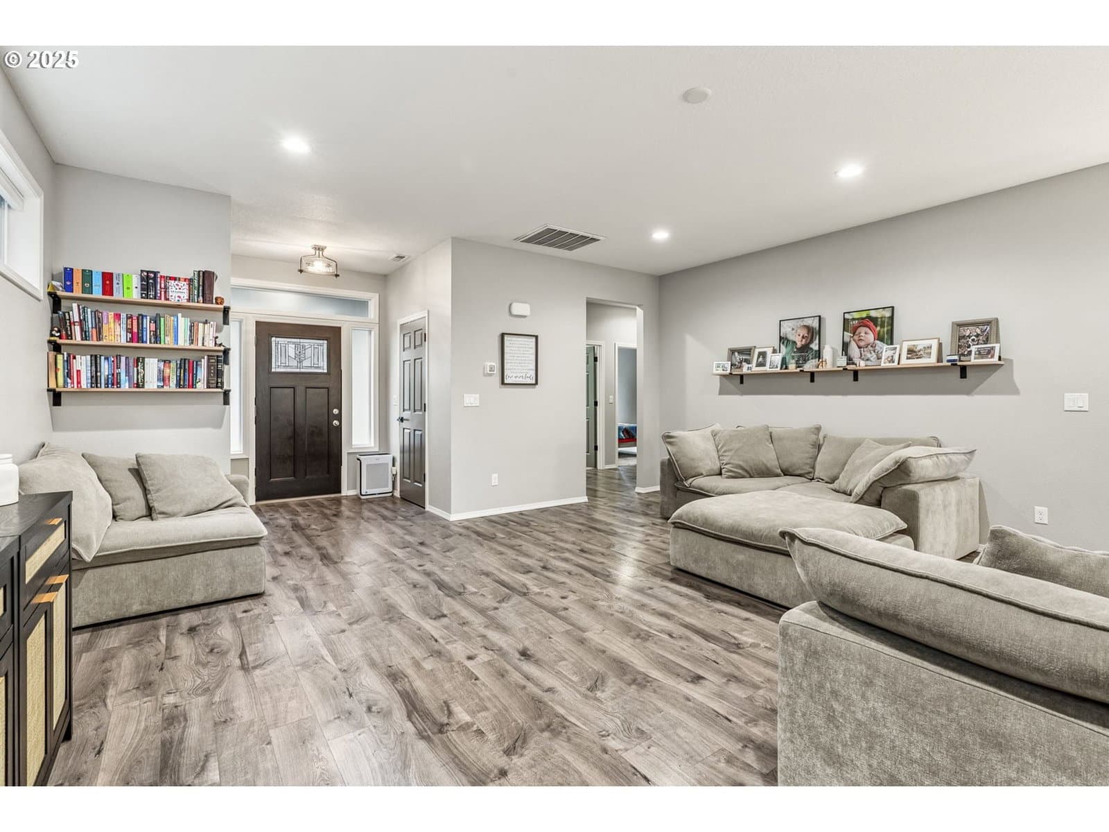Discover the perfect blend of function, style, and comfort in this inviting 3 bedroom, 2 bath home featuring high ceilings, an open layout, and generous room sizes. The elevated design sits a one level plan above a massive garage with space for 5–6 cars plus! Perfect for hobbies, storage, or extra workspace. Relax in the fenced backyard around the firepit or watch squirrels and birds from the kitchen window. Two closets in the primary bedroom! Lots of storage throughout. Clean and bright with neutral color choices and easy care materials. This home offers convenient access to nearby schools, parks, churches, downtown Woodland, and freeway connections. Minutes from Lewis River and Horseshoe Lake for summer fun. Home in the center of it all!