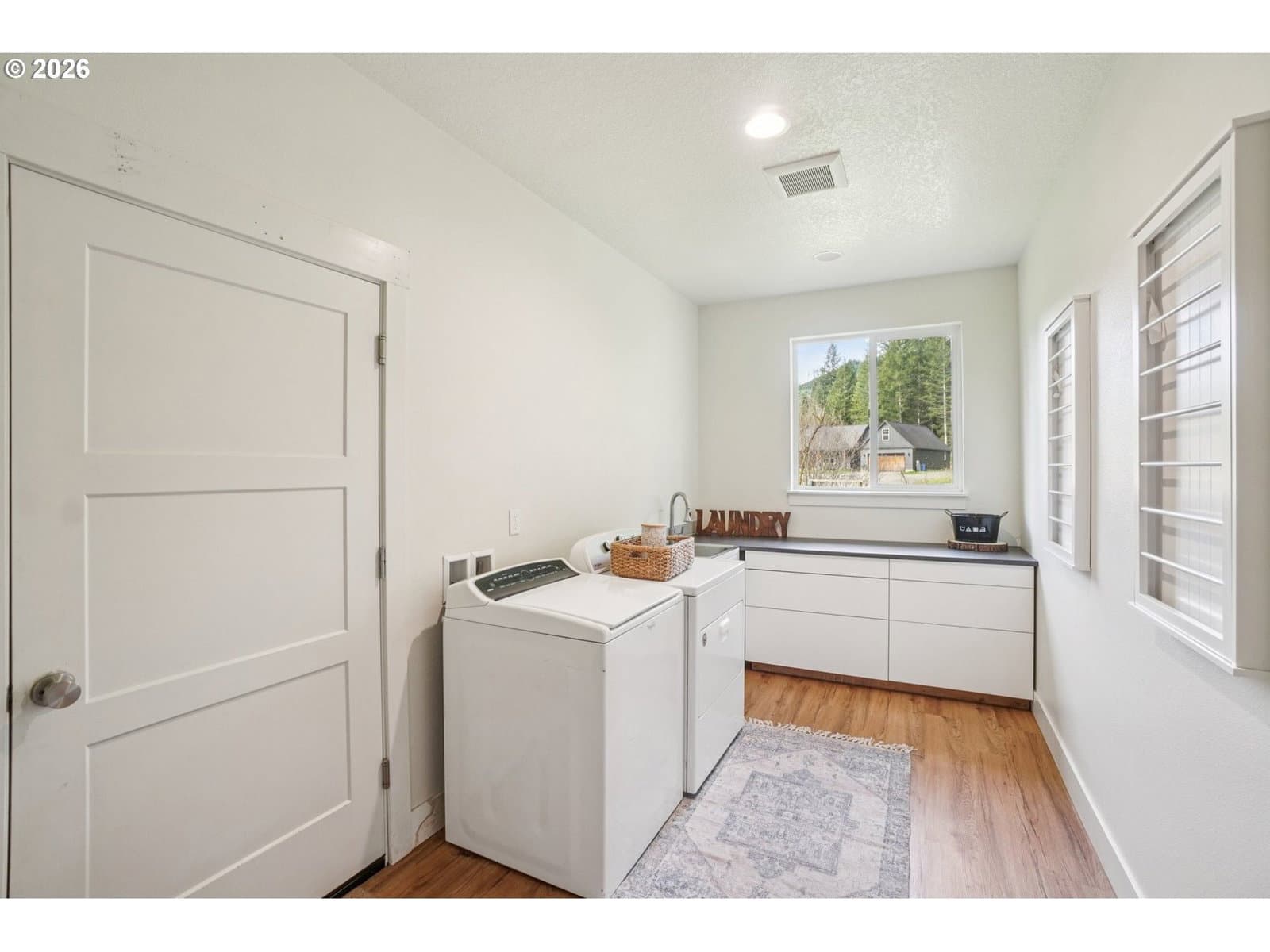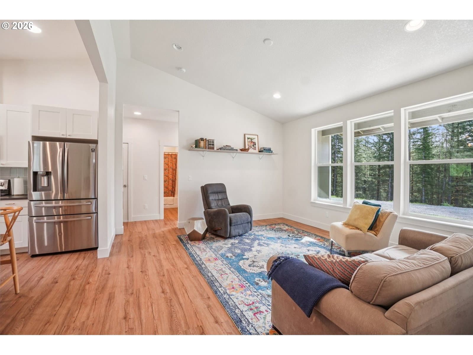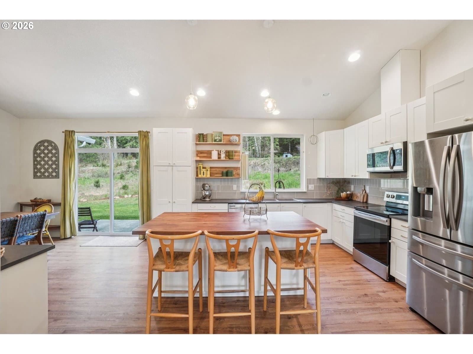 A peaceful, park-like setting, this beautiful 1-level home on 3.42 acres offers the perfect blend of comfort, privacy, and natural beauty with coveted East Fork Lewis River frontage. Right down road from Moulton Falls and Hantwick and Sunset Falls trail heads. Spanning 1,714 sq ft, this 3-bedroom, 2-bath home features a vaulted, open-concept main living area that feels bright and spacious. The thoughtful layout places the primary suite on one end of the home for added privacy, with two additional bedrooms on the opposite side. The kitchen is designed for both function and style, complete with an island, stainless steel appliances, tile backsplash, and abundant cabinet space. The dining area opens to a back patio through a sliding glass door—perfect for enjoying the serene surroundings and sounds of the river. Energy-efficient mini splits provide year-round comfort with both heating and cooling. Whether you're relaxing at home or exploring nearby outdoor recreation, this property offers a rare opportunity to enjoy riverfront living in a truly tranquil setting.
