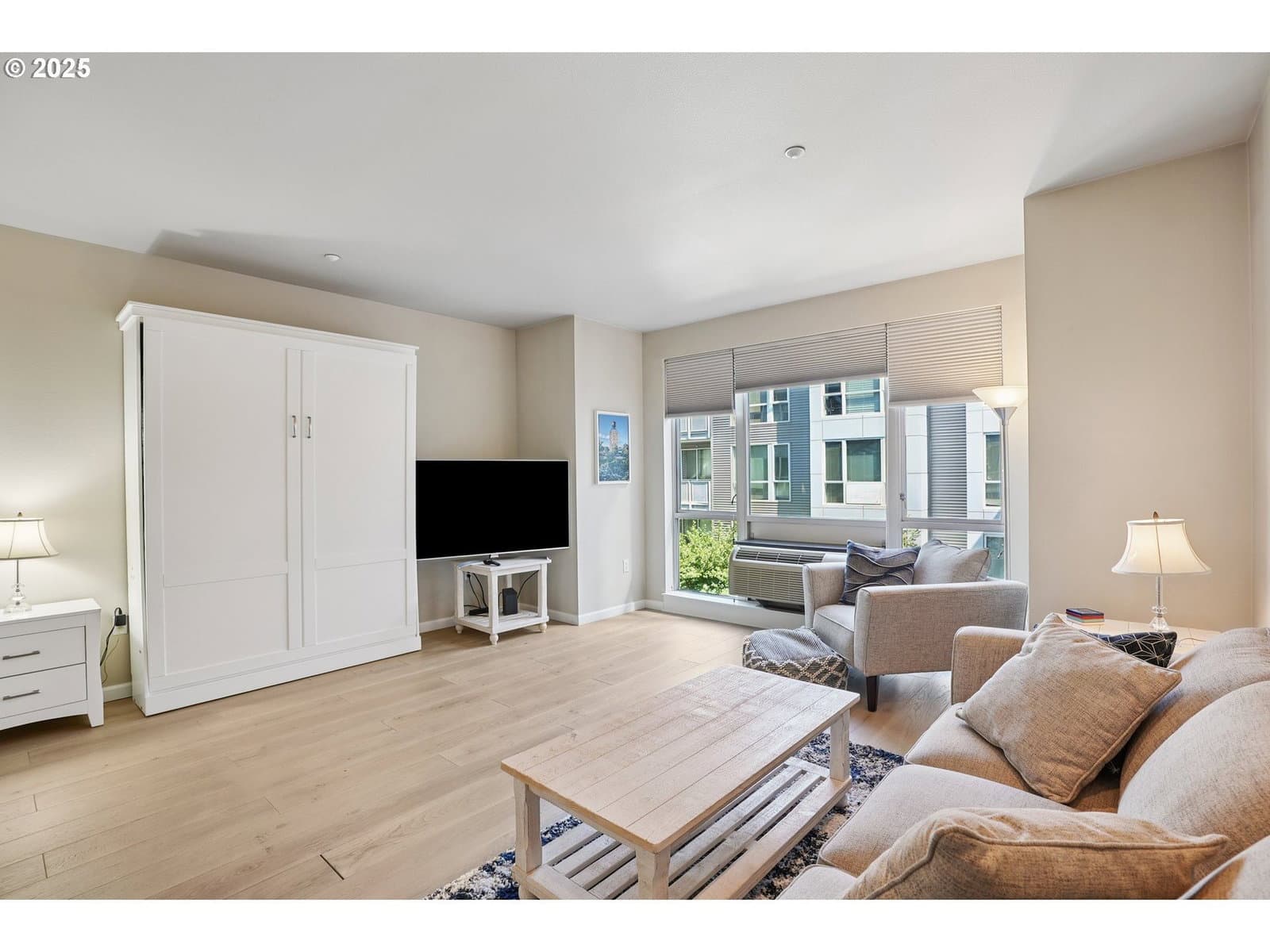 Super charming & updated Pearl District studio in the Lexis Condominiums. New Murphy bed, new engineered hardwood flooring & baseboards throughout, new window coverings. Unit has AC, is very private with neighbor only on one side, and very close to elevator. Unit comes with plenty of in-unit storage, plus additional deeded storage, and a parking space is available to rent. Condo can be sold furnished. Tanner Springs Park, Portland Streetcar, restaurants, cafes, shopping right outside your door!