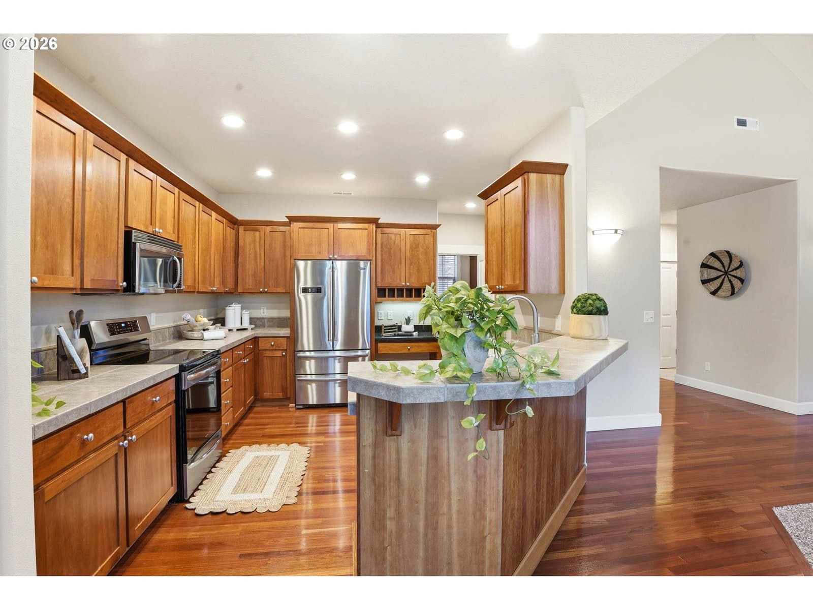 Great view, great value! Call and lets discuss your offer...This four-bedroom, three-bath home is located in the desirable and well-established Forest Gale Heights neighborhood of Forest Grove, take this opportunity to live in the thriving Willamete Valley. There are two parks accessible via sidewalks and paths throughout this community, Forest Glen Upper and Lower, in which the Forest Glen Lower walking path starts at the end of Ridge Pointe Drive. This home features the option of convenient one-level living with well-lit rooms, main floor laundry, and an inviting open floor plan. The main level includes a spacious living room with large windows, allowing natural light to pour in with views of the lush green space behind the home. A cozy fireplace creates a warm, inviting atmosphere, ideal for relaxing or entertaining guests. The kitchen is well appointed with modern appliances and a breakfast bar. The adjacent dining area provides ample space for family meals or dinner parties with a sliding glass door leading out to one of the two deck. The primary suite is a peaceful retreat featuring a walk-in closet and an ensuite bathroom with dual vanities, a jetted tub, and a walk-in shower. An additional bedroom on the main floor is perfect for family members or guests with plenty of closet space and easy access to the second full bathroom. The two additional bedrooms are located on the lower level making it ideal for a guest suite or home office. This space also has access to a third full bathroom, offering convenience and flexibility. Off of the spacious great room is the lower deck with access to the backyard and views to the West. With its open design, modern amenities, and peaceful location, this home is perfect for those seeking a blend of comfort, convenience, and natural beauty. Home inspection completed December 2025.