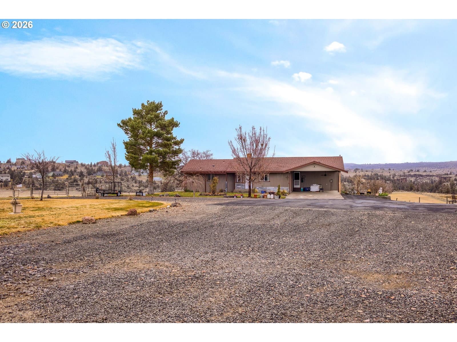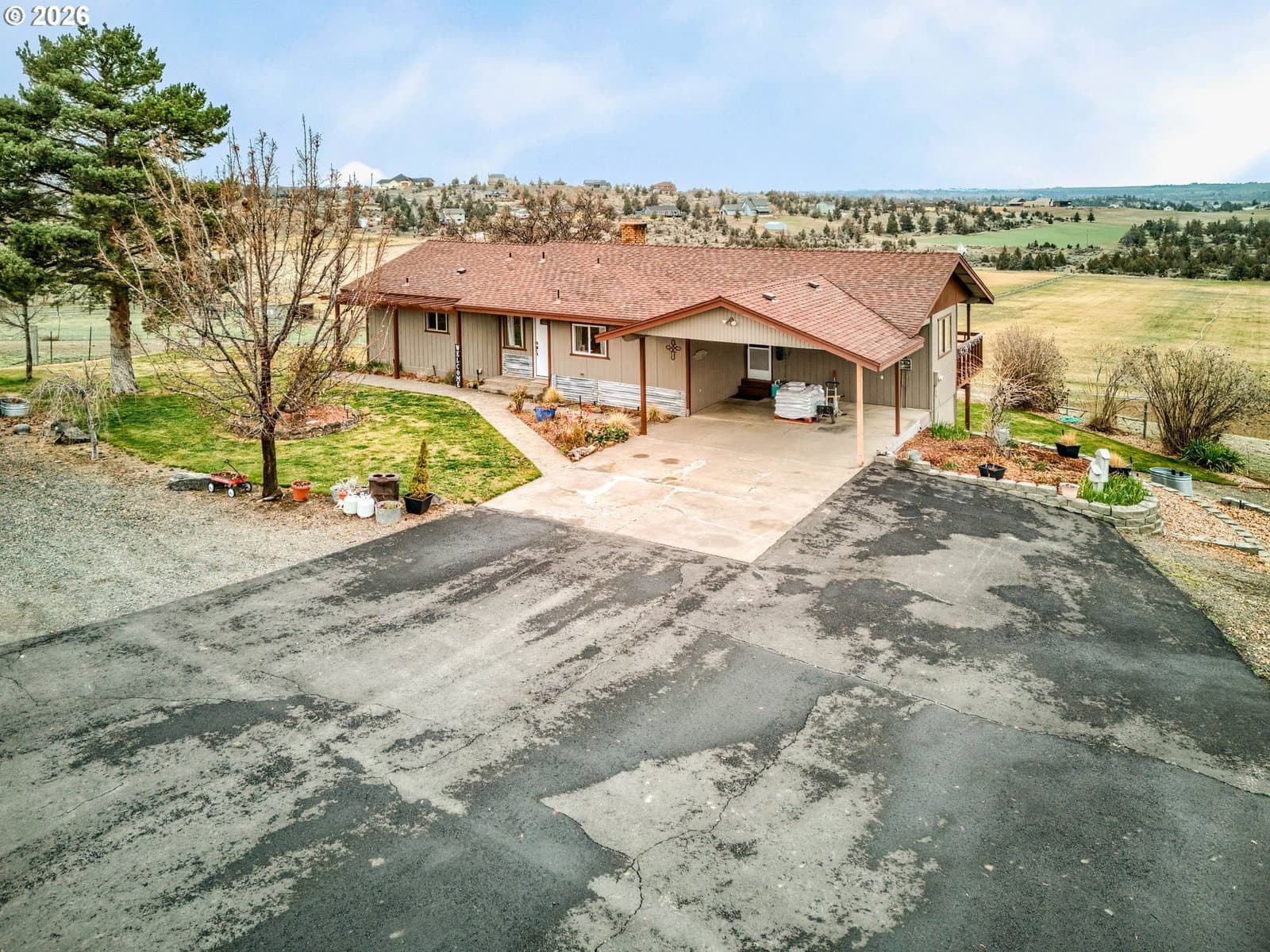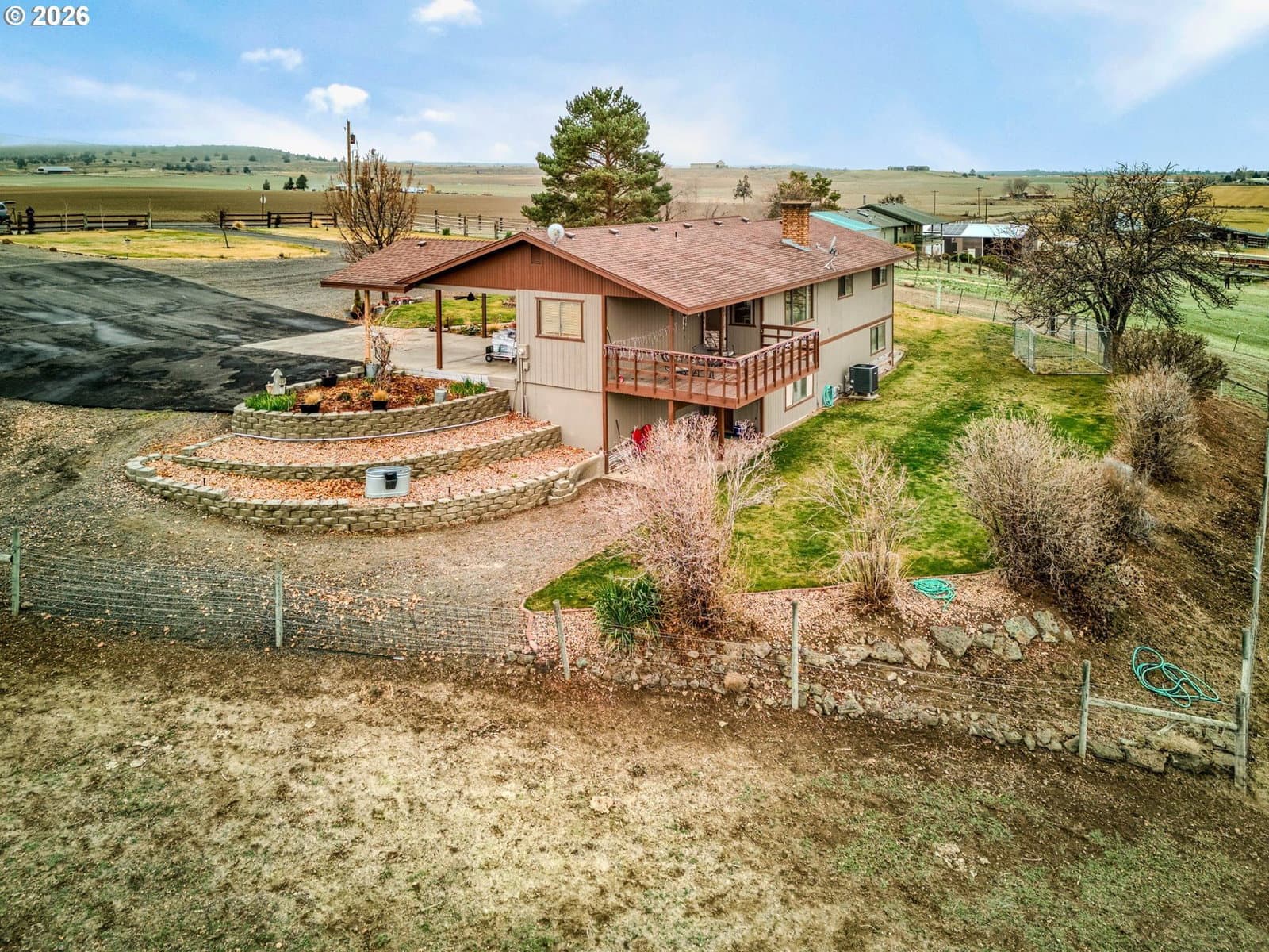 Welcome to SE Dover Lane! Modern living with country charm that Central Oregon offers. Easy access to Madras, Prineville, Redmond. This ranch style home has a full daylight basement with its own private access. 4 bedroom, 2.5 bath home sits on 10.49 acres with 9.7 acres irrigated in second year orchard grass producing over 7 tons of hay. Primary suite on main level with updated bathroom and walk in closet, large living room with big windows and small covered deck to take in the views, guest room, updated guest half bath, remodeled kitchen with new appliances, a versatile mud room/office/sew room that opens up into the 2 car attached carport. Downstairs has two large bedrooms, remodeled bath, storage, laundry room and nice living space with large windows. Outdoors, enjoy mountain views, beautifully landscaped grounds, garden area, hay storage, small livestock stall, fenced and crossed fenced, arena area and a 28x48 shop with heat, water and 220V inside and out, 2 sinks, wood stove, electric garage door with room for possible additional one, piping for air compressor inside shop. Don't miss this opportunity. Owner is licensed Oregon Realtor. Possible partial seller financing, priced to sell and looking at all offers. Built in double ovens, microwave, dishwasher and Induction cook top, butcher block countertops, tile back splash, disposal, plumbed for ice in frig and deep Farm Style white sink. Free standing Fireplace, underground sprinklers, new pellet stove. All Hand Line pipe and Main line pipe on property is included. Pond is off of Dover lane and has it's own pump shed, power meter pump and pipe. Water pond is shared with immediate neighbor. Pond is on Dover Ln. away from property, power meter is in owner's name, pump is co-owned with immediate neighbor including maintenance. No unit states recorded easements to pond; just not from pond to property; main lines owned independently.