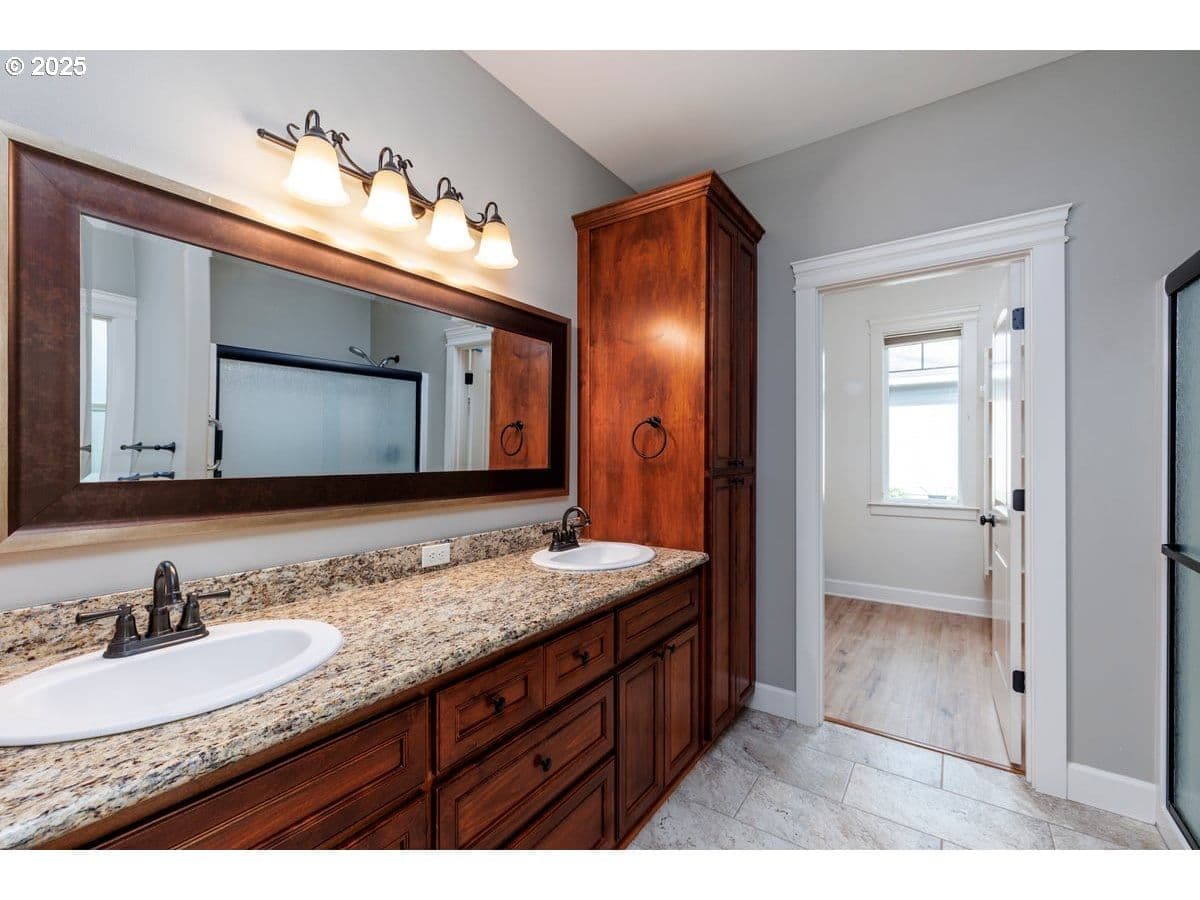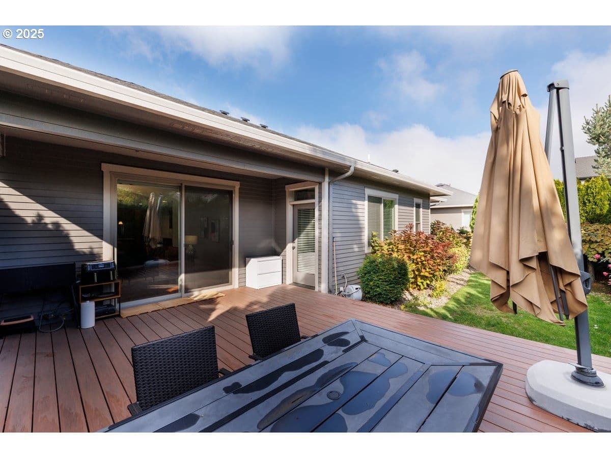 Experience refined living in this stunning single-level craftsman located in the desirable Tukwila Community with pool, tennis/pickleball courts, and nearby OGA Golf Course. This elegant home offers a spacious open floor plan with vaulted ceilings, beautiful engineered hardwood and laminate flooring throughout-no carpet! The gourmet kitchen features slab granite counters, large island, SS appliances,gas range, built-in beverage chiller, and custom soft-close cabinetry with under-cab lighting.The luxurious primary suite includes a tray ceiling, spa-like bath with dual vanity, tile shower, walk-in closet,heated fans in both baths and direct access to the private composite deck-perfect for morning coffee or quiet evenings. Fully owned solar system with automated irrigation and low-maintenance landscaping, you'll have more time to enjoy the pool or perfect your golf swing. Extra-deep 2-car garage and ample parking.Luxury, comfort, and elegance await-welcome home! -Tukwila HOA:$346/yr for 2025;sl.increase to $363 in 2026.-Goose Hollow HOA:$440/yr ($110/qtr)for 2025;5% increase in 2026.-Buyer to pay a one-time transfer fee for both HOAs at closing.