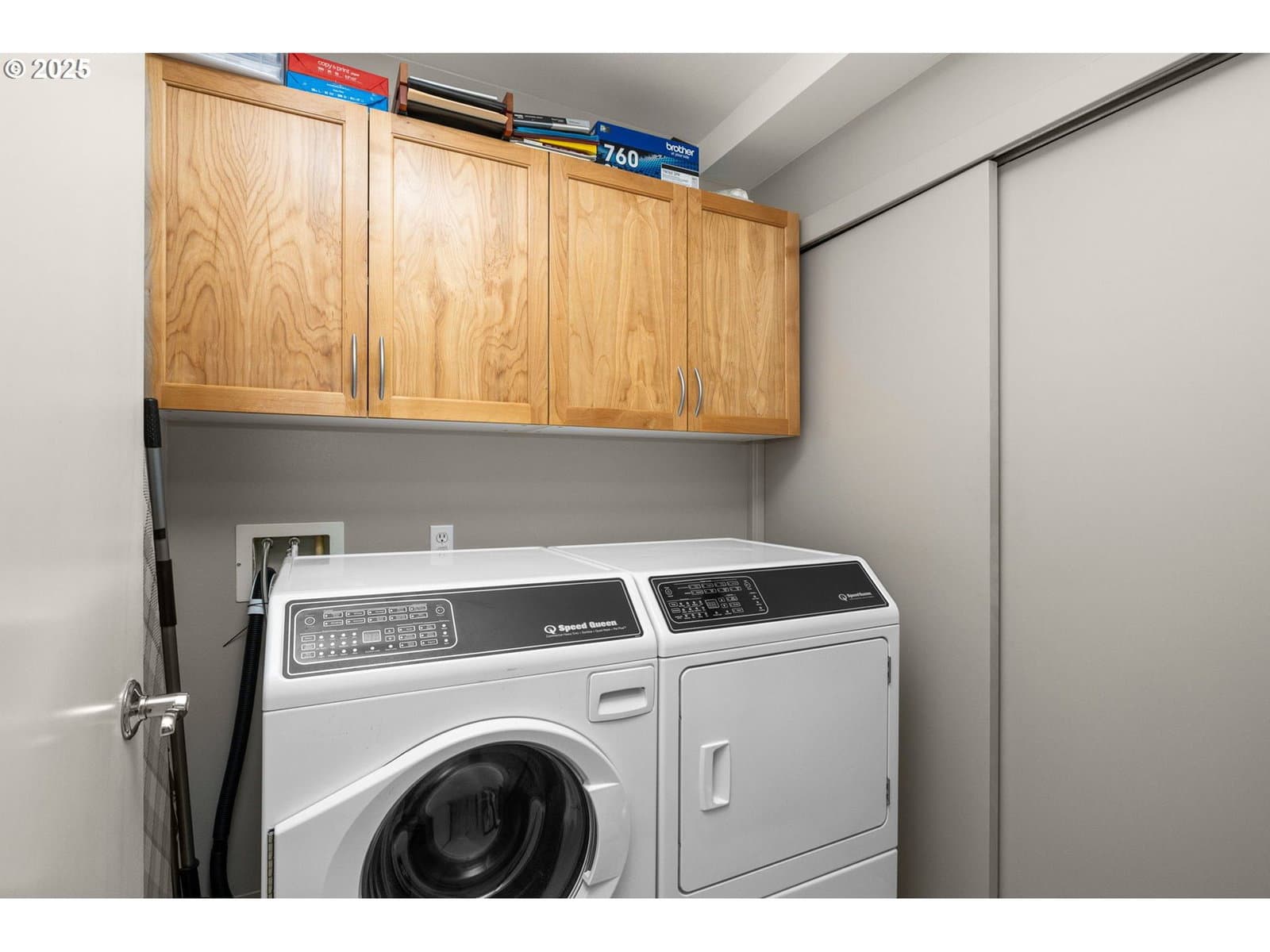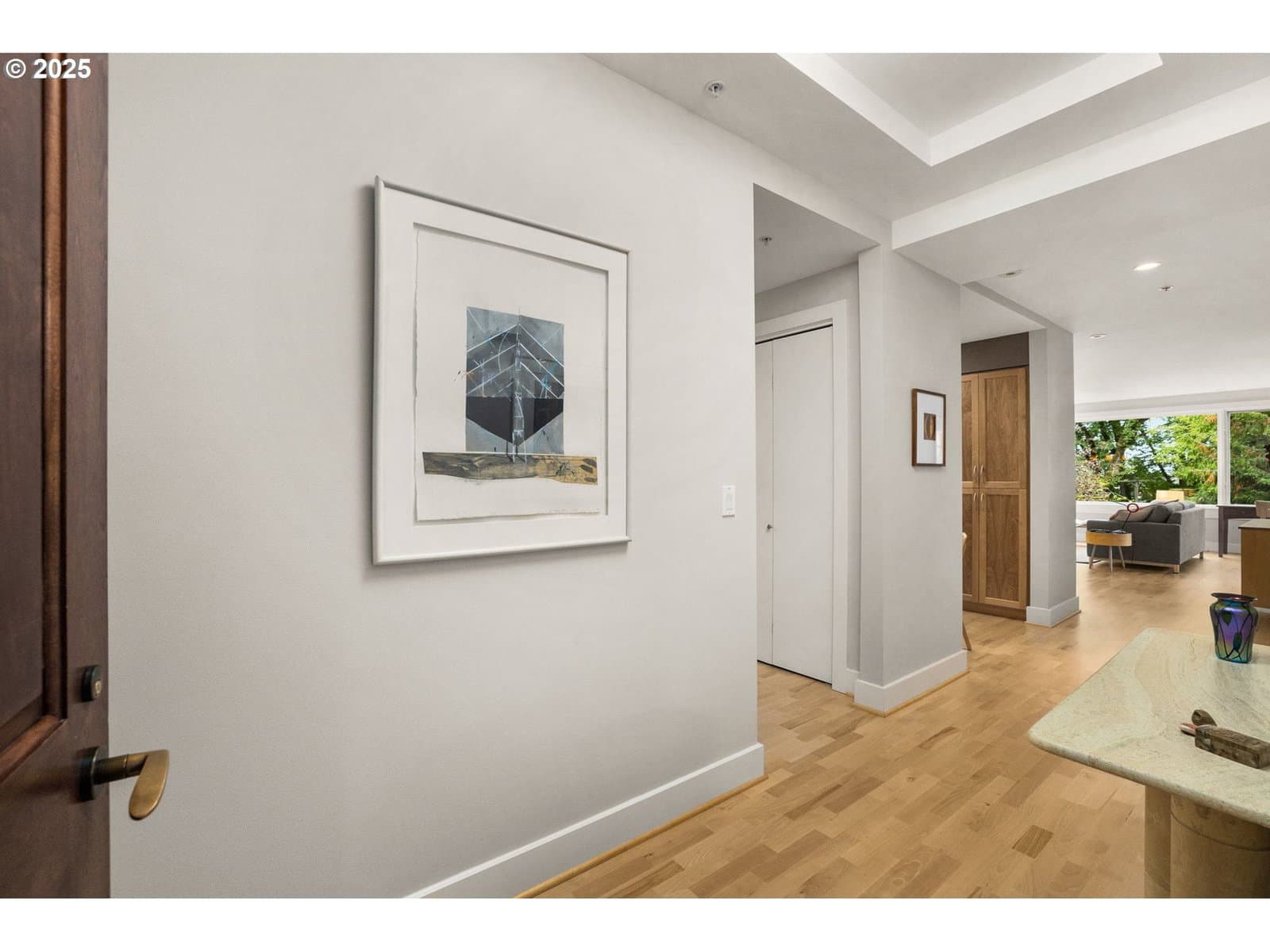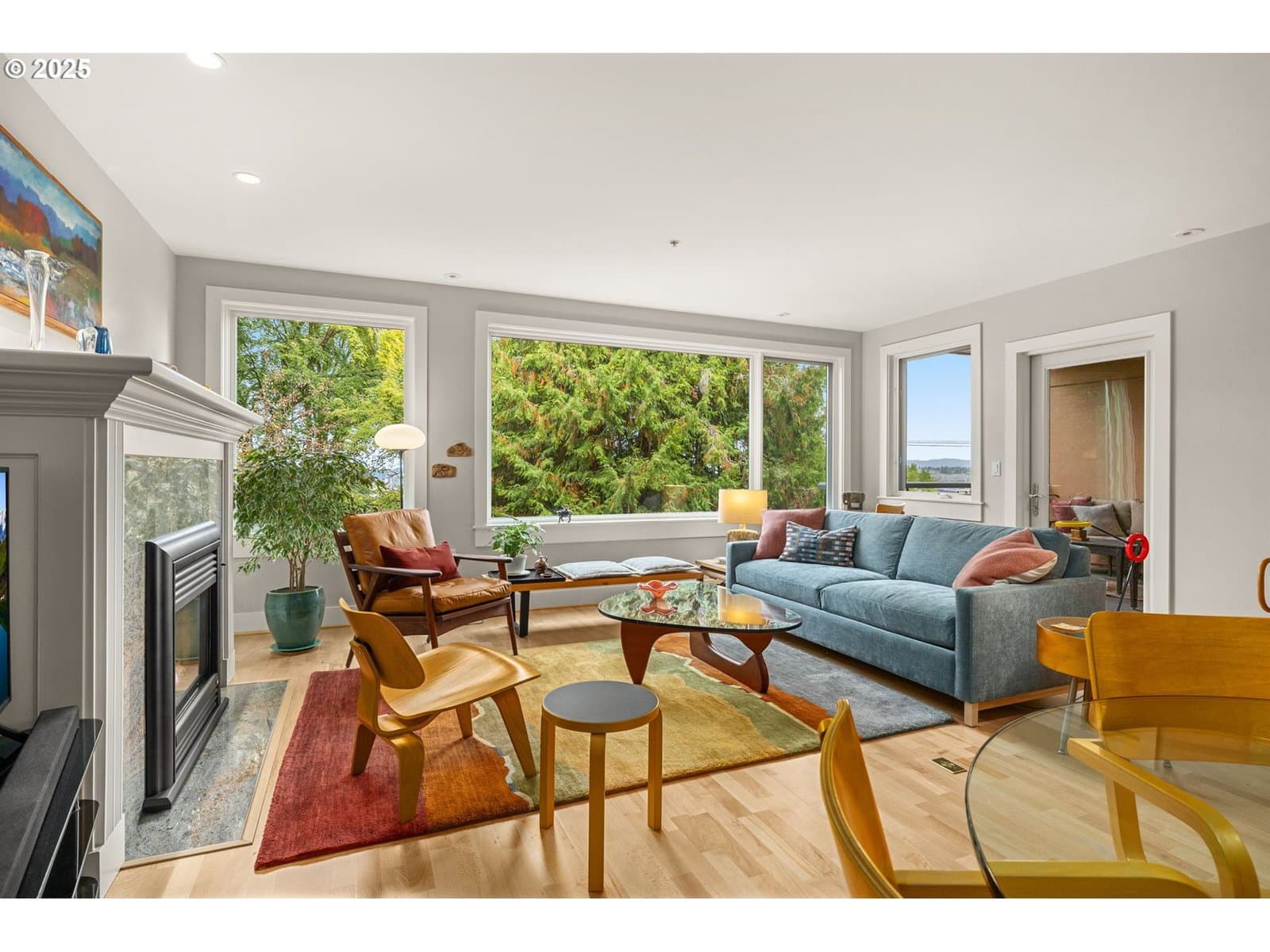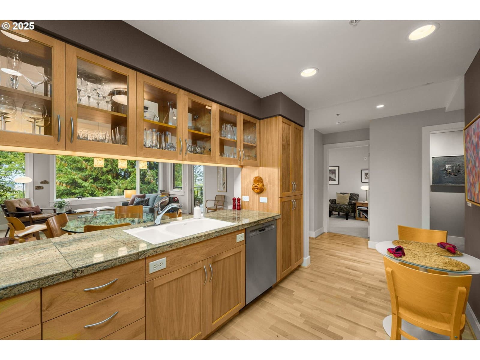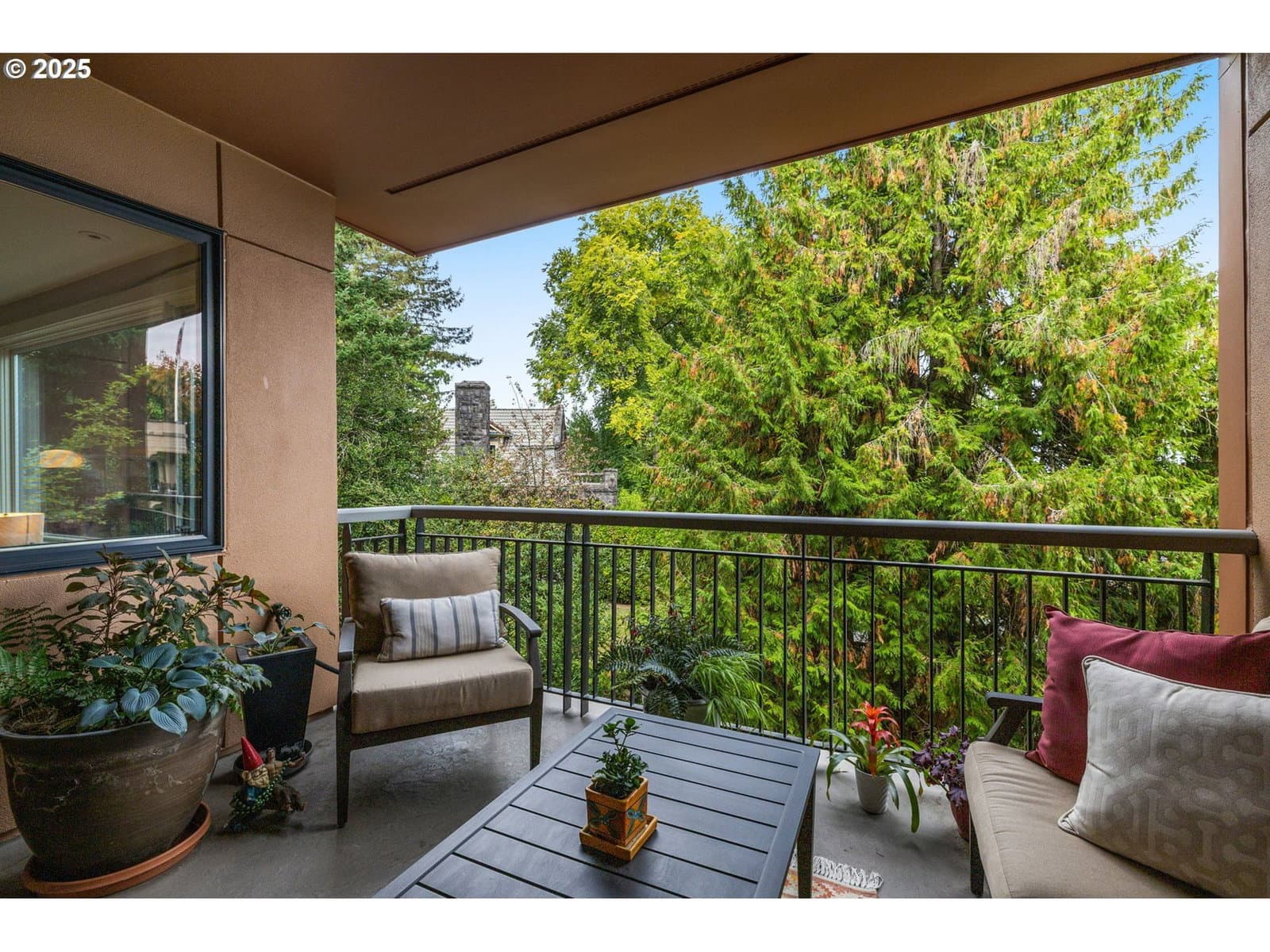 The nostalgia of Northwest meets contemporary comfort at this warm and sophisticated condo on Westover Square. A true PNW feel across 1144 square feet, this one bedroom, two bathroom condo showcases impeccable maple floors, fine craftsmanship, cherry cabinetry, re-invented spaces like an office nook with custom built ins, well-designed cook’s kitchen w/ stainless steel appliances, semi-open to the dining + living room. Capture views of the Fremont Bridge from the calming living room with gas fireplace and access to the covered lanai - a spacious place to enjoy the outdoors. Fit with h2O, gas + electricity, adding to the functionality of the outdoor space. The primary suite features built in organizers and custom cherry drawers. Tiled bathroom with walk in shower. The laundry room comes outfitted with Speed Queen W/D matching set. Tankless Water Heater, Forced Air Gas Furnace, Central AC, all add to the modern comforts. This unit is very energy efficient and takes minimal energy to run. This boutique community consists of 13 units, with lush grounds and acreage to wander. This condo comes with a storage unit, 1 secure underground garage parking space and opportunity to rent additional parking and storage if needed. Pay as you go EV charger - first come first serve and not far from the assigned Parking Space for this Unit. Kings Square North Condominium was completed in 2001, and you will find this building is modern and efficient, without losing that level of warmth and comfort that makes one feel at home. Live with peace of mind in one of Portland’s most vibrant and historic neighborhoods. Monthly HOA Fee $1,154. Covers: Exterior, Water, Garbage, Xfinity Cable + Internet Package, Landscaping, Gated. Don’t miss a tour of this unique 1 bedroom at Kings Square North.
