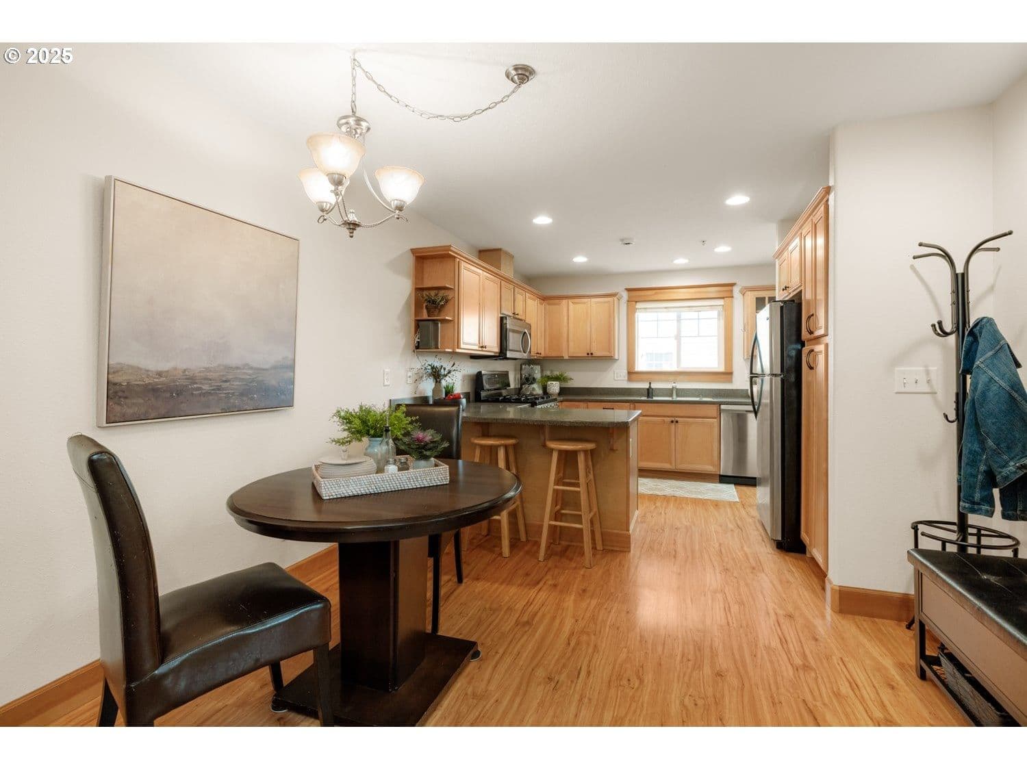 Welcome to this beautifully maintained 3-bedroom, 3.5-bath end unit townhome with attached garage in the heart of Hillsboro! Spread across three levels, this inviting residence blends modern comfort with classic charm—just blocks from historic downtown. Each bedroom features its own private bathroom, offering plenty of comfort and privacy for everyone. The main level includes a convenient half bath, a bright and spacious living room, and a well-appointed kitchen with gas range, stainless steel appliances, eating bar, generous counter space, and plenty of storage. Enjoy morning coffee on the covered deck or relax next to the fire in the open living room.Easy access to the MAX plus all the vibrant Hillsboro happenings -farmer’s market, shops, restaurants & more! This home offers the perfect combination of style, space, and location—don’t miss it! [Home Energy Score = 6. HES Report at https://rpt.greenbuildingregistry.com/hes/OR10225174]