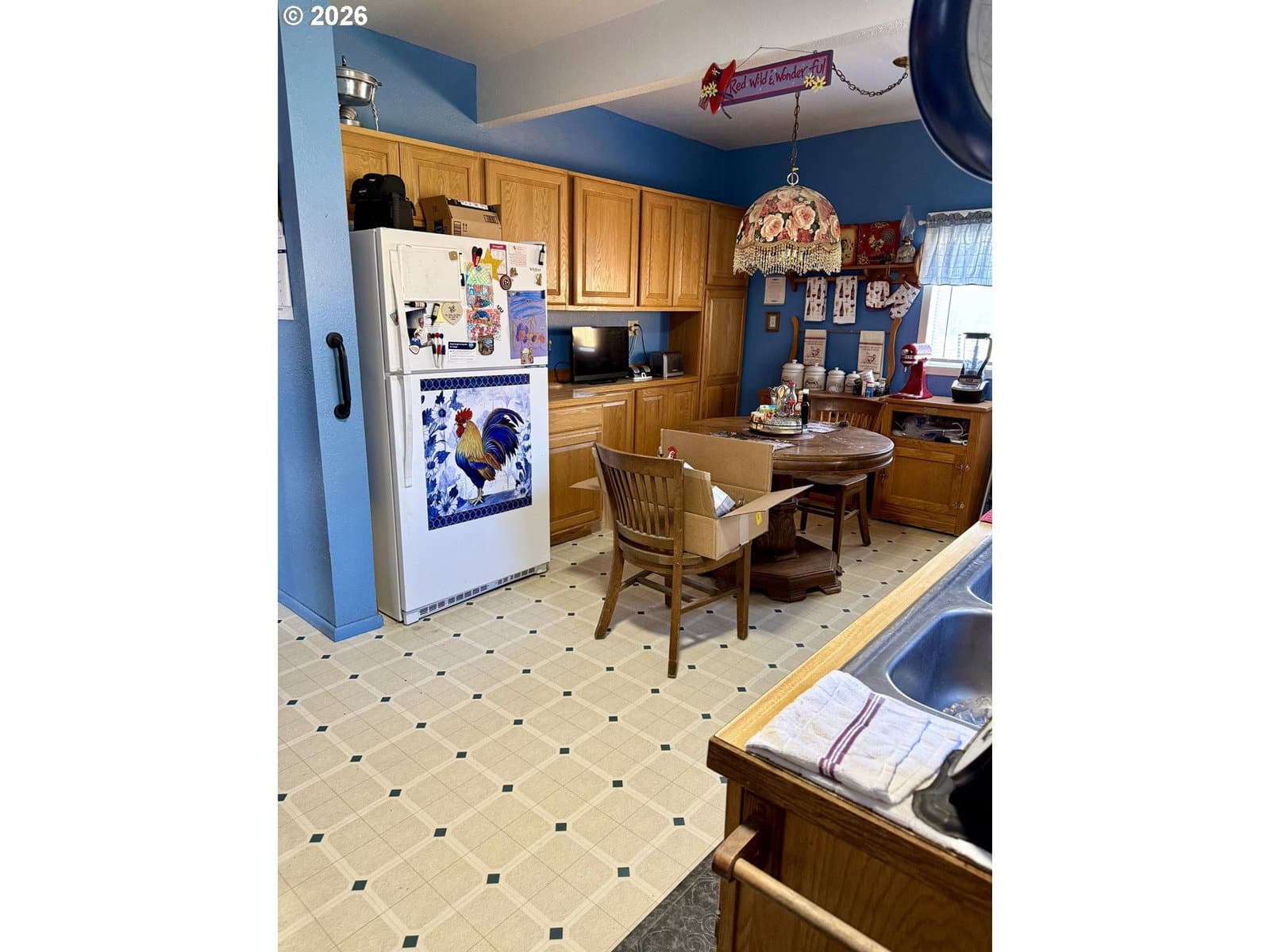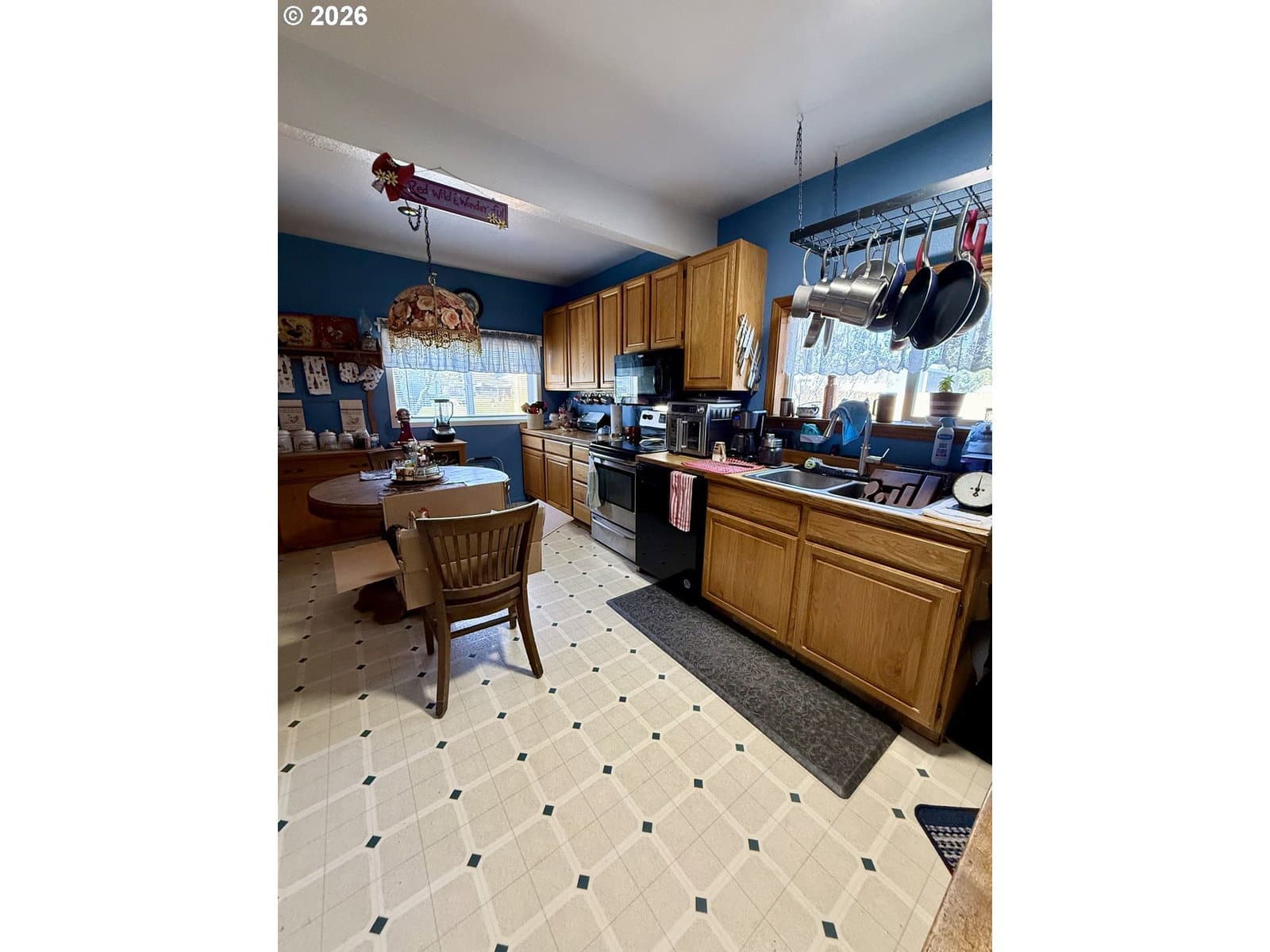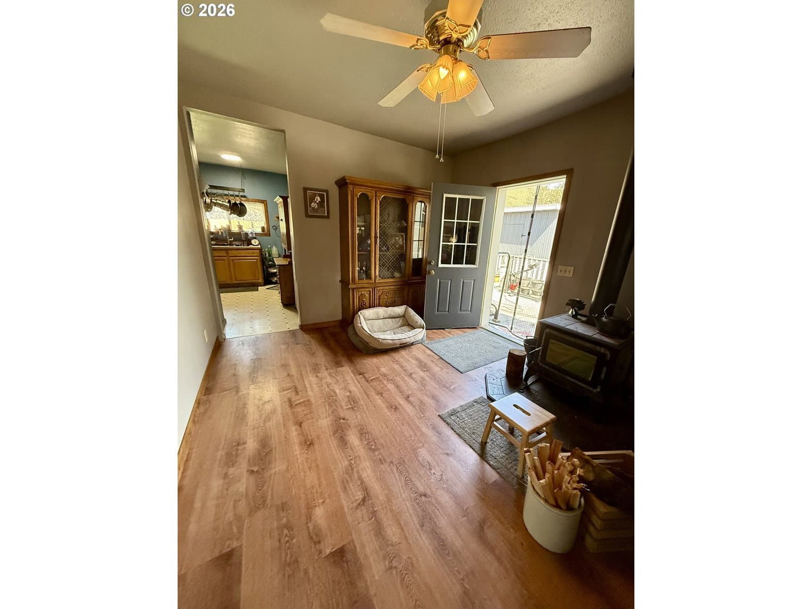 Welcome Home!! Step in from your inviting front covered porch to a bright open living area featuring new flooring and fresh interior paint that flows throughout this 3 bedroom 2 full bath residence. The heart of the home is a spacious kitchen with newer appliances included, conveniently located next to a dedicated laundry room, that comes with the washer and dryer. You will appreciate the Significant updates, including a brand new lock tight metal roof, fresh exterior paint, offering true peace of mind. Outside, the property is a private oasis featuring a large back patio, and deck with a lush yard, mature trees, all secured by a new full privacy fence. Hobbyists and gardeners will love the multiple outbuildings, which include a dedicated workshop and a fenced garden area ready for planting. Garage with easy alley access is just another bonus this property has to offer. Nestled in a quiet neighborhood perfect for evening entertaining and conveniently located to all that the quaint town of Wallowa has to offer! Pack your bags and fall in love on 4th street!!