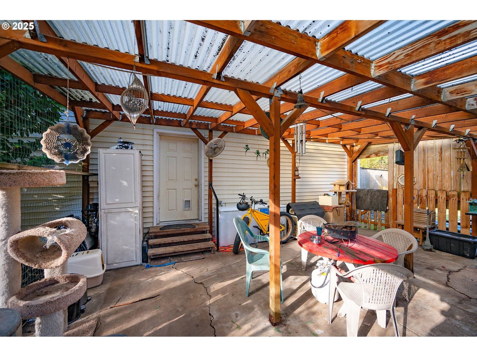 Great investment with upside potential, ready for your vision. This classic North Eugene home offers a flexible layout with two bedrooms on the main level and two additional rooms upstairs, ideal for privacy, guests, multigenerational living, or dedicated office space. There is ample room upstairs to add a second bath, subject to buyer due diligence. Inside, the inviting living room features a gas stove, a traditional fireplace, and vinyl windows that bring in soft, natural light. The generous kitchen has plenty of cabinetry, good countertop space, and a comfortable eating area that feels like the heart of the home. An indoor laundry room adds everyday convenience.For outdoor living, step out to a spacious 24 x 15 covered back porch, perfect for gatherings, quiet mornings, or rainy-day relaxing. A previous owner enjoyed this space as a “catio,” spending countless days here with her furry family. The home sits on a generous 0.39 acre lot with an irrigation well (per elderly owner), creating amazing possibilities for urban gardening, play space, or future projects. The low-traffic street adds a sense of privacy while still keeping you close to city amenities. With the city’s newer, more relaxed zoning code, this property offers strong potential for additional housing, future development, or a long-term investment. Buyer to verify all uses, utilities, and development options with the City of Eugene. The home will be sold in “as-is” condition, with no repairs or cleanup provided by the Seller. Property is not expected to qualify for conventional financing. Cash or hard money offers only. Open Inspection report on file.