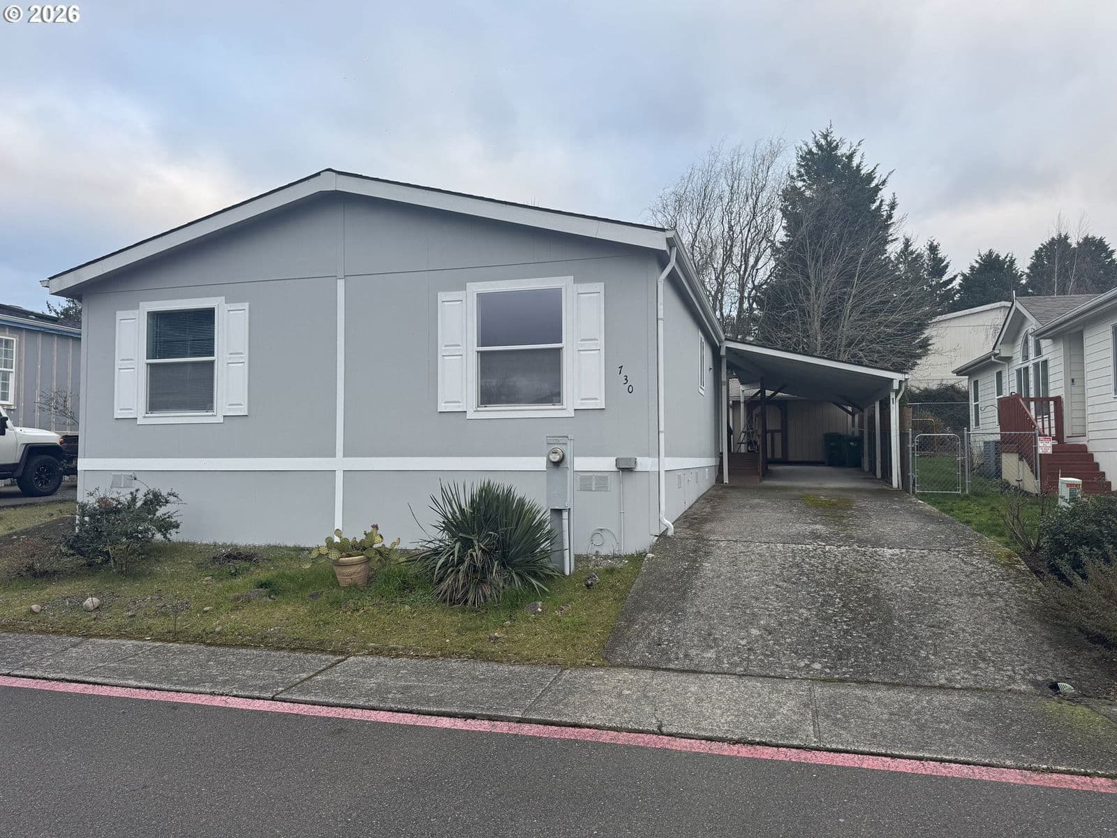 Peaceful setting close in to Scappoose. Vaulted ceiling to let the sun shine in! Newer Heat pump, stove and refrigerator. Washer and dryer stay. Newer carport and sturdy aluminum ramp.Space rent includes water, garbage, locked mailboxWater is shared well lab tested yearly.