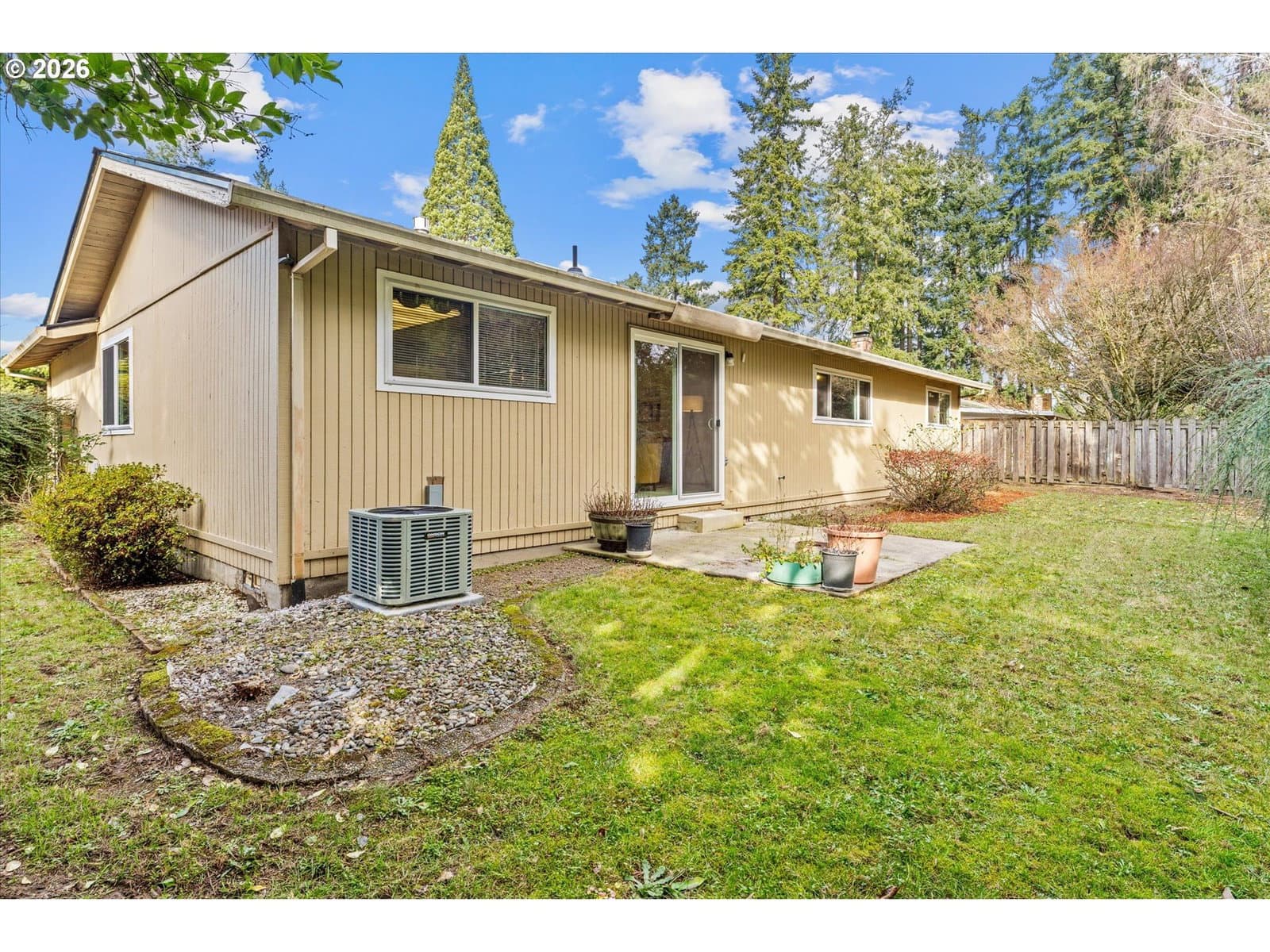 Coveted Single Level Home in Hyland Hills! Built in 1977 this spacious, 3 Bedroom/2 Bathroom, home has been lovingly cared for by the same Family for over 45 years! After entering through the front courtyard w/Japanese inspired garden, you are greeted with the Vaulted Living Room w/beamed ceiling & floor to ceiling windows. From there the Living Room opens to the Formal Dining Room which opens to the Kitchen, complete w/all appliances, plenty of cabinets, pantry & large eat-at bar, perfect for informal dining. Off the Kitchen is the Family Room w/cozy gas fireplace & slider to backyard patio. Large Primary Suite w/room for a King Size Bed features 2 Closets & attached Bath. 2 additional Spare Bedrooms & Full Hall Bath. Hallway glows w/light from the floor to ceiling windows overlooking the front courtyard. Interior Laundry closet includes Washer & Dryer. 2 Car Oversized Garage w/built-in Storage. Private, level 6970SF fenced lot, w/mature plantings, patio & grassy area, perfect for play, entertaining or gardening. Updates include AC 2025, Furnace 2024, Roof 2023 & Windows 2014. In the heart of it all, close to parks, schools, shopping, Downtown Beaverton, Washington Square, Progress Ridge, Murray Hill & much more…