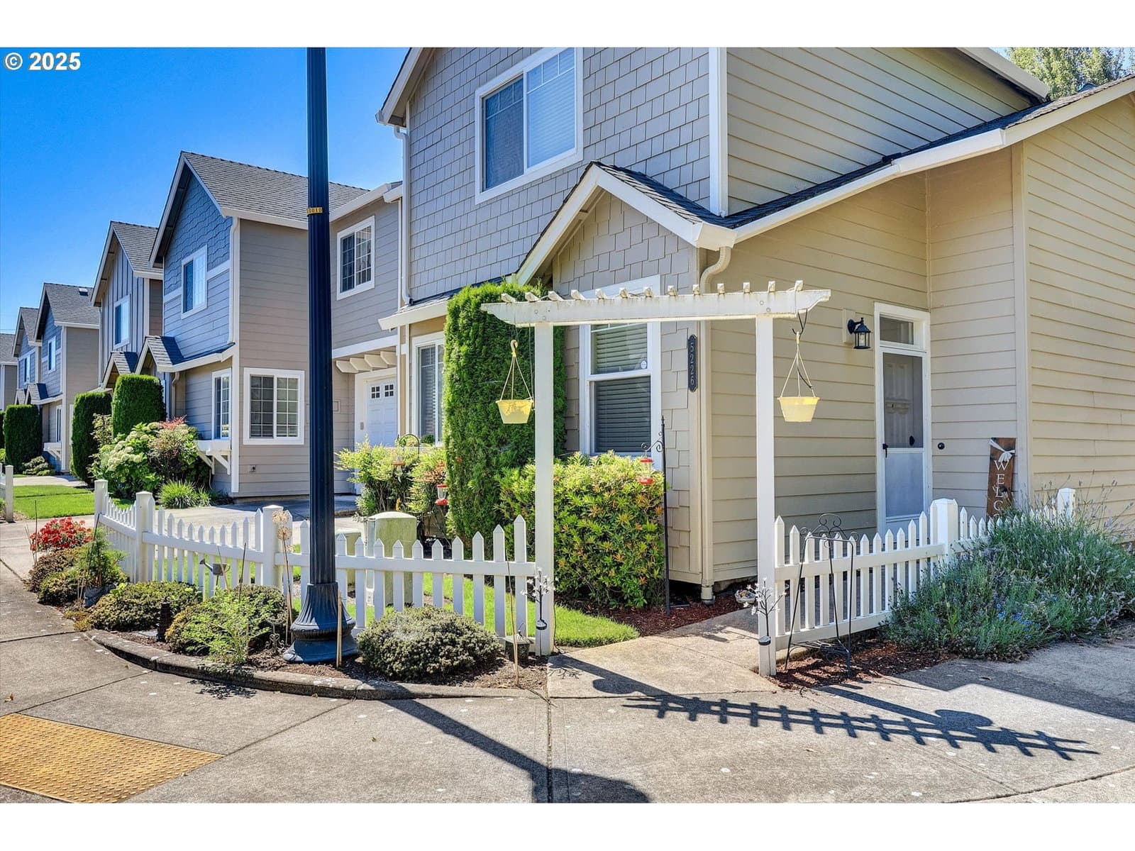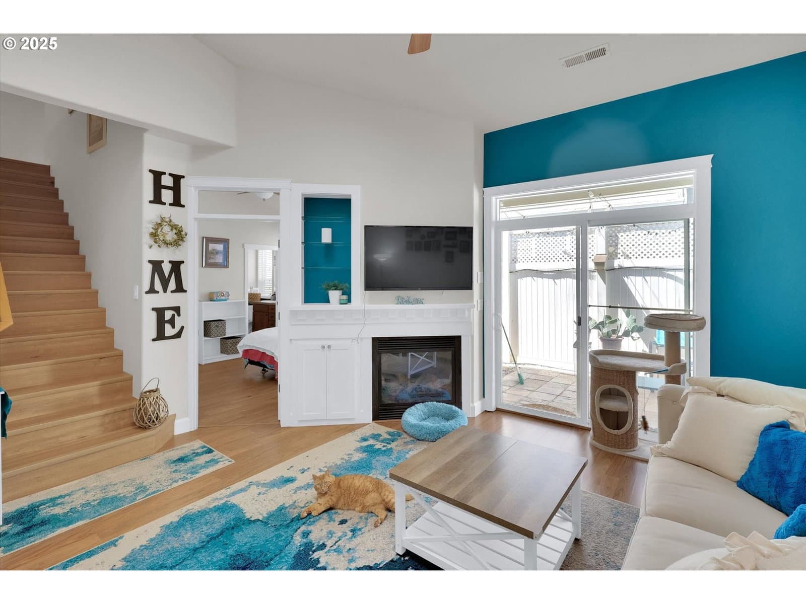 Step into a bright and spacious great-room concept featuring vaulted ceilings, skylights, a gas fireplace with built-in shelving, and a peaceful private patio—ideal for seamless indoor-outdoor living. The adjacent dining area also enjoys vaulted ceilings.This exquisite 3-bedroom, 2.5-bathroom townhome spans 1,601 sq ft., offering a blend of privacy, style, and low-maintenance living.