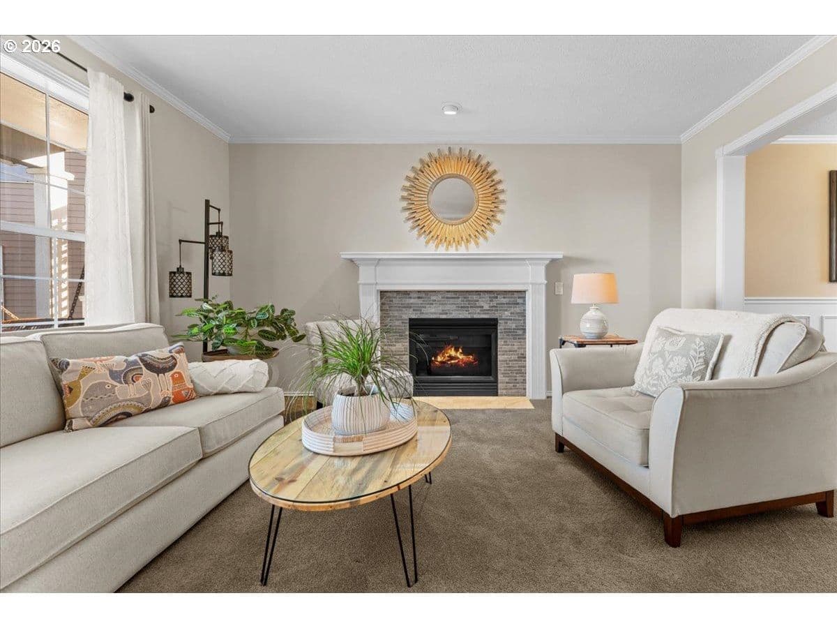 Welcome to 13923 SW Aerie, a beautifully maintained home with endless charm and seamless flow! Featuring newly refinished hardwood floors, abundant natural light and two cozy gas fireplaces, the formal living and dining rooms provide refined spaces for entertaining, while the open and spacious floor plan offers excellent flow for everyday living. The kitchen is truly the heart of the home, featuring granite countertops, a gas cooktop island, ample cabinetry, pantry storage and a sunny breakfast nook, and opens seamlessly to the family room, creating a warm and connected space. Upstairs, the primary suite features a beautifully remodeled en-suite bathroom with spacious tile shower and walk-in closet with custom shelving. Upstairs features three additional generously-sized bedrooms, an updated full bath, and 450 sq ft of unfinished attic space, handy for additional storage or a game of Hide N Seek! 3-car garage with high ceilings offers an insane amount of storage for all your hobbies, exercise and tinkering needs! Step outside to the manicured backyard with gazebo, Koi pond and newer Trex deck. Out front, the porch is the absolute perfect perch to sip a morning cup of coffee, greet neighbors passing by, and enjoy the stunning peekaboo views of rolling hills and even Mount Hood! Recent updates include high-efficiency furnace & Presidential roof (2021), fresh interior & exterior paint (2022), new carpet & refinished hardwoods (2022), and water heater (2024). No detail was overlooked in this well-loved and fully dialed home, making it a perfect choice for anyone looking for comfort & style amongst a beautiful community!