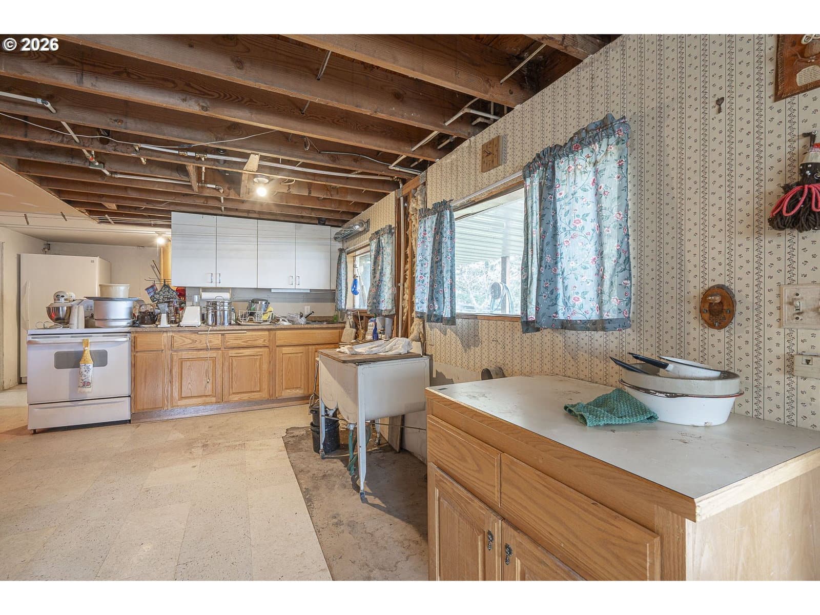 Bring your vision and tools to this 2.5 acre property-full of potential. This is the perfect space for a small hobby farm, or multigenerational living. The existing home is in need of updates and repairs, but has tons of potential, including dual living with a partial kitchen and bath in the unfinished basement. Land offers territorial views with plenty of usable space including a fenced pasture area, small storage barn, along with an unfinished 40x60 shop. There is a 1495 sq ft manufactured home on the property that is in hardship status. New buyer would need to qualify or decommission/remove one of the homes. Buyer to do all due diligence regarding this possibility. This will likely need to be a cash or rehab sale.