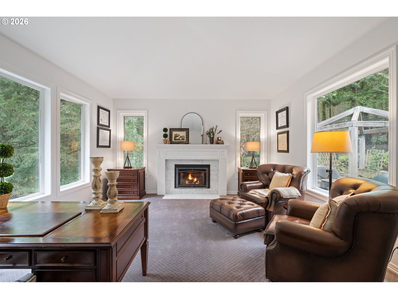 There’s a moment, pulling into the private driveway, when the trees close in and the noise of the day simply stops. That feeling—where your shoulders drop and your breathing slows—is what it’s like to come home to 18977 Barton Road.Set on nearly a full acre of wooded, fully fenced privacy in Lake Oswego’s Westridge neighborhood, this custom cedar-and-stone residence delivers over 5,000 sq ft across three thoughtfully designed levels—extensively remodeled with hundreds of thousands invested in upgrades. The main level is where daily life and entertaining come together. A gourmet kitchen with Sub-Zero, Viking range, double oven, quartz island, and beverage fridge opens to the family room with hardwood floors and fireplace. A formal dining room offers generous space for gatherings. A sitting room with its own fireplace provides a quieter retreat, while a remodeled laundry room, mudroom, pantry, and half bath round out a main floor that has everything where you need it. Upstairs, the primary suite is the centerpiece—with an award-winning bath designed by Metke Design, featuring a beautiful oversized soaking tub and spa-caliber finishes. Two additional bedrooms and a freshly remodeled full bath complete the upper level. Downstairs, two more bedrooms, a full bath, and a large bonus room with fireplace and patio access create ideal space for entertaining, media, or guests. Outside: a sport court, oversized four-car garage plus lower-level garage, dedicated RV parking, and room to spare. A fully fenced yard with gazebo, outbuilding, and workshop—surrounded by mature trees, creek views, and the kind of quiet that makes you forget you’re minutes from town. A whole-house generator keeps everything running when the weather has other plans.Award-winning Westridge Elementary and Lakeridge High are minutes away. Downtown Lake Oswego—a short drive. Portland—15 minutes north.