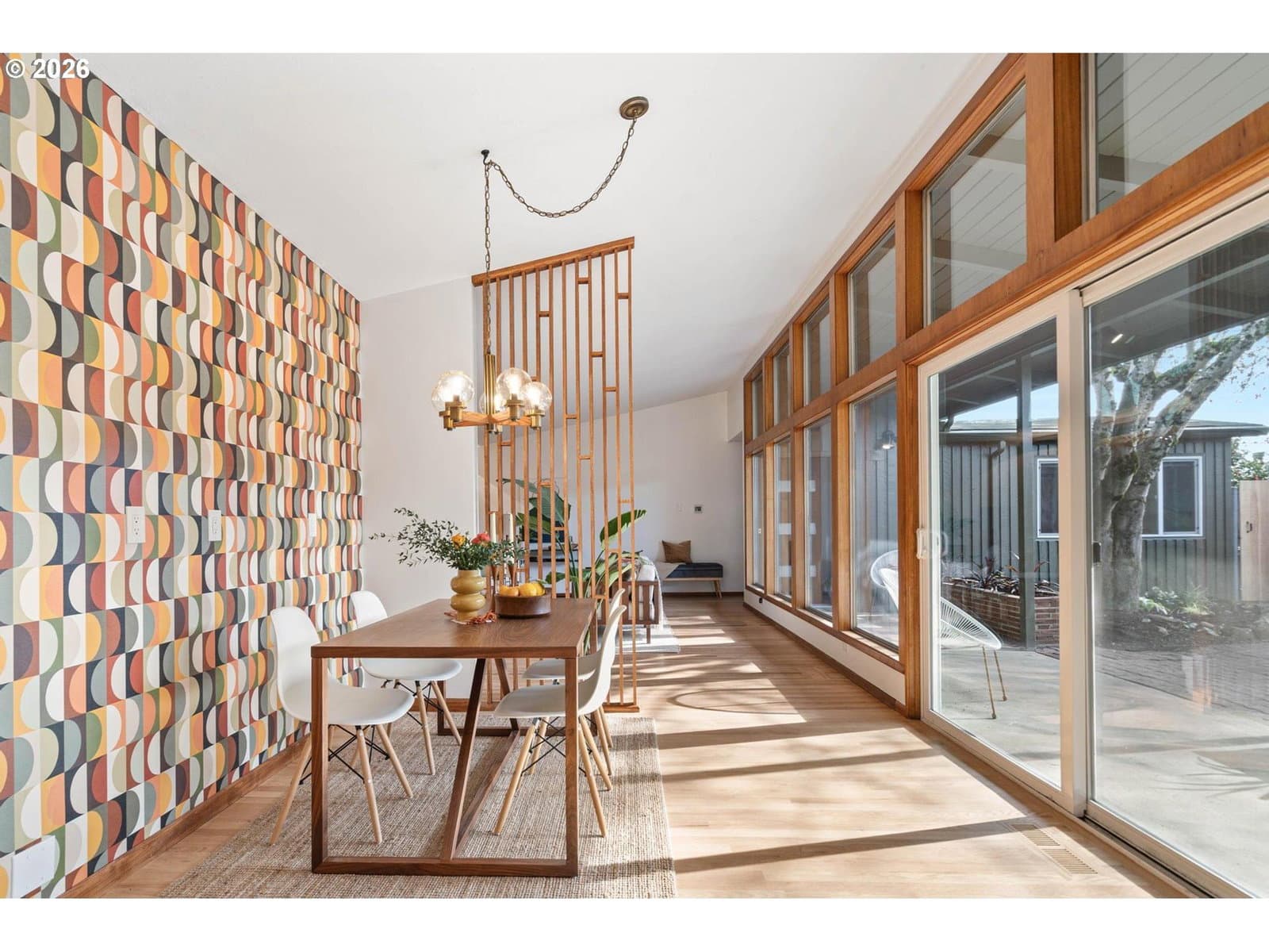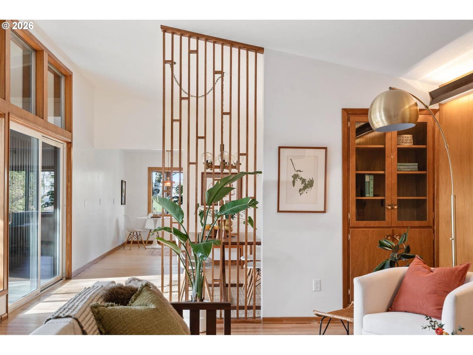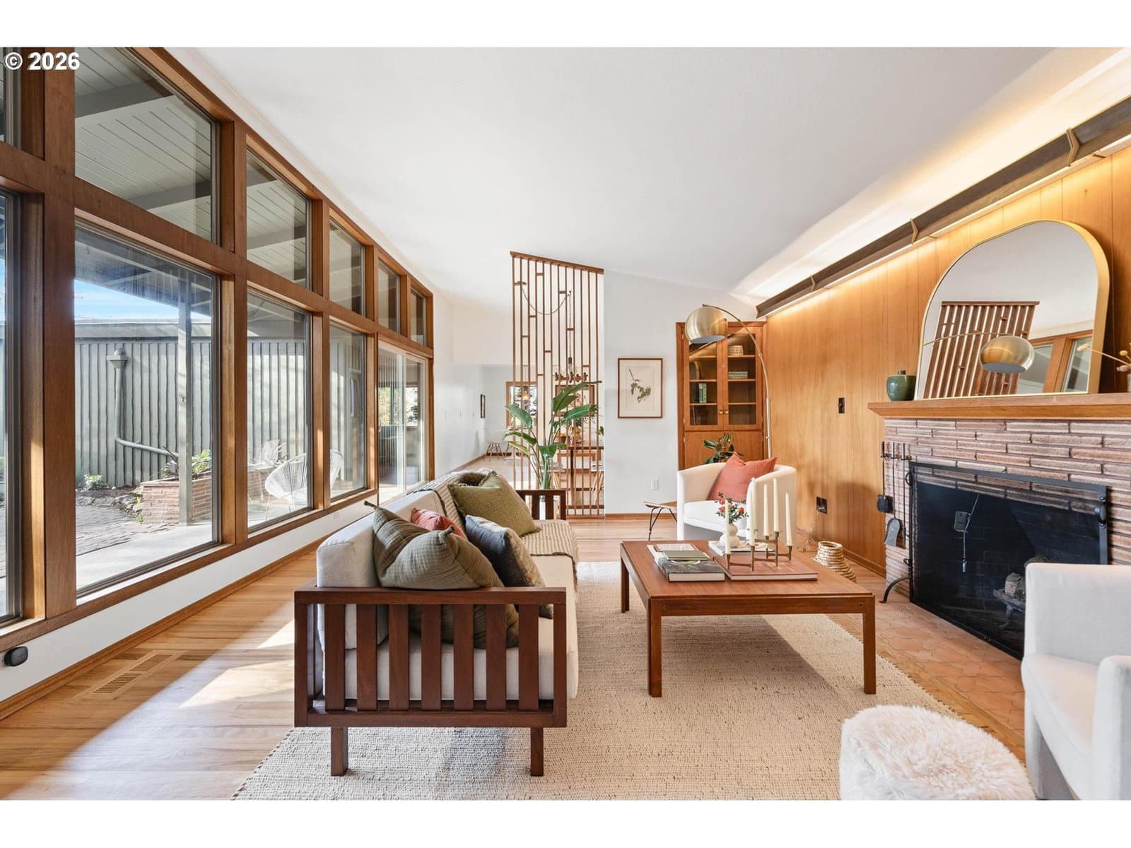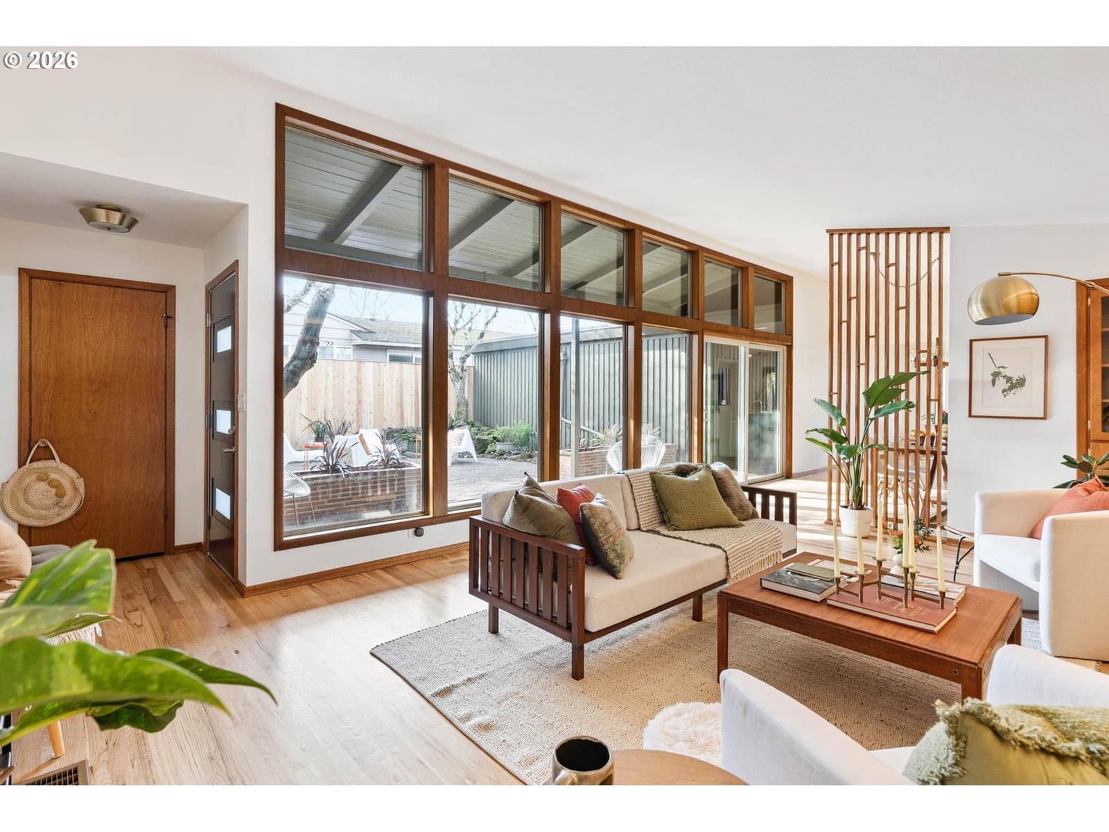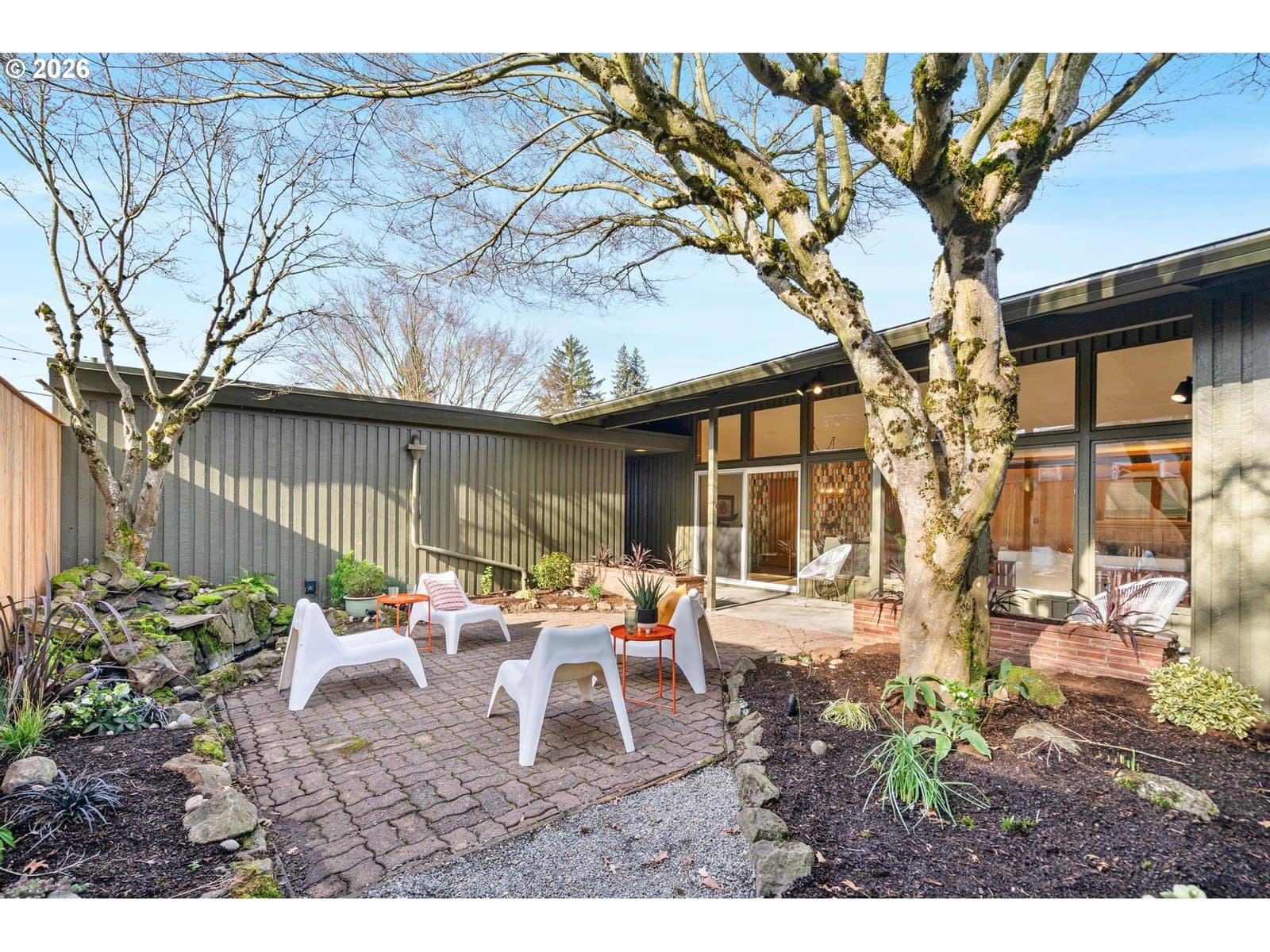 Stepping into this Mid-Century modern sanctuary, the outside world simply falls away. The heart of the home is a dramatic, wood-paneled living room featuring soaring vaulted ceilings and floor-to-ceiling glass that frames a private, soothing oasis. Whether you are an introvert seeking a quiet retreat by the courtyard fountain or an extrovert who lives for seamless indoor-outdoor entertaining, the social layout and fresh landscaping create a perfect harmony. It is a home that feels both expansive and deeply intimate—a rare world of your own in the heart of Concordia.Thoughtfully remodeled to honor its original character, this residence shines with a mix of new and meticulously refinished original hardwood floors. The chic designer kitchen gives a hint to mid-century with modern day function, while the rear of the home offers three quiet bedrooms and two updated baths. The lower level adds a surprising layer of versatility with a cozy lounge for movie/game nights, a dedicated workshop, and a spacious laundry/bonus room. Complete with a two-car garage connected by a classic covered breezeway, this home is a stunning example of mid-century livability and style. [Home Energy Score = 3. HES Report at https://rpt.greenbuildingregistry.com/hes/OR10242812]