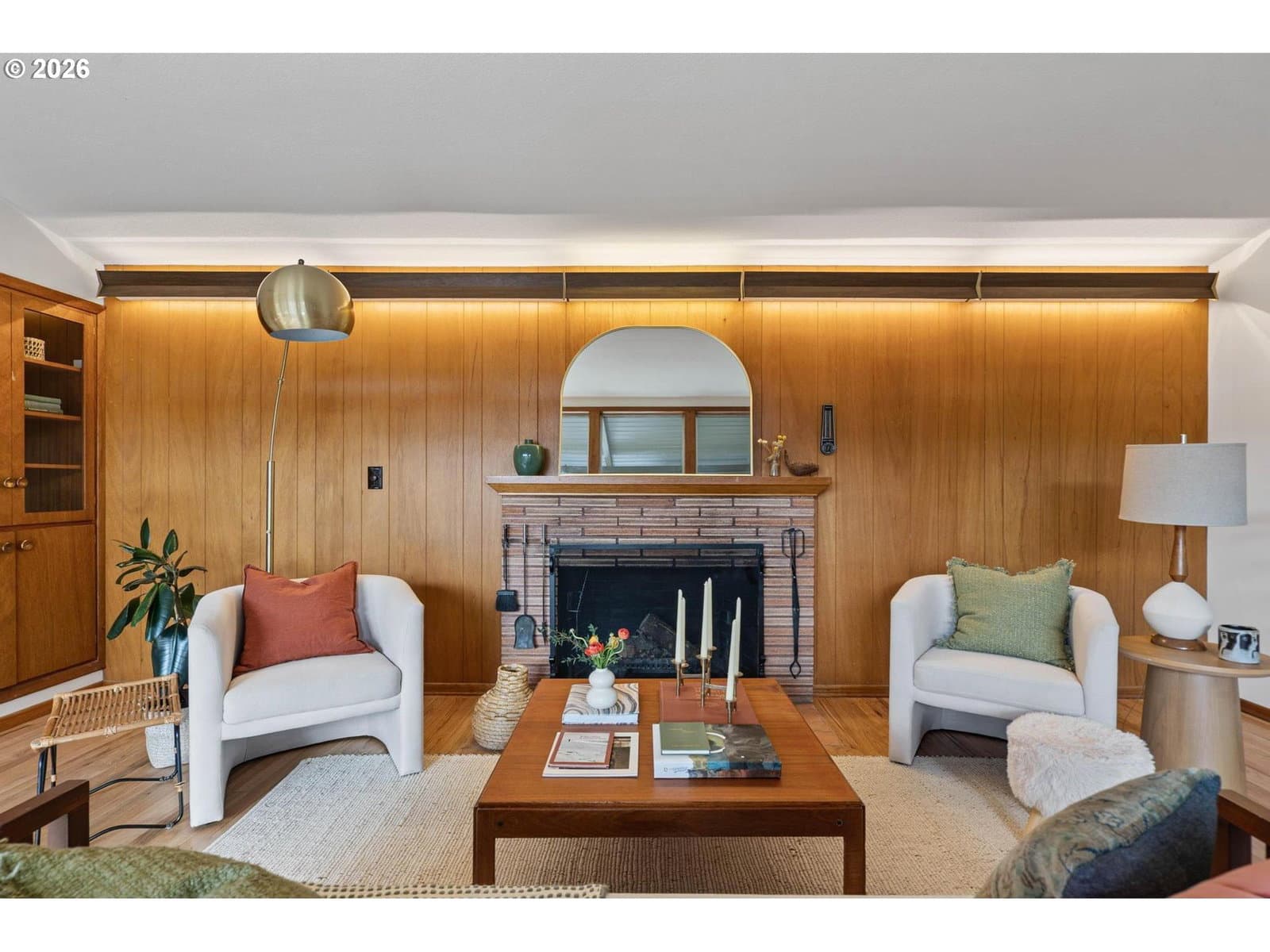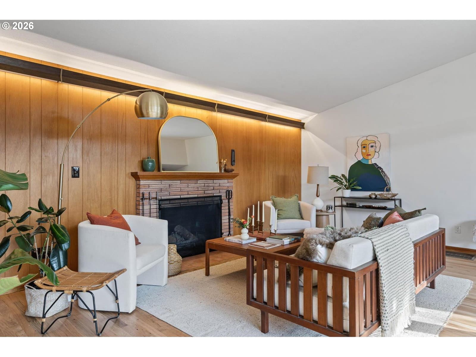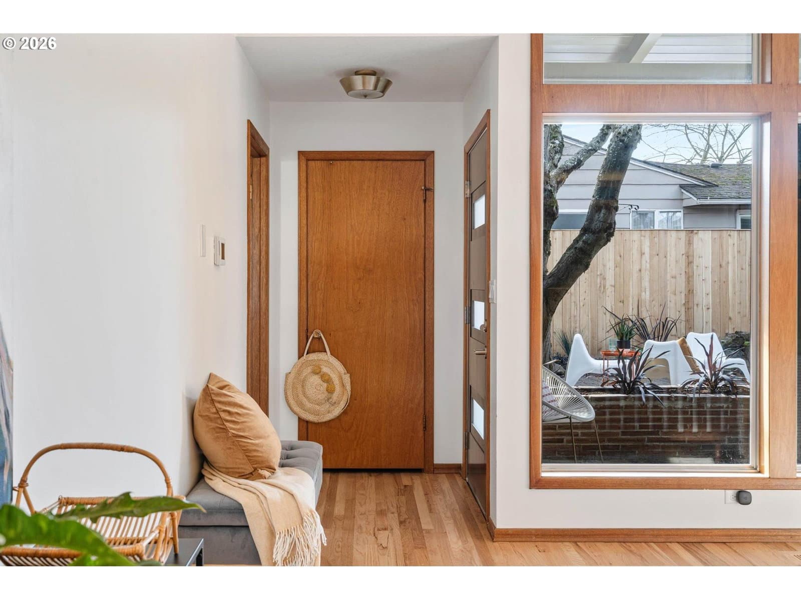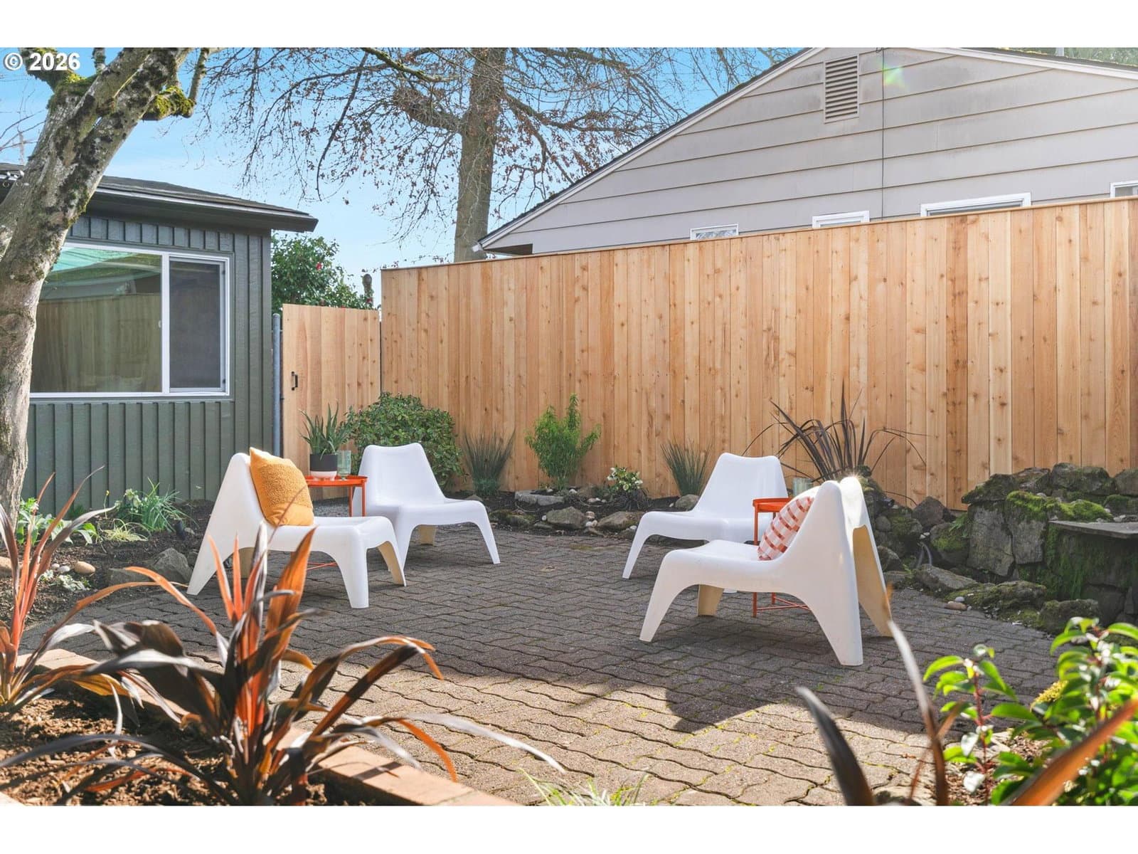 Stepping into this Mid-Century modern sanctuary, the outside world simply falls away. The heart of the home is a dramatic, wood-paneled living room featuring soaring vaulted ceilings and floor-to-ceiling glass that frames a private, soothing oasis. Whether you are an introvert seeking a quiet retreat by the courtyard fountain or an extrovert who lives for seamless indoor-outdoor entertaining, the social layout and fresh landscaping create a perfect harmony. It is a home that feels both expansive and deeply intimate—a rare world of your own in the heart of Concordia.Thoughtfully remodeled to honor its original character, this residence shines with a mix of new and meticulously refinished original hardwood floors. The chic designer kitchen gives a hint to mid-century with modern day function, while the rear of the home offers three quiet bedrooms and two updated baths. The lower level adds a surprising layer of versatility with a cozy lounge for movie/game nights, a dedicated workshop, and a spacious laundry/bonus room. Complete with a two-car garage connected by a classic covered breezeway, this home is a stunning example of mid-century livability and style. [Home Energy Score = 3. HES Report at https://rpt.greenbuildingregistry.com/hes/OR10242812]