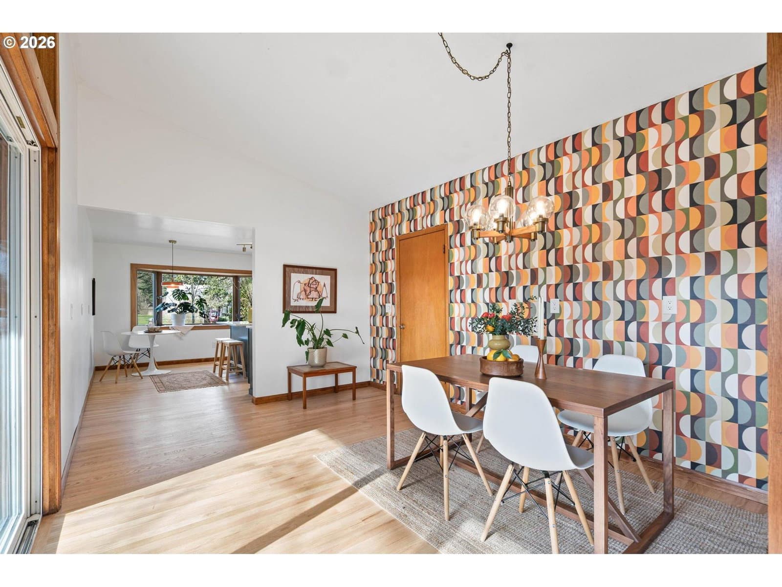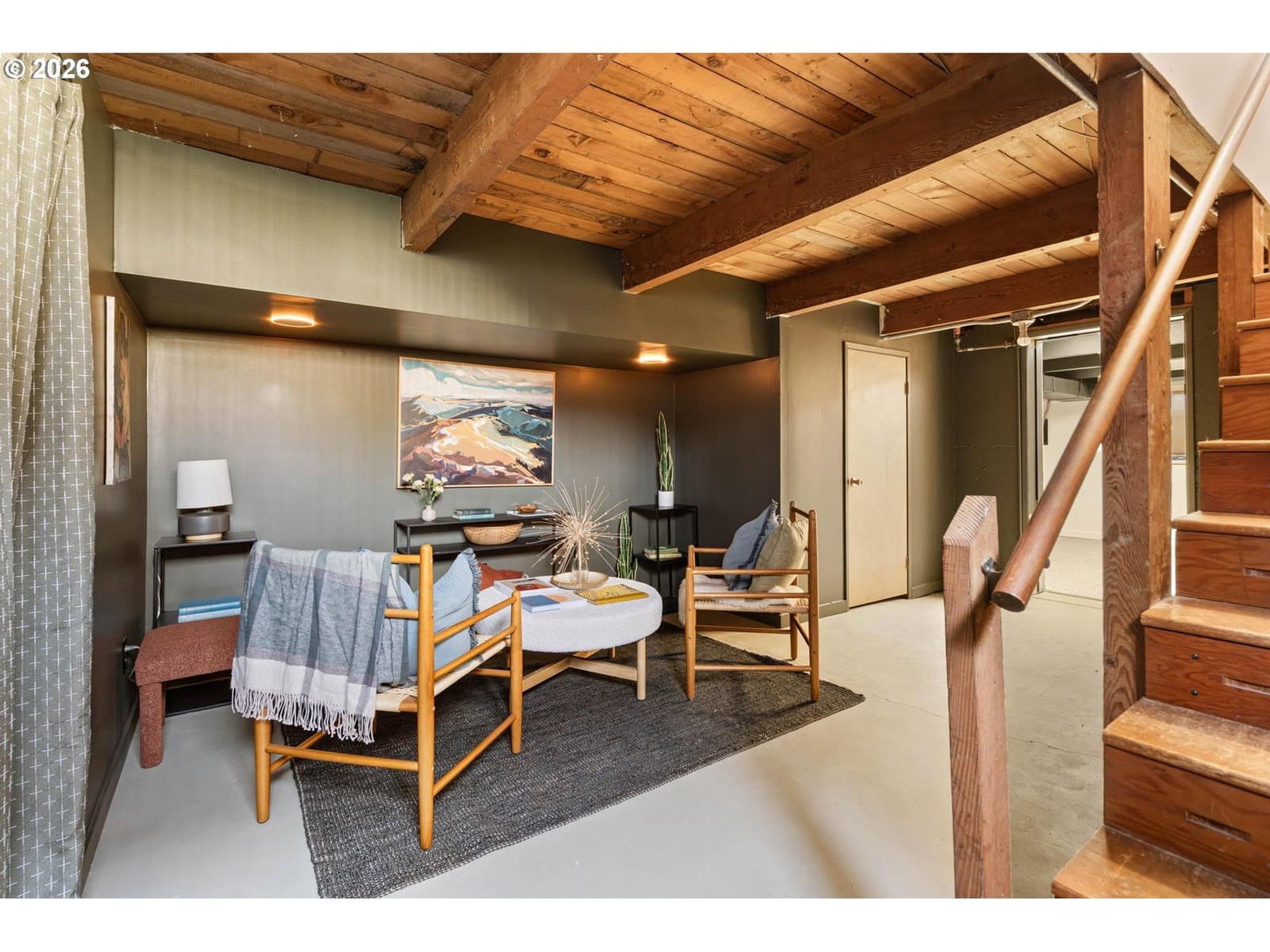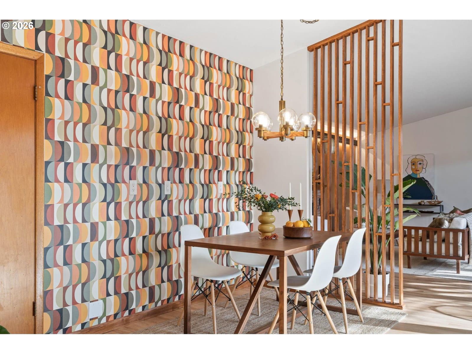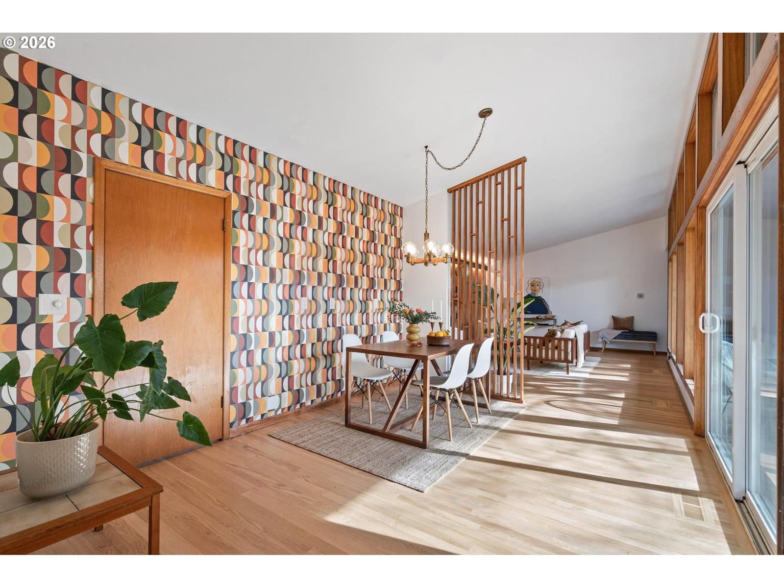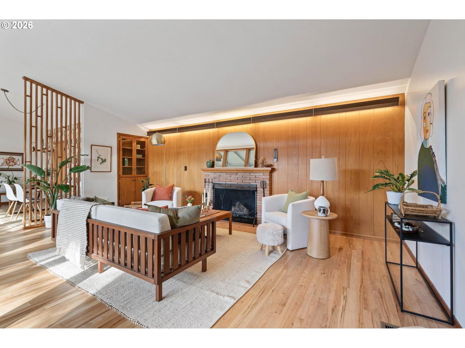 Stepping into this Mid-Century modern sanctuary, the outside world simply falls away. The heart of the home is a dramatic, wood-paneled living room featuring soaring vaulted ceilings and floor-to-ceiling glass that frames a private, soothing oasis. Whether you are an introvert seeking a quiet retreat by the courtyard fountain or an extrovert who lives for seamless indoor-outdoor entertaining, the social layout and fresh landscaping create a perfect harmony. It is a home that feels both expansive and deeply intimate—a rare world of your own in the heart of Concordia.Thoughtfully remodeled to honor its original character, this residence shines with a mix of new and meticulously refinished original hardwood floors. The chic designer kitchen gives a hint to mid-century with modern day function, while the rear of the home offers three quiet bedrooms and two updated baths. The lower level adds a surprising layer of versatility with a cozy lounge for movie/game nights, a dedicated workshop, and a spacious laundry/bonus room. Complete with a two-car garage connected by a classic covered breezeway, this home is a stunning example of mid-century livability and style. [Home Energy Score = 3. HES Report at https://rpt.greenbuildingregistry.com/hes/OR10242812]