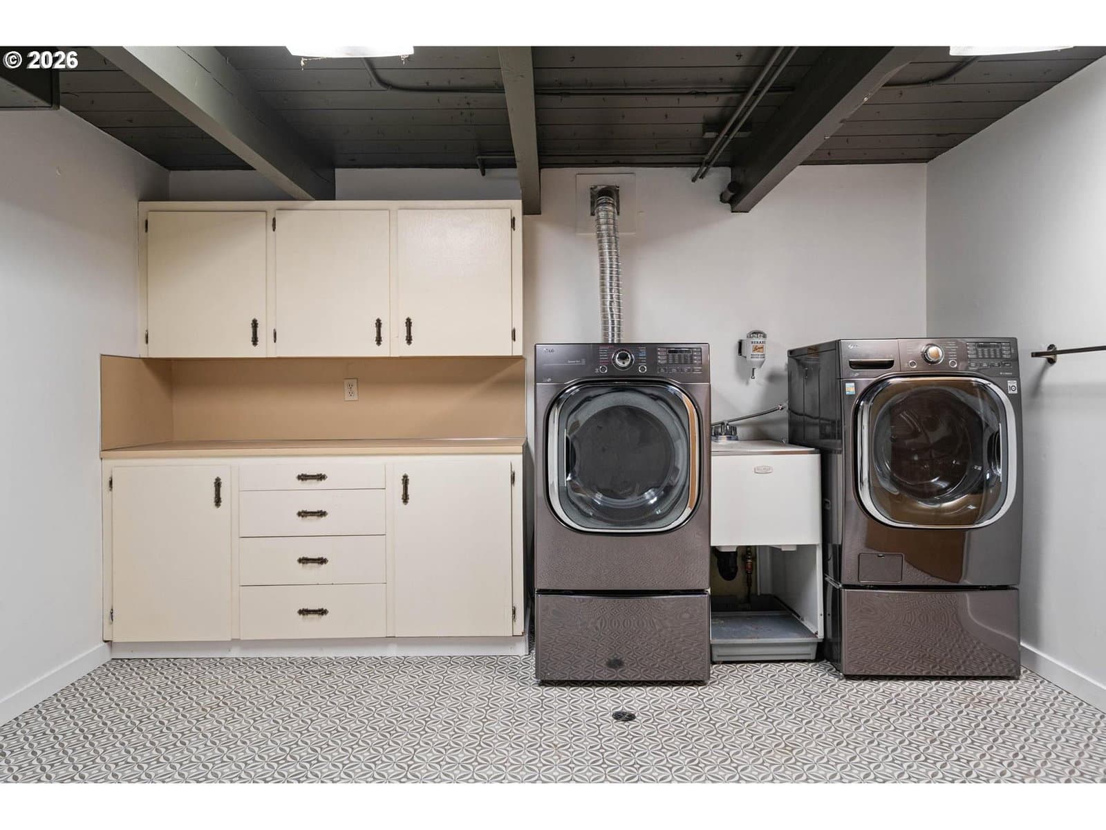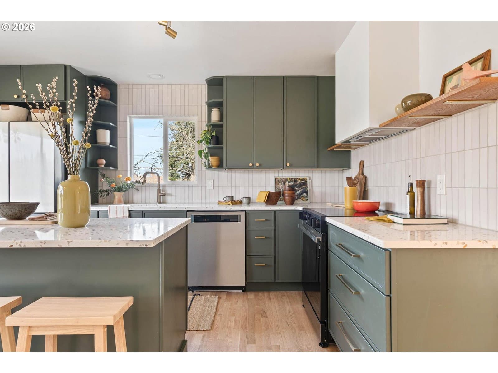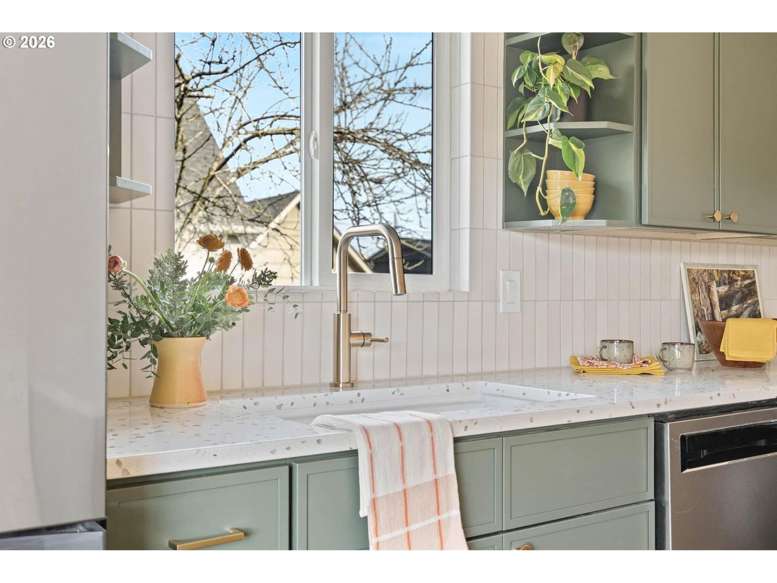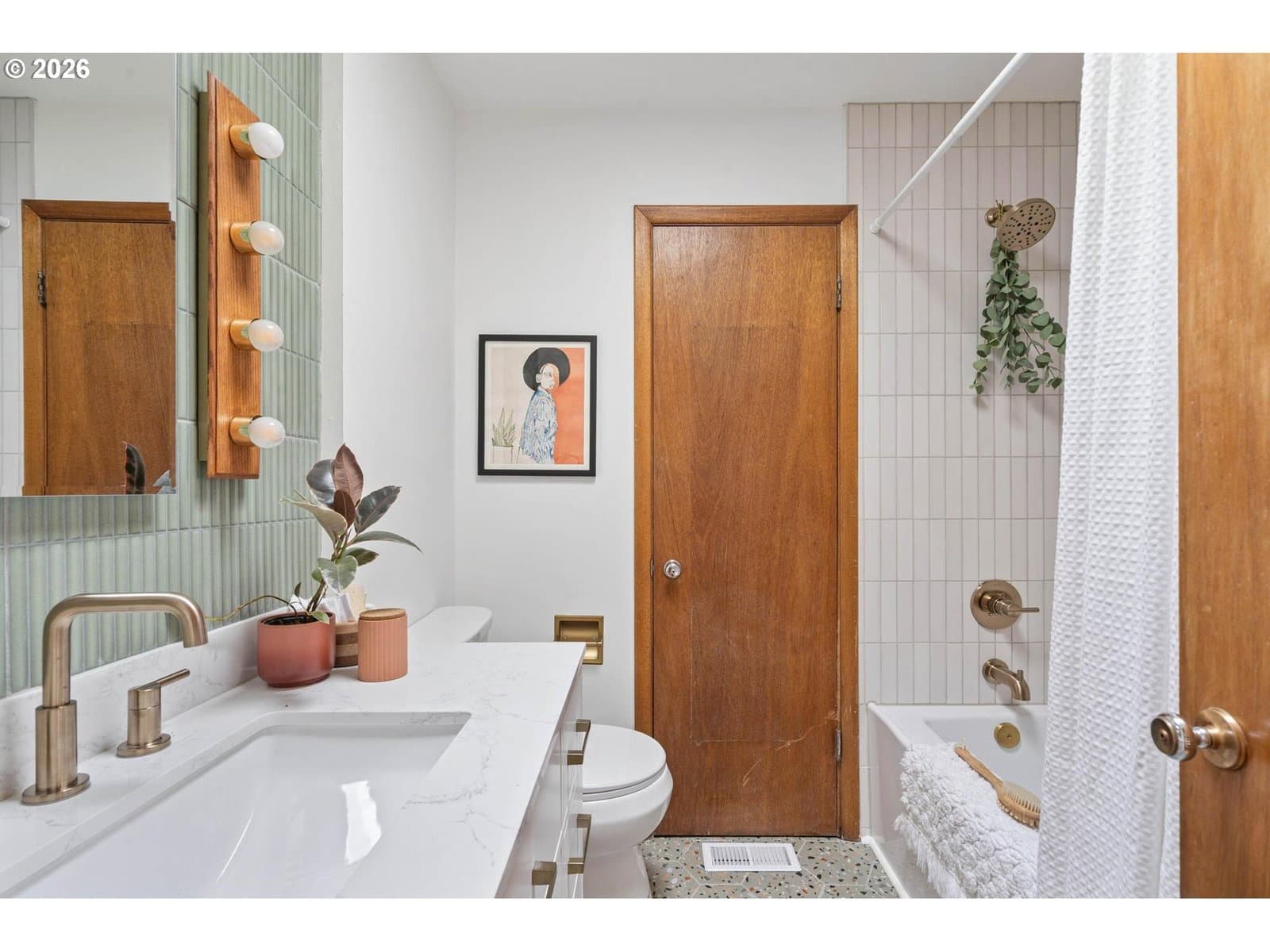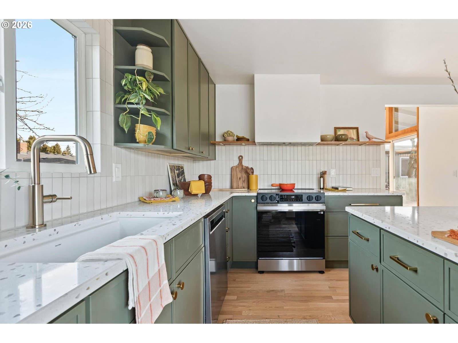 Stepping into this Mid-Century modern sanctuary, the outside world simply falls away. The heart of the home is a dramatic, wood-paneled living room featuring soaring vaulted ceilings and floor-to-ceiling glass that frames a private, soothing oasis. Whether you are an introvert seeking a quiet retreat by the courtyard fountain or an extrovert who lives for seamless indoor-outdoor entertaining, the social layout and fresh landscaping create a perfect harmony. It is a home that feels both expansive and deeply intimate—a rare world of your own in the heart of Concordia.Thoughtfully remodeled to honor its original character, this residence shines with a mix of new and meticulously refinished original hardwood floors. The chic designer kitchen gives a hint to mid-century with modern day function, while the rear of the home offers three quiet bedrooms and two updated baths. The lower level adds a surprising layer of versatility with a cozy lounge for movie/game nights, a dedicated workshop, and a spacious laundry/bonus room. Complete with a two-car garage connected by a classic covered breezeway, this home is a stunning example of mid-century livability and style. [Home Energy Score = 3. HES Report at https://rpt.greenbuildingregistry.com/hes/OR10242812]