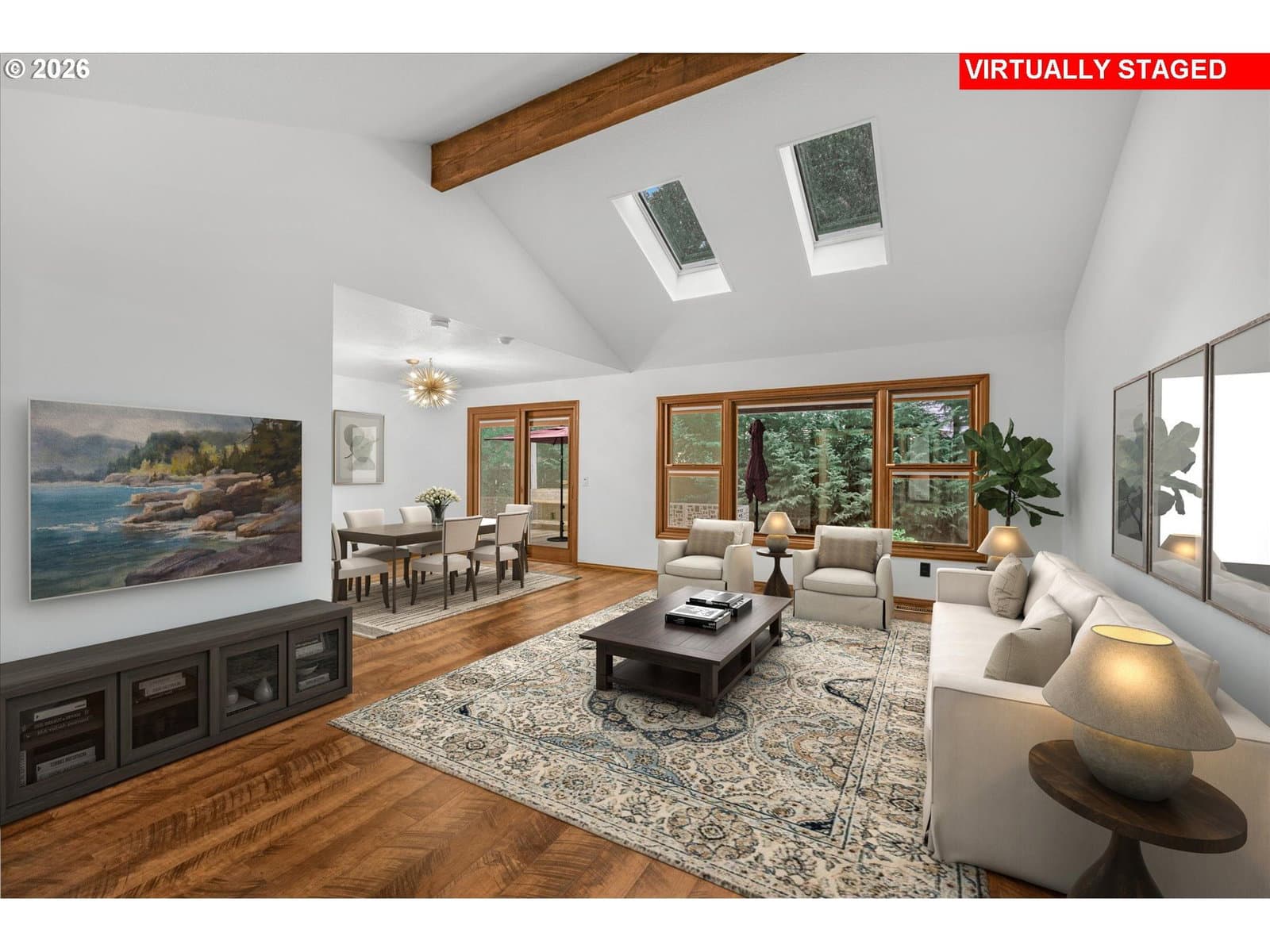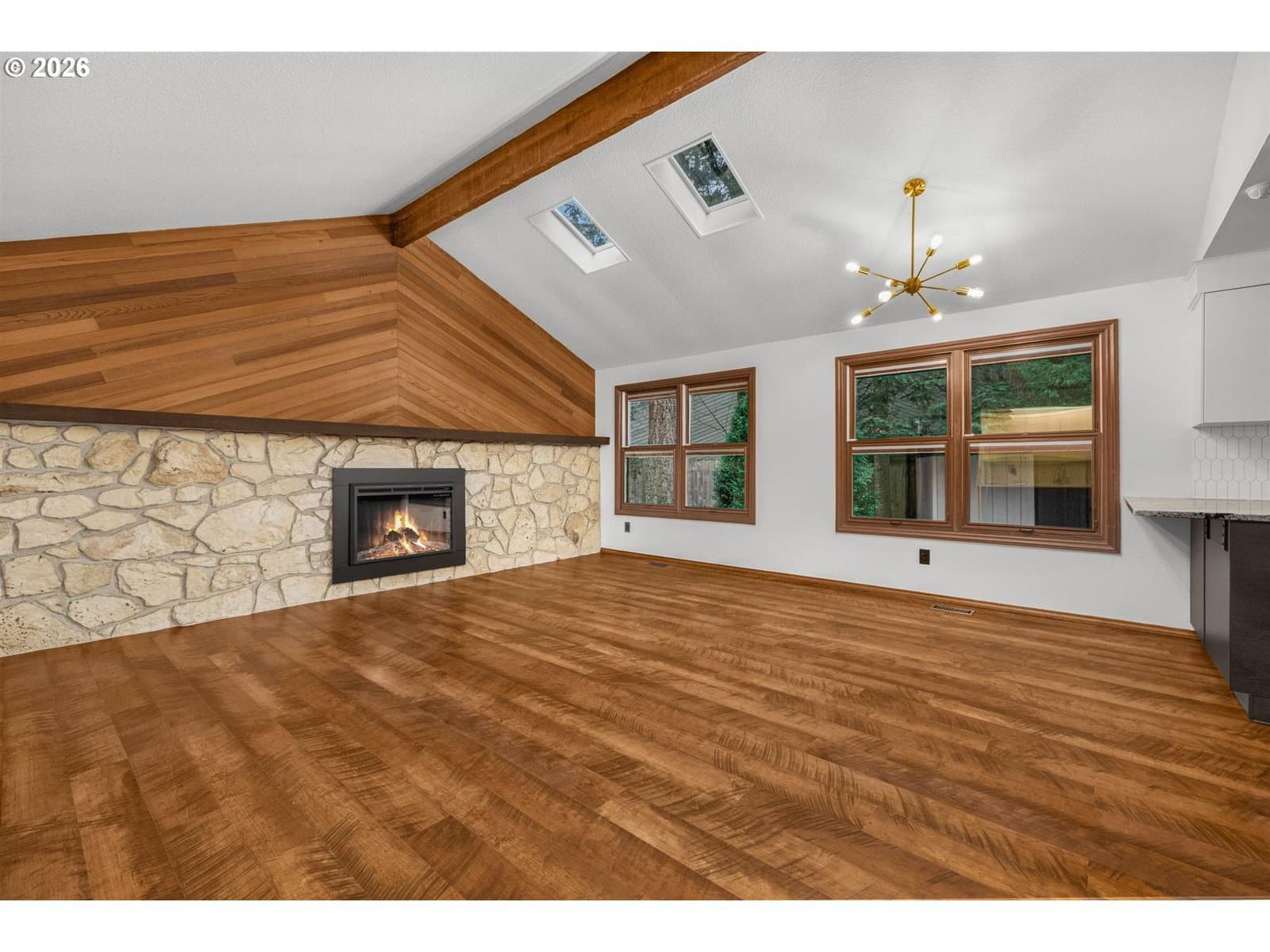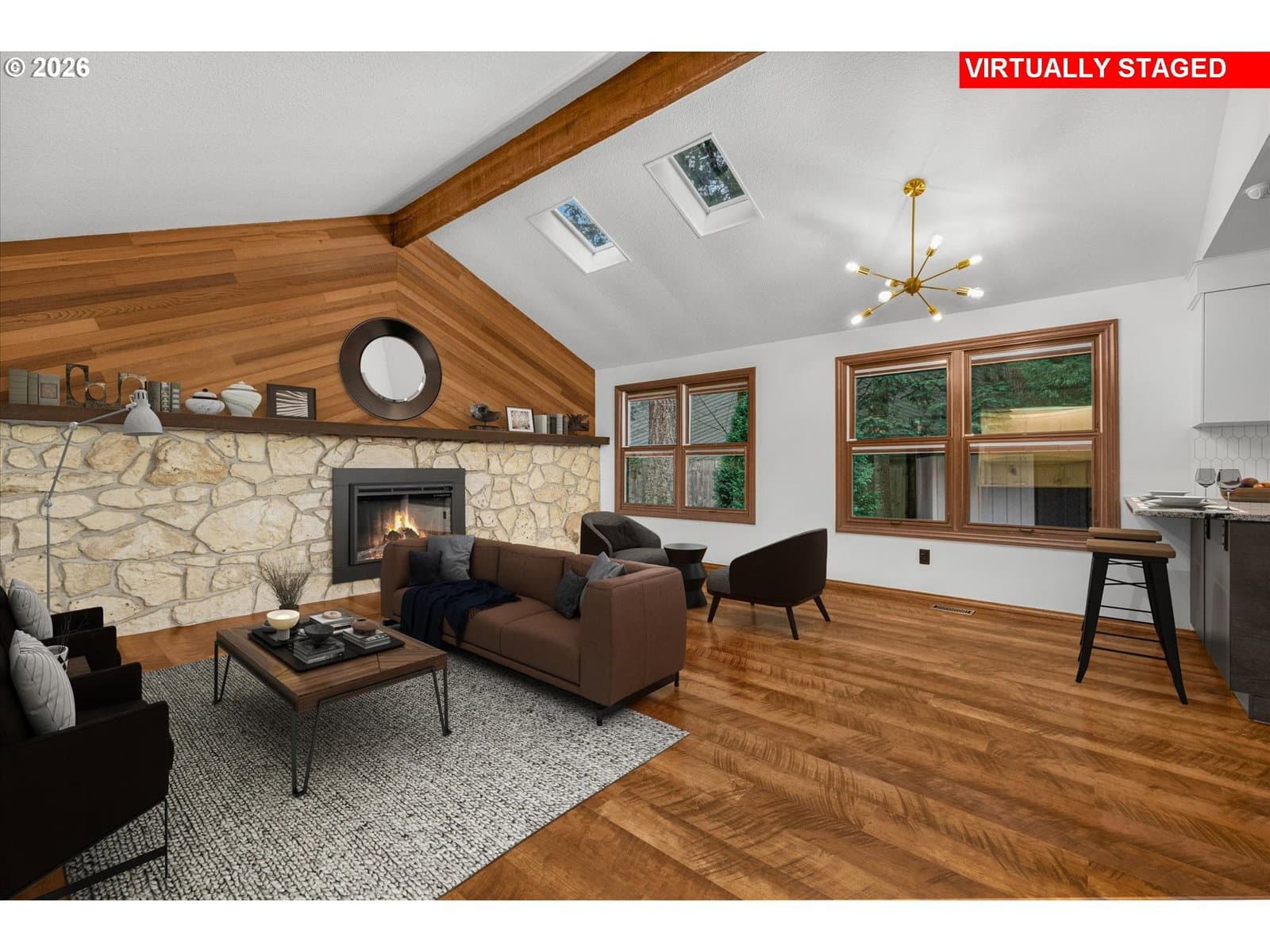 Discover effortless living in this single-level home featuring three bedrooms and two full bathrooms, thoughtfully remodeled to showcase charming mid-century inspired fixtures paired with sleek modern appliances and stylish updates throughout. The inviting floorplan offers comfortable everyday living and easy entertaining. A newer roof provides added peace of mind, while the fenced backyard creates a private setting for gatherings, pets or play. Centrally located in Durham's coveted Kingsgate neighborhood, you're just minutes from freeways, an upscale mall, shopping, restaurants, movie theatre, parks and scenic trails. Completely move-in ready and perfect for those seeking a tasteful, fully remodeled home in a convenient, yet tranquil location!