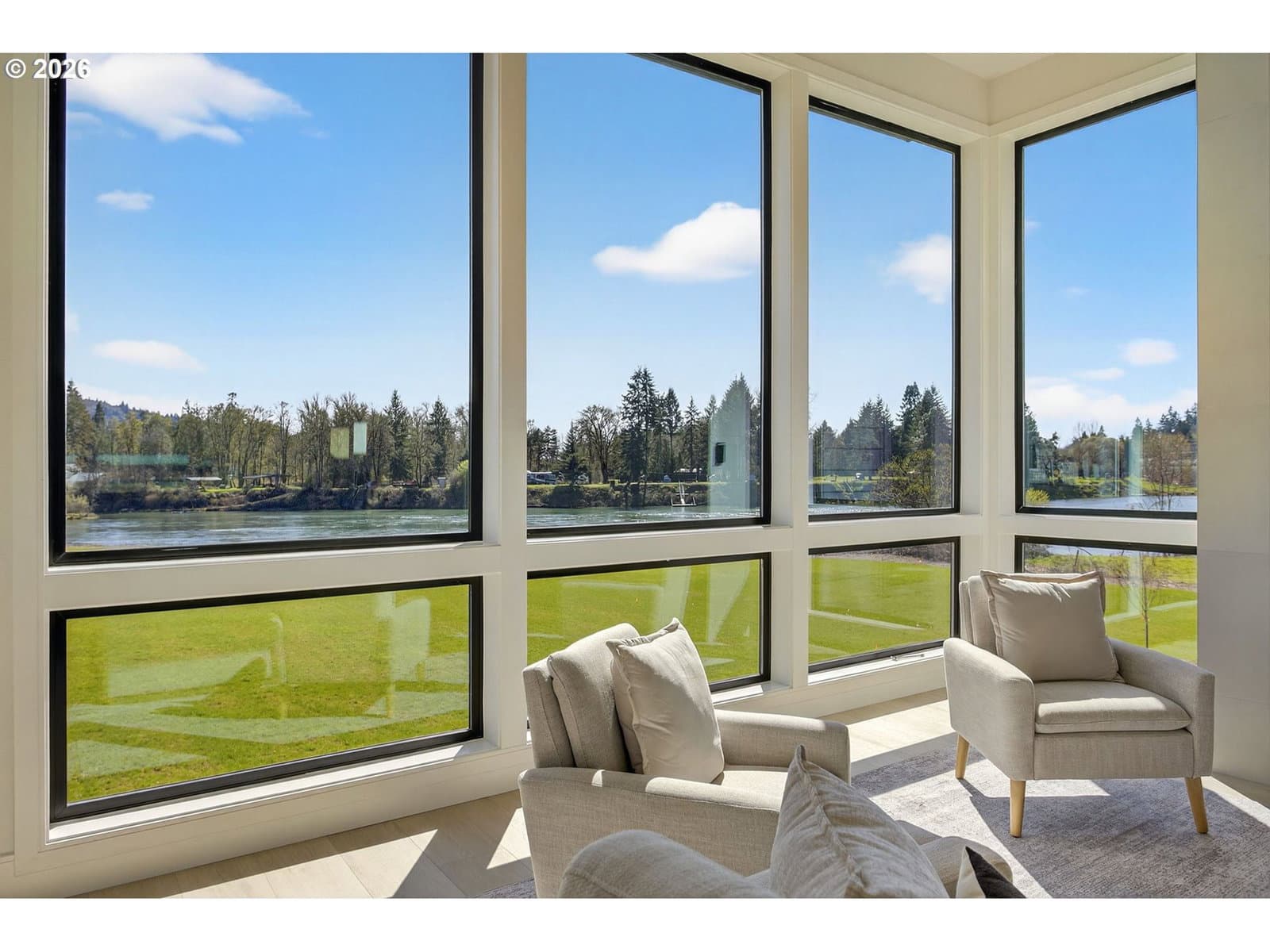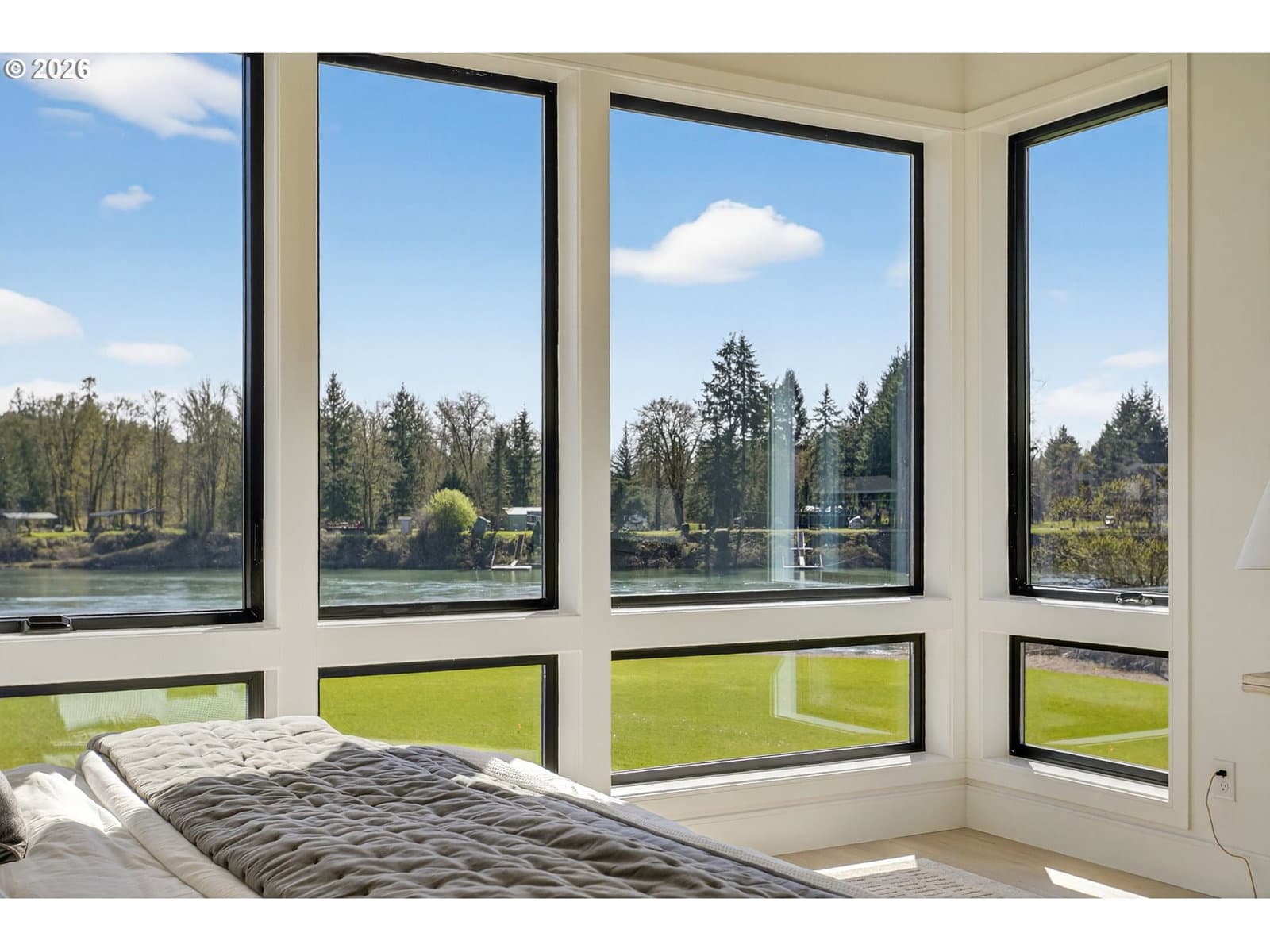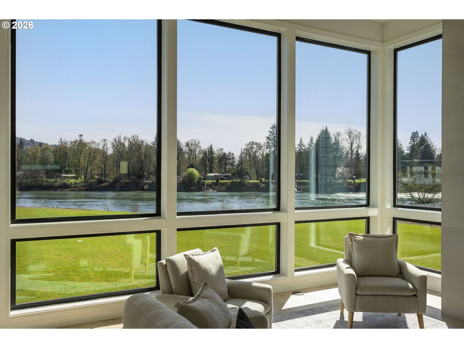3 Story Elevator and Private Boat Launch. Discover your private oasis with this stunning custom-built home on 2 acres, nestled along the serene banks of the river. Breathtaking views and an inviting landscape await you, making this property truly one-of-a-kind.Situated on over 300 ft of low bank riverfront which includes a private boat launch so you can enjoy easy access to water activities. This home features expansive windows that flood the living spaces with natural light, offering panoramic river views throughout. Showcase gourmet kitchen is equipped with all Thermador appliances including custom paneled built in refrigerator, freezer and wine cooler. Elegant dining area and living room with high ceilings and windows plus sliding doors creates an ideal space for entertaining and family gatherings with view backdrop. Enjoy privacy and comfort in the spacious primary suite, complete with an en-suite bathroom and custom walk-in closet with lighted cabinetry. Designed for ease of living, a three-level elevator makes transporting groceries and shopping items available to every floor. A patio overlooking the river features a built-in BBQ, firepit, and heaters, perfect for maximizing your outdoor living season. Ample parking space along with shop space and additional storage for outdoor equipment and recreational gear. This custom home offers the perfect blend of luxury, comfort, and practicality. Surrounded by beautiful landscapes, you can enjoy the feel of a private retreat while being just minutes from downtown Woodland, 12 minutes from fine dining and entertainment at Ilani Casino, and 15 minutes from Ridgefield Costco.