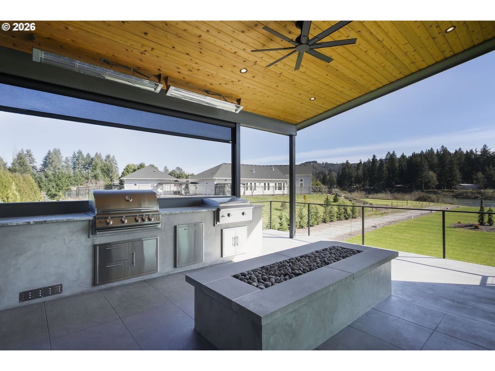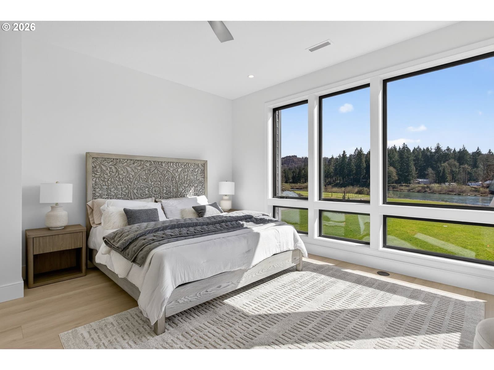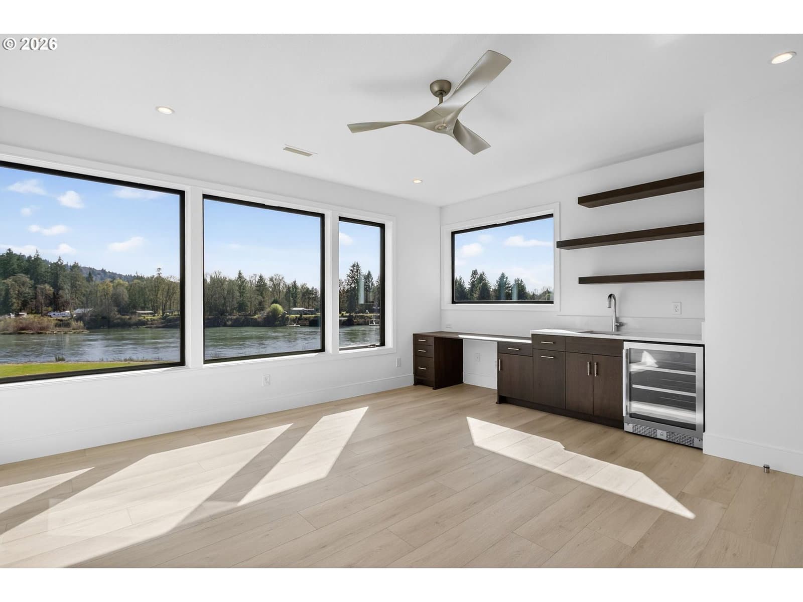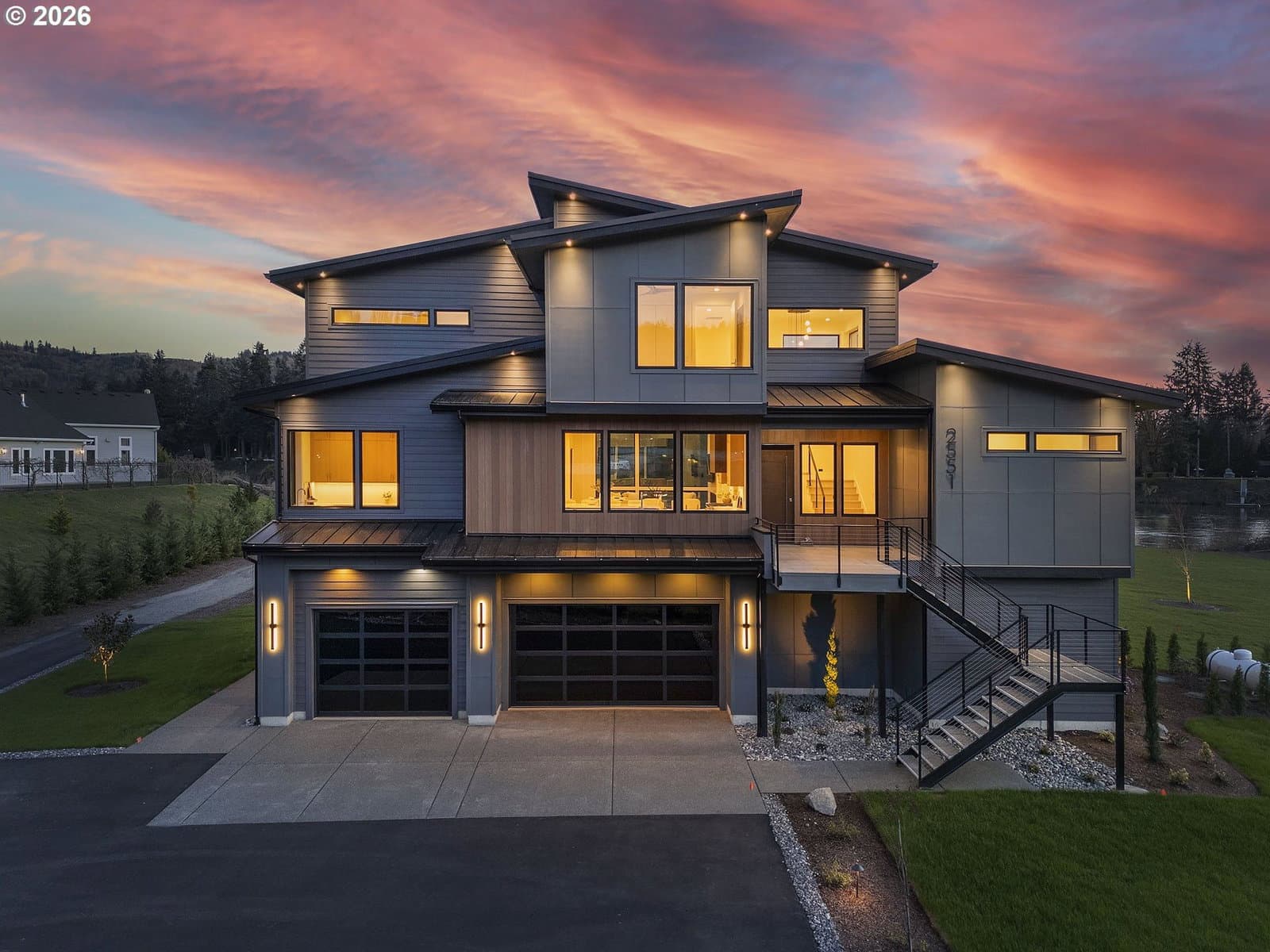3 Story Elevator and Private Boat Launch. Discover your private oasis with this stunning custom-built home on 2 acres, nestled along the serene banks of the river. Breathtaking views and an inviting landscape await you, making this property truly one-of-a-kind.Situated on over 300 ft of low bank riverfront which includes a private boat launch so you can enjoy easy access to water activities. This home features expansive windows that flood the living spaces with natural light, offering panoramic river views throughout. Showcase gourmet kitchen is equipped with all Thermador appliances including custom paneled built in refrigerator, freezer and wine cooler. Elegant dining area and living room with high ceilings and windows plus sliding doors creates an ideal space for entertaining and family gatherings with view backdrop. Enjoy privacy and comfort in the spacious primary suite, complete with an en-suite bathroom and custom walk-in closet with lighted cabinetry. Designed for ease of living, a three-level elevator makes transporting groceries and shopping items available to every floor. A patio overlooking the river features a built-in BBQ, firepit, and heaters, perfect for maximizing your outdoor living season. Ample parking space along with shop space and additional storage for outdoor equipment and recreational gear. This custom home offers the perfect blend of luxury, comfort, and practicality. Surrounded by beautiful landscapes, you can enjoy the feel of a private retreat while being just minutes from downtown Woodland, 12 minutes from fine dining and entertainment at Ilani Casino, and 15 minutes from Ridgefield Costco.