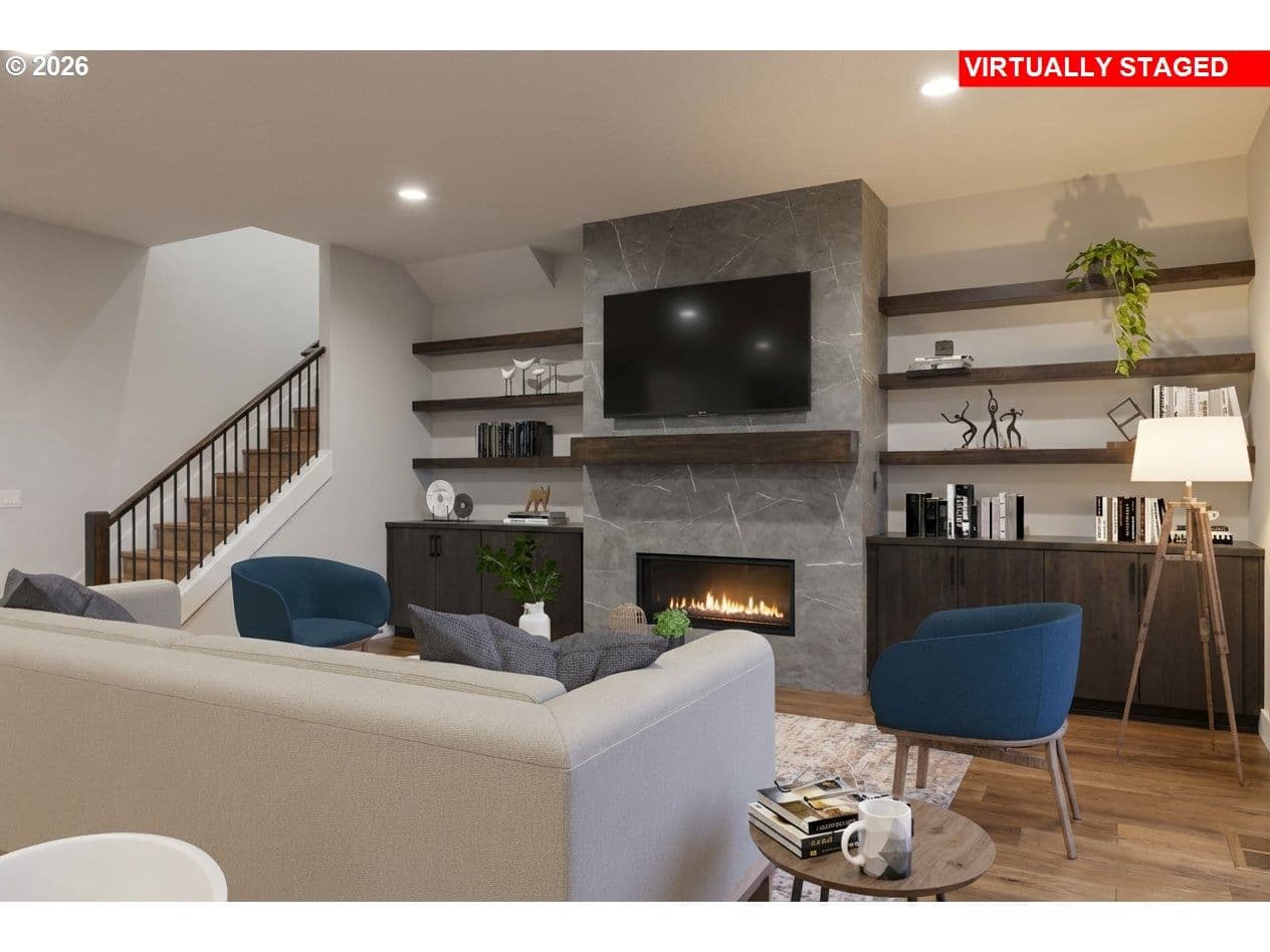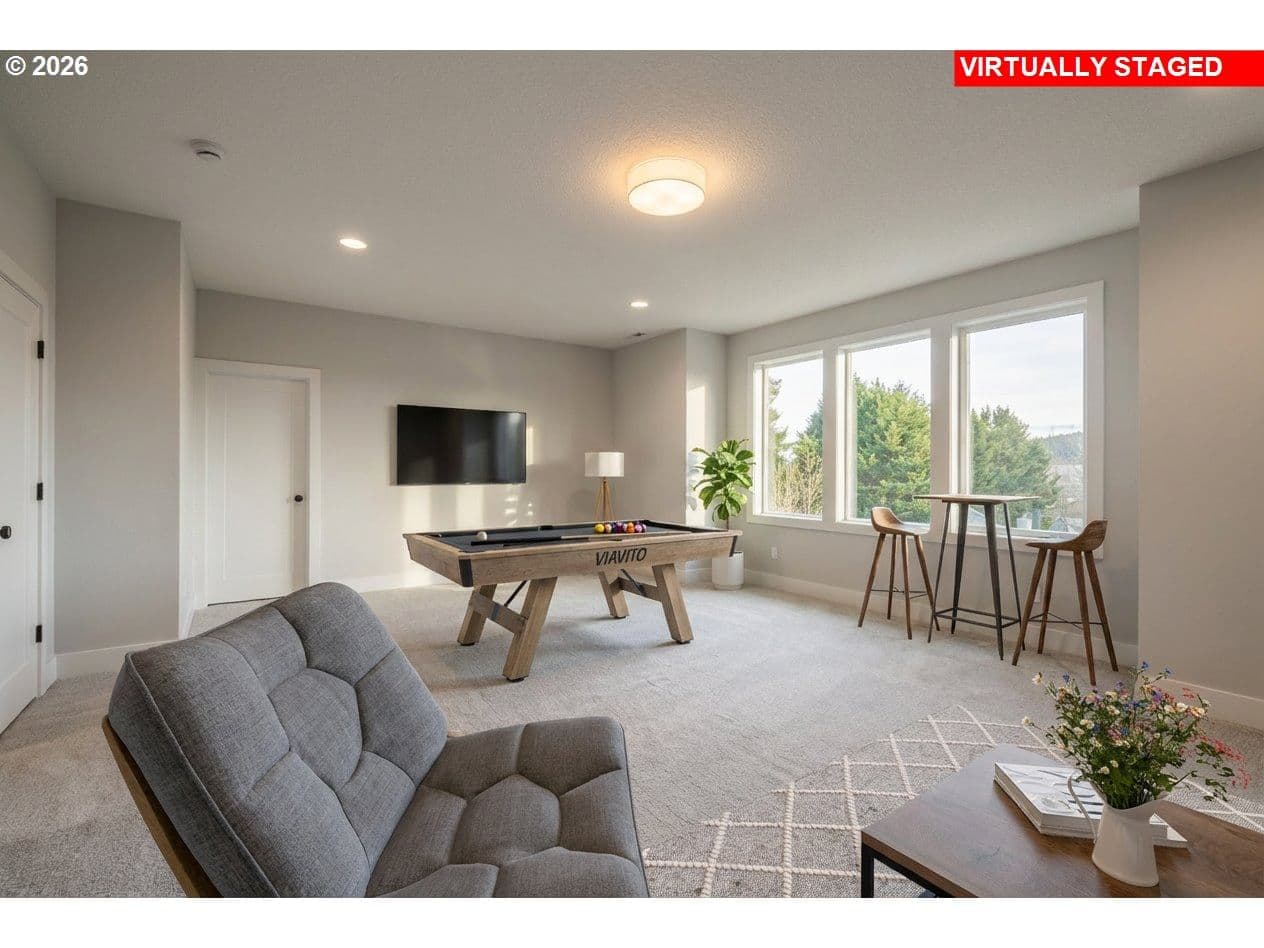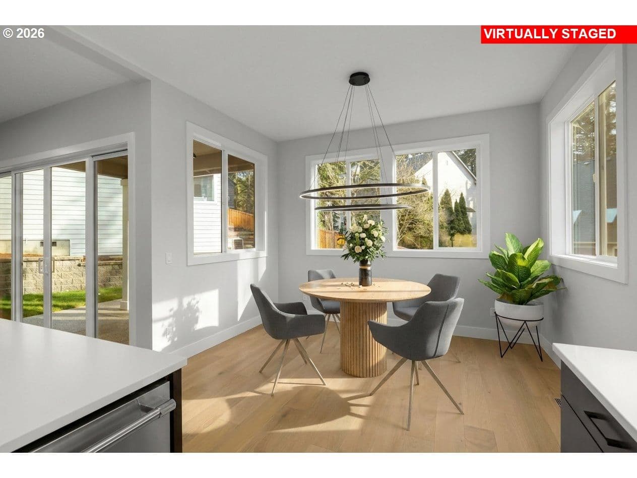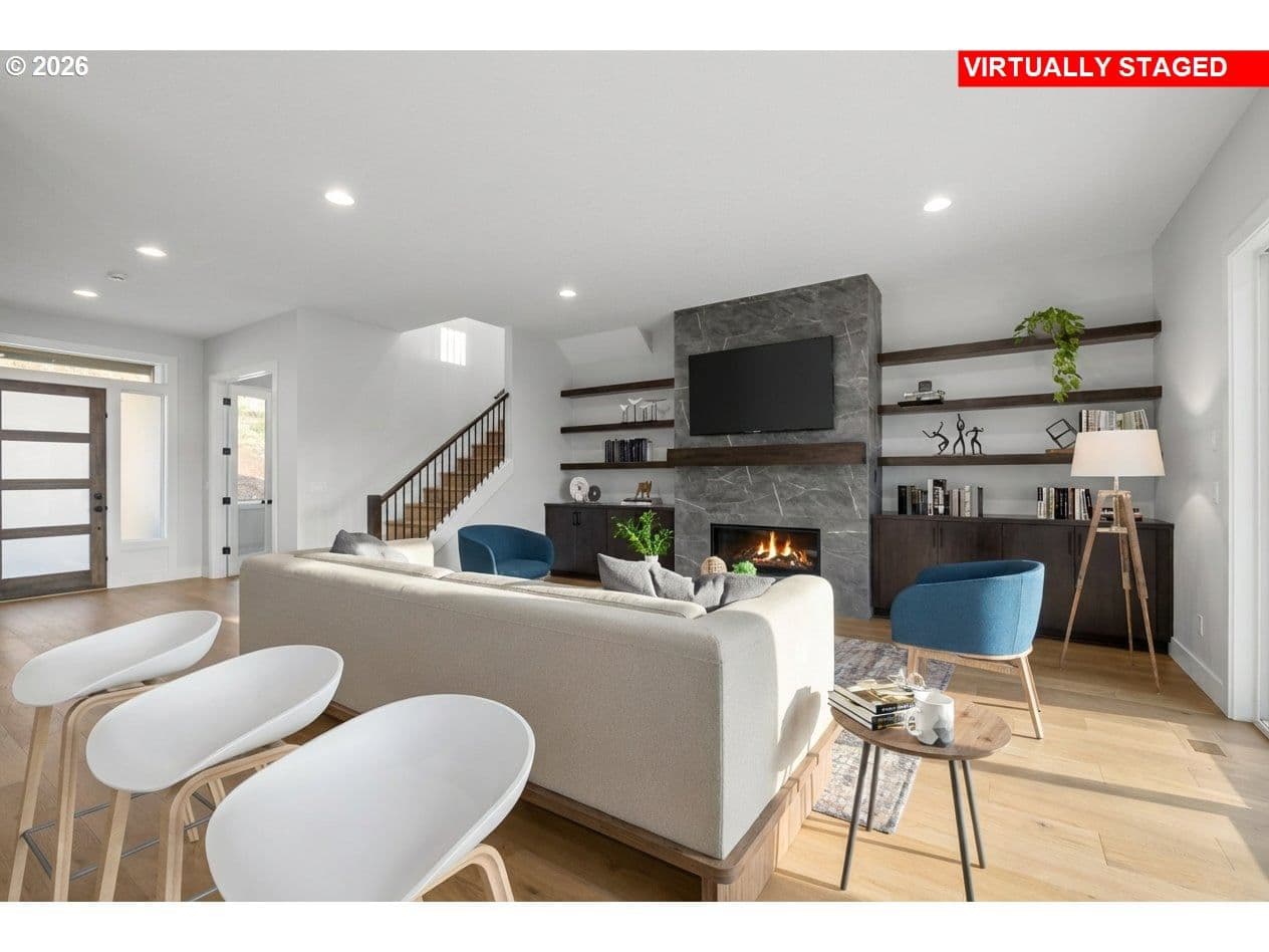 OPEN SUNDAY, 12-4pm! MOVE-IN READY NEW CONSTRUCTION just under ½ mile from Progress Ridge. Experience quality in craftsmanship with this home by premier local builder Westwood Homes LLC. Spectacular views from the bonus room upstairs, plus a guest bedroom/den and full bath on the main level. Situated on a corner lot, Lot 1 blends contemporary design with elevated finishes throughout.Great room is warm yet striking, featuring tall ceilings, expansive windows, and a gas fireplace with custom built-in cabinetry. It flows seamlessly onto a covered patio with heater and BBQ gas hookup and backyard—ideal for year-round indoor-outdoor living. GOURMET kitchen is designed for both daily living and entertaining, offering THERMADOR stainless steel appliances, a 36” gas range, custom cabinet hood, built-in microwave, APPLIANCE GARAGE in the pantry, and soft-close cabinetry throughout.MAIN LEVEL GUEST ROOM/OFFICE AND ALSO FULL BATHROOM. Second level is dedicated to private living quarters, including luxurious primary suite with generous walk-in closet, two additional bedrooms, and AMAZING VIEWS FROM versatile bonus room which features abundant storage, and flexible use as a media room, office, creative retreat, or additional bedroom.Additional features include an oversized two-car garage with shop/storage area, and homes that are EV- and solar-ready. All three homes are available. Lots 2 and 3 feature primary suites plus a second guest bedroom and full bath on the main level. NAVIGATE TO: 14251 SW Fern Street. Look for the Rudi Hill sign—Lot 1 is the corner lot on the right.
