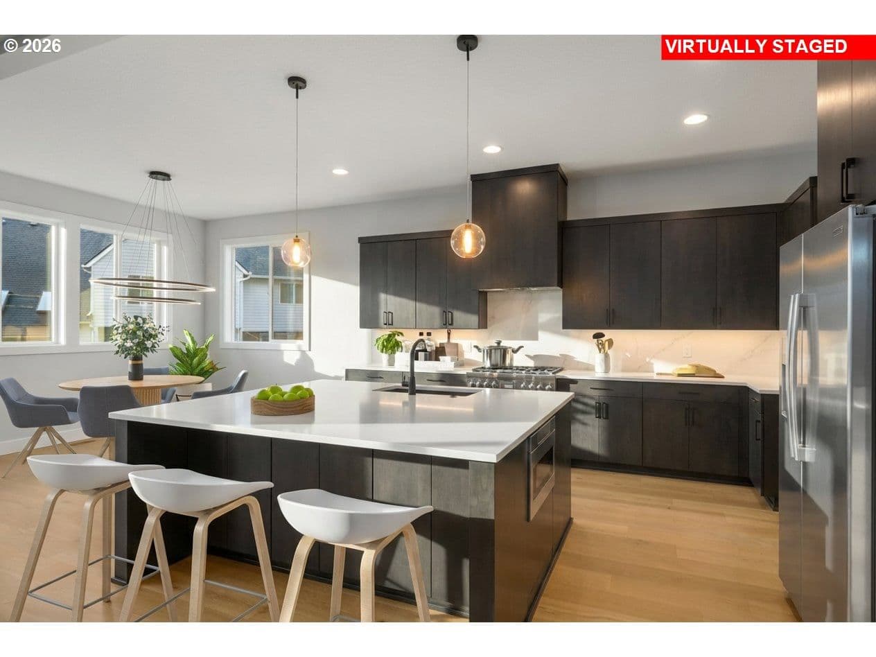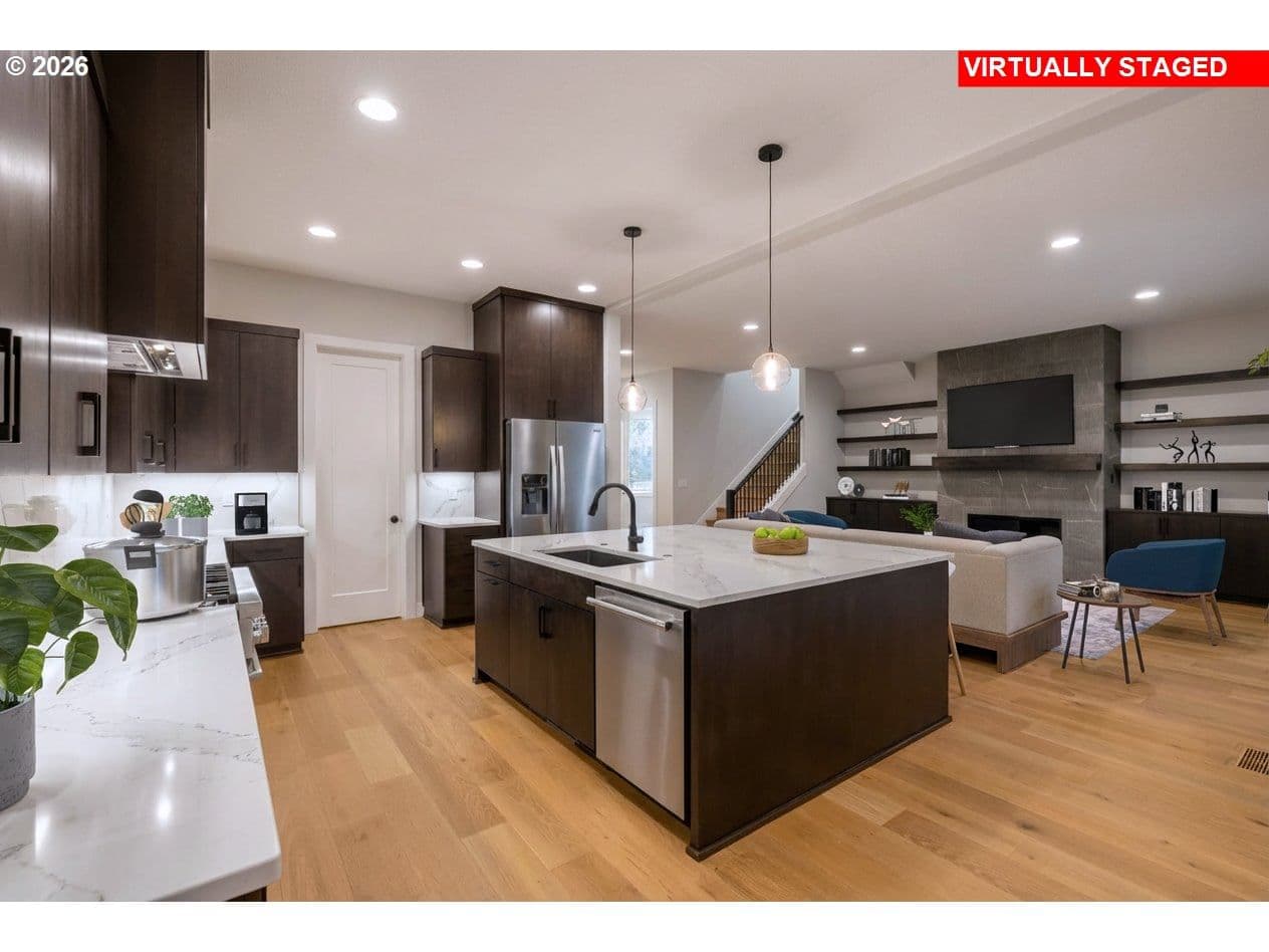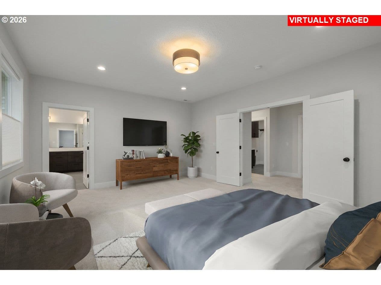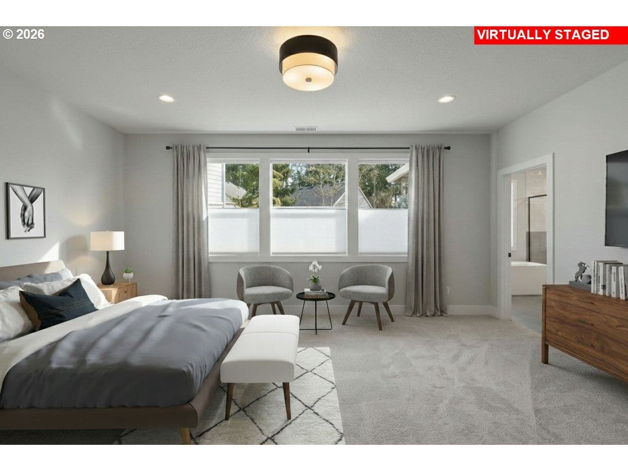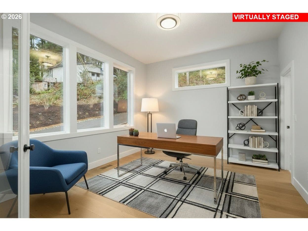 OPEN SUNDAY, 12-4pm! MOVE-IN READY NEW CONSTRUCTION just under ½ mile from Progress Ridge. Experience quality in craftsmanship with this home by premier local builder Westwood Homes LLC. Spectacular views from the bonus room upstairs, plus a guest bedroom/den and full bath on the main level. Situated on a corner lot, Lot 1 blends contemporary design with elevated finishes throughout.Great room is warm yet striking, featuring tall ceilings, expansive windows, and a gas fireplace with custom built-in cabinetry. It flows seamlessly onto a covered patio with heater and BBQ gas hookup and backyard—ideal for year-round indoor-outdoor living. GOURMET kitchen is designed for both daily living and entertaining, offering THERMADOR stainless steel appliances, a 36” gas range, custom cabinet hood, built-in microwave, APPLIANCE GARAGE in the pantry, and soft-close cabinetry throughout.MAIN LEVEL GUEST ROOM/OFFICE AND ALSO FULL BATHROOM. Second level is dedicated to private living quarters, including luxurious primary suite with generous walk-in closet, two additional bedrooms, and AMAZING VIEWS FROM versatile bonus room which features abundant storage, and flexible use as a media room, office, creative retreat, or additional bedroom.Additional features include an oversized two-car garage with shop/storage area, and homes that are EV- and solar-ready. All three homes are available. Lots 2 and 3 feature primary suites plus a second guest bedroom and full bath on the main level. NAVIGATE TO: 14251 SW Fern Street. Look for the Rudi Hill sign—Lot 1 is the corner lot on the right.