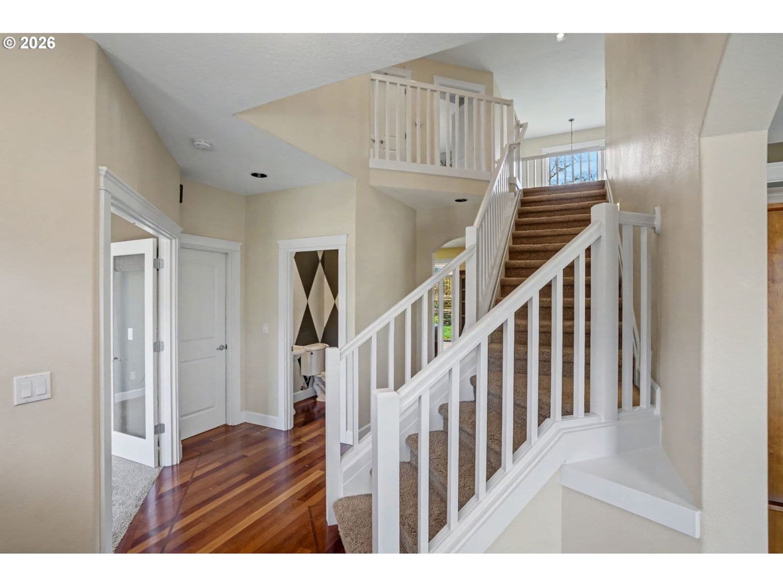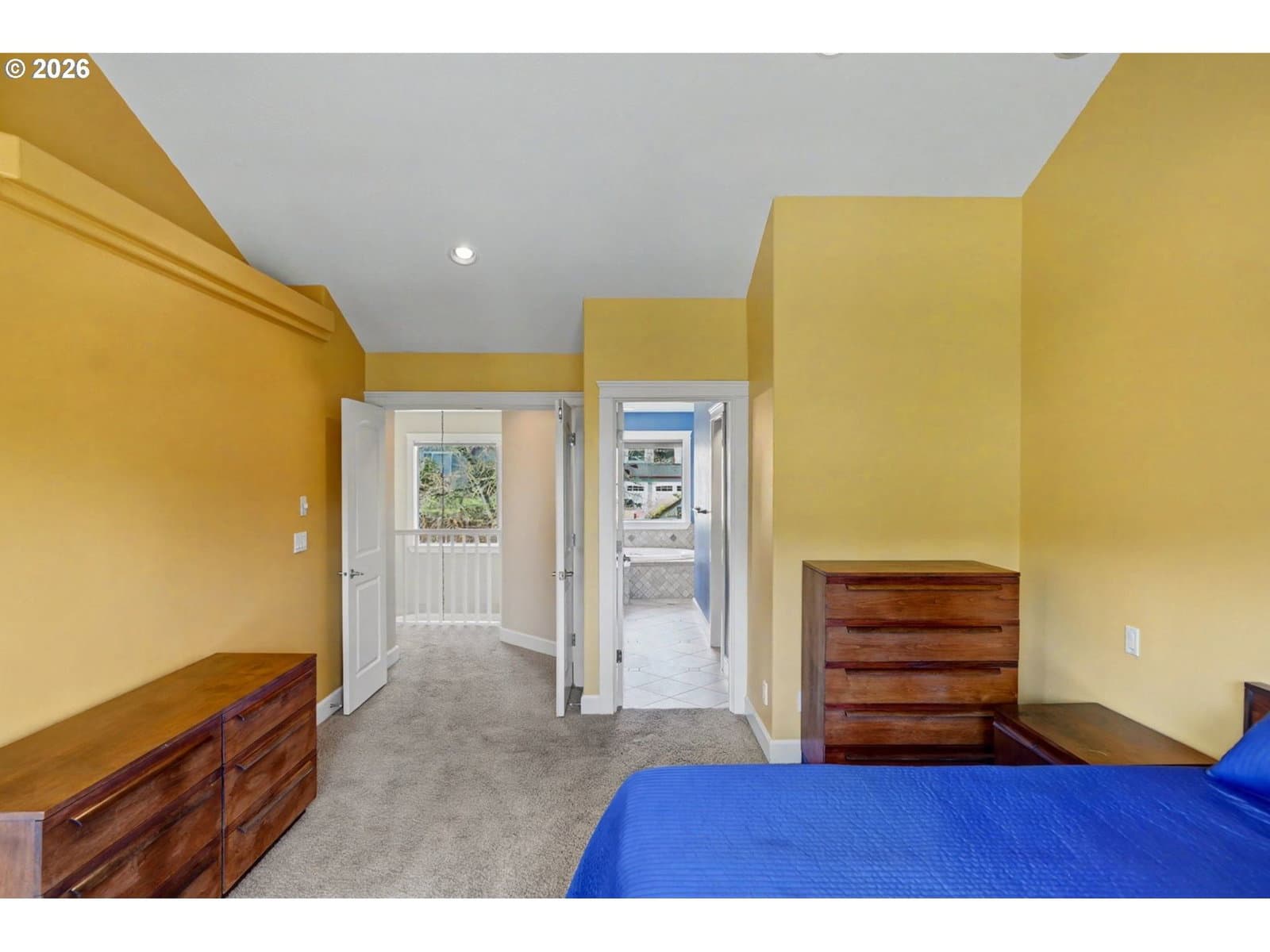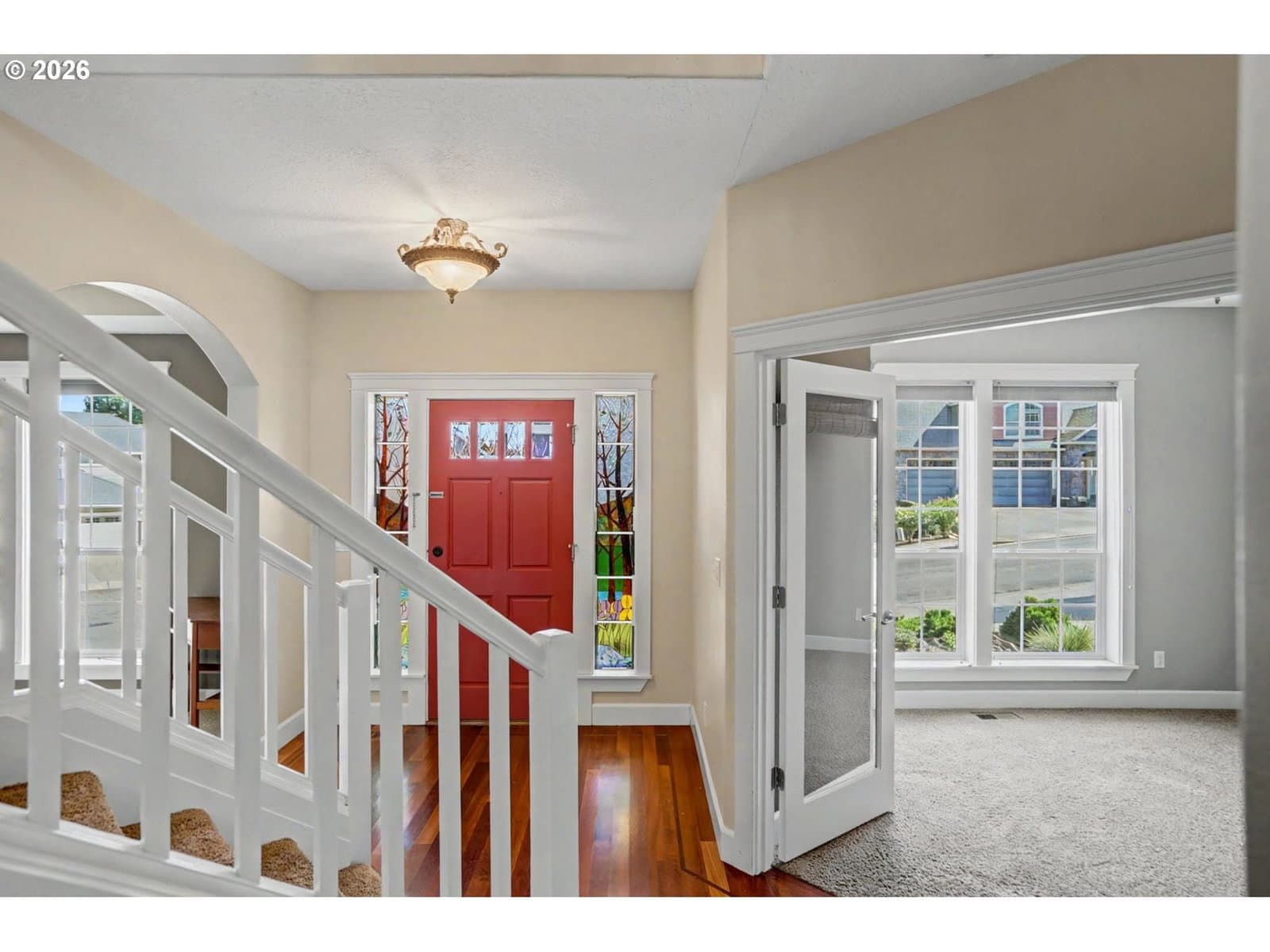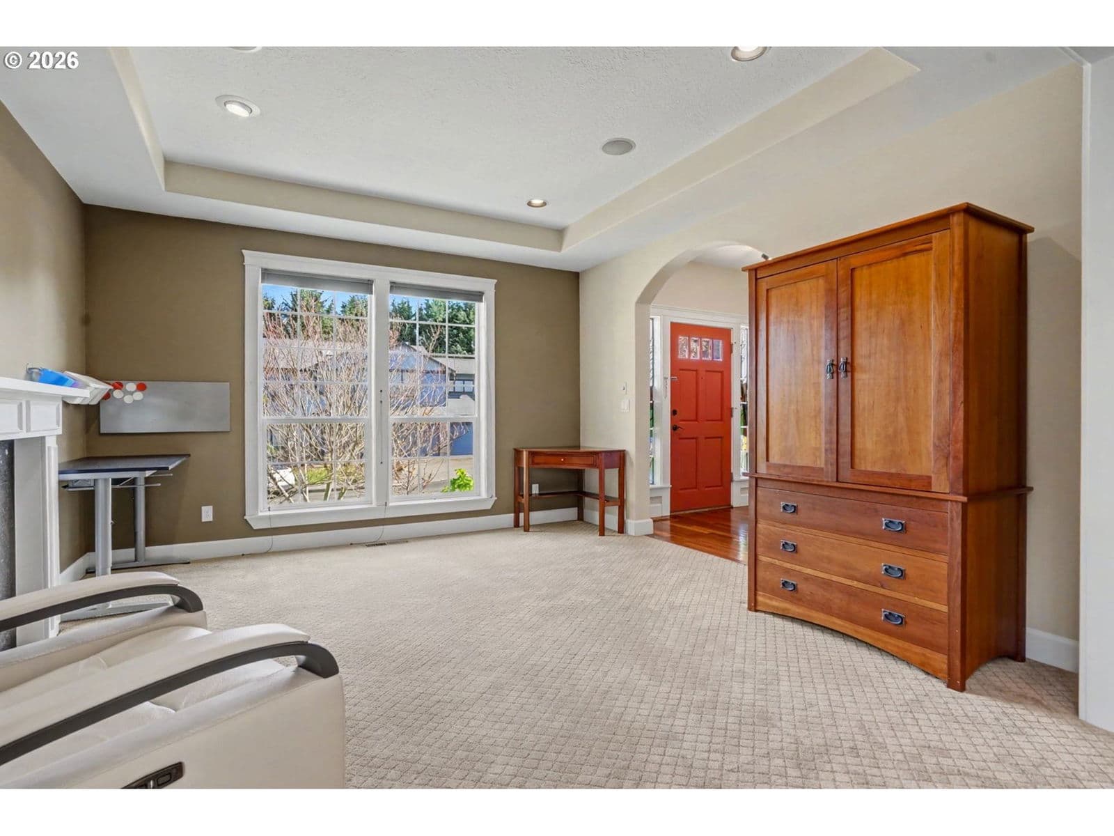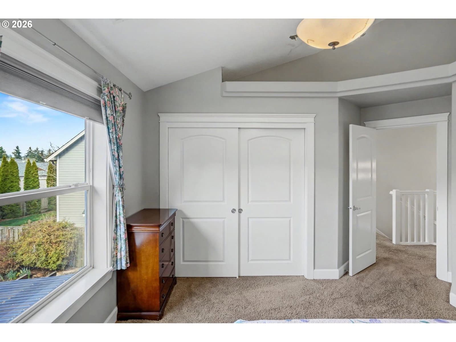 Well-maintained and very energy efficient 4 bed, 2.5 bath home offering 2,627 SF on a quiet cul-de-sac. Flexible layout includes a main floor bedroom, formal living & dining rooms, and both living and family rooms, each with gas fireplaces. Light-filled nook off the gourmet kitchen featuring granite countertops, cherry cabinetry, stainless Frigidaire appliances, and a walk-in pantry. Cherry cabinets continue throughout the bathrooms and laundry room for a cohesive, high-quality finish. Hardwood flooring on the main level. Spacious bonus room provides ideal space for media, office, or playroom. Primary suite features a walk-in closet, jetted tub, walk-in shower, and vaulted sitting/retreat area. Dual heating and cooling systems provide efficient comfort year-round. Central vacuum and central speakers included. The backyard is a true highlight with seven raised garden beds, fruit trees, grapevines, and abundant flowering plants, all within a fully fenced and beautifully landscaped setting. Covered patio, sprinklers, garden shed, and plenty of space to relax or entertain.