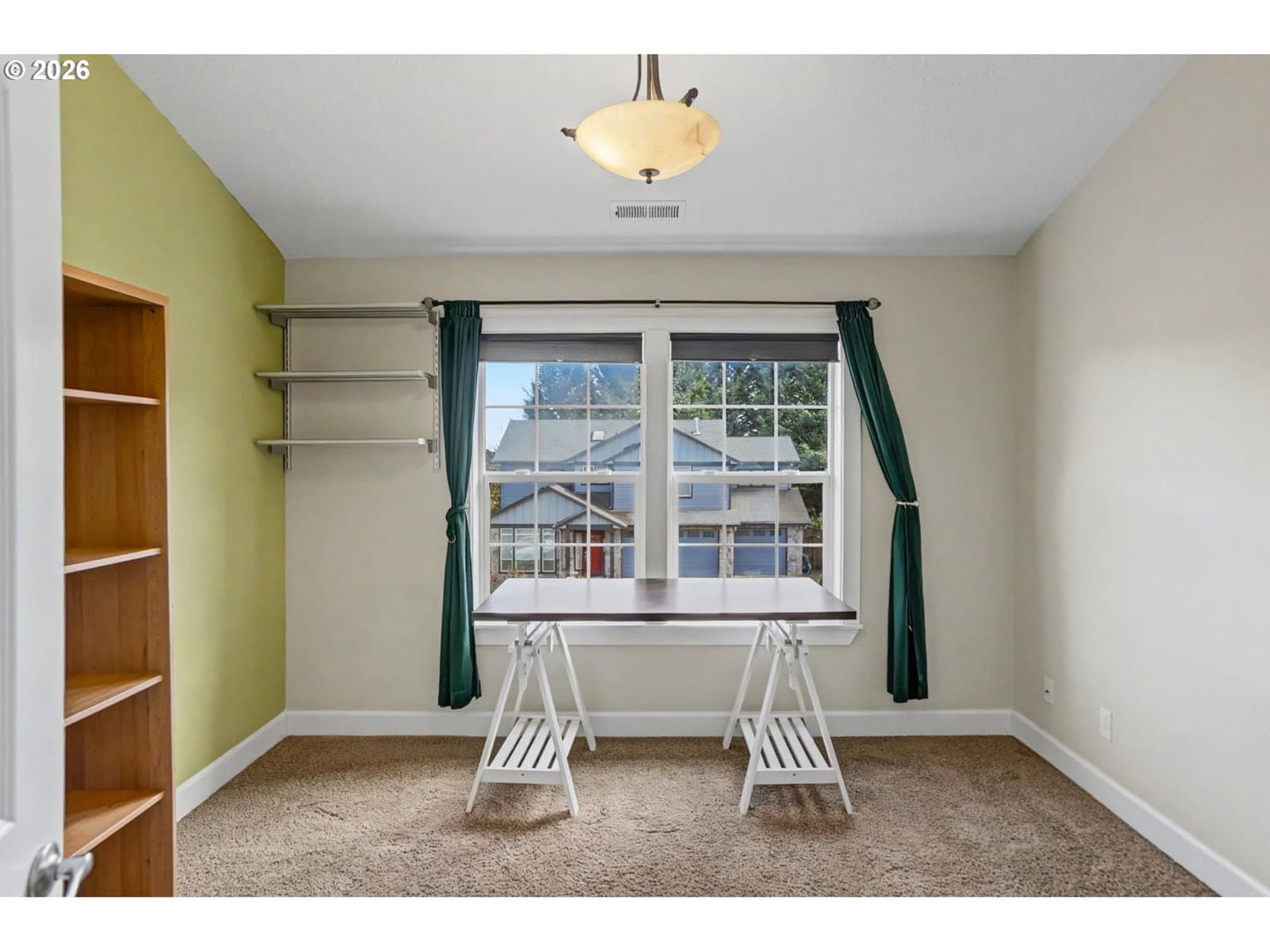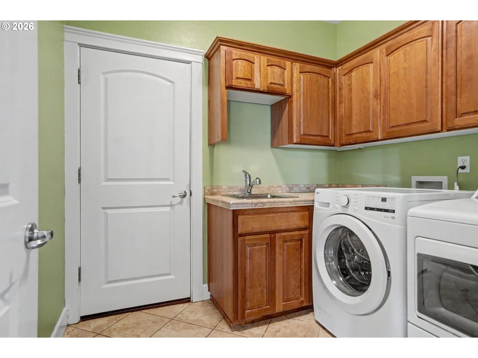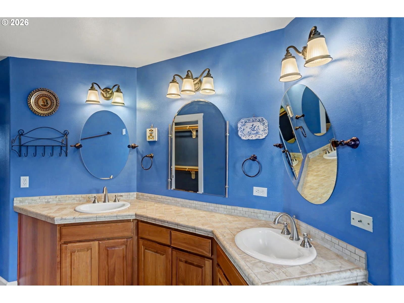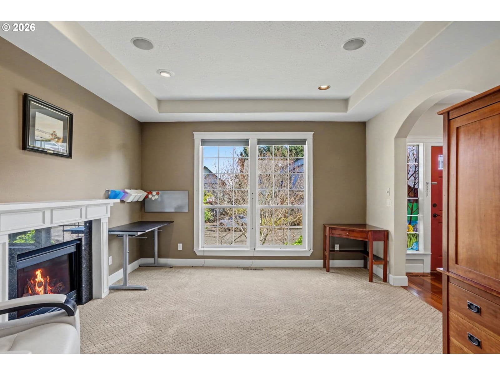 Well-maintained and very energy efficient 4 bed, 2.5 bath home offering 2,627 SF on a quiet cul-de-sac. Flexible layout includes a main floor bedroom, formal living & dining rooms, and both living and family rooms, each with gas fireplaces. Light-filled nook off the gourmet kitchen featuring granite countertops, cherry cabinetry, stainless Frigidaire appliances, and a walk-in pantry. Cherry cabinets continue throughout the bathrooms and laundry room for a cohesive, high-quality finish. Hardwood flooring on the main level. Spacious bonus room provides ideal space for media, office, or playroom. Primary suite features a walk-in closet, jetted tub, walk-in shower, and vaulted sitting/retreat area. Dual heating and cooling systems provide efficient comfort year-round. Central vacuum and central speakers included. The backyard is a true highlight with seven raised garden beds, fruit trees, grapevines, and abundant flowering plants, all within a fully fenced and beautifully landscaped setting. Covered patio, sprinklers, garden shed, and plenty of space to relax or entertain.