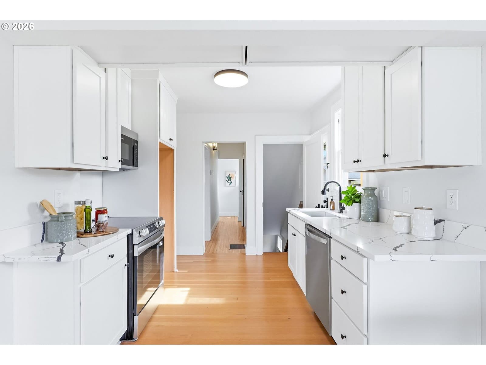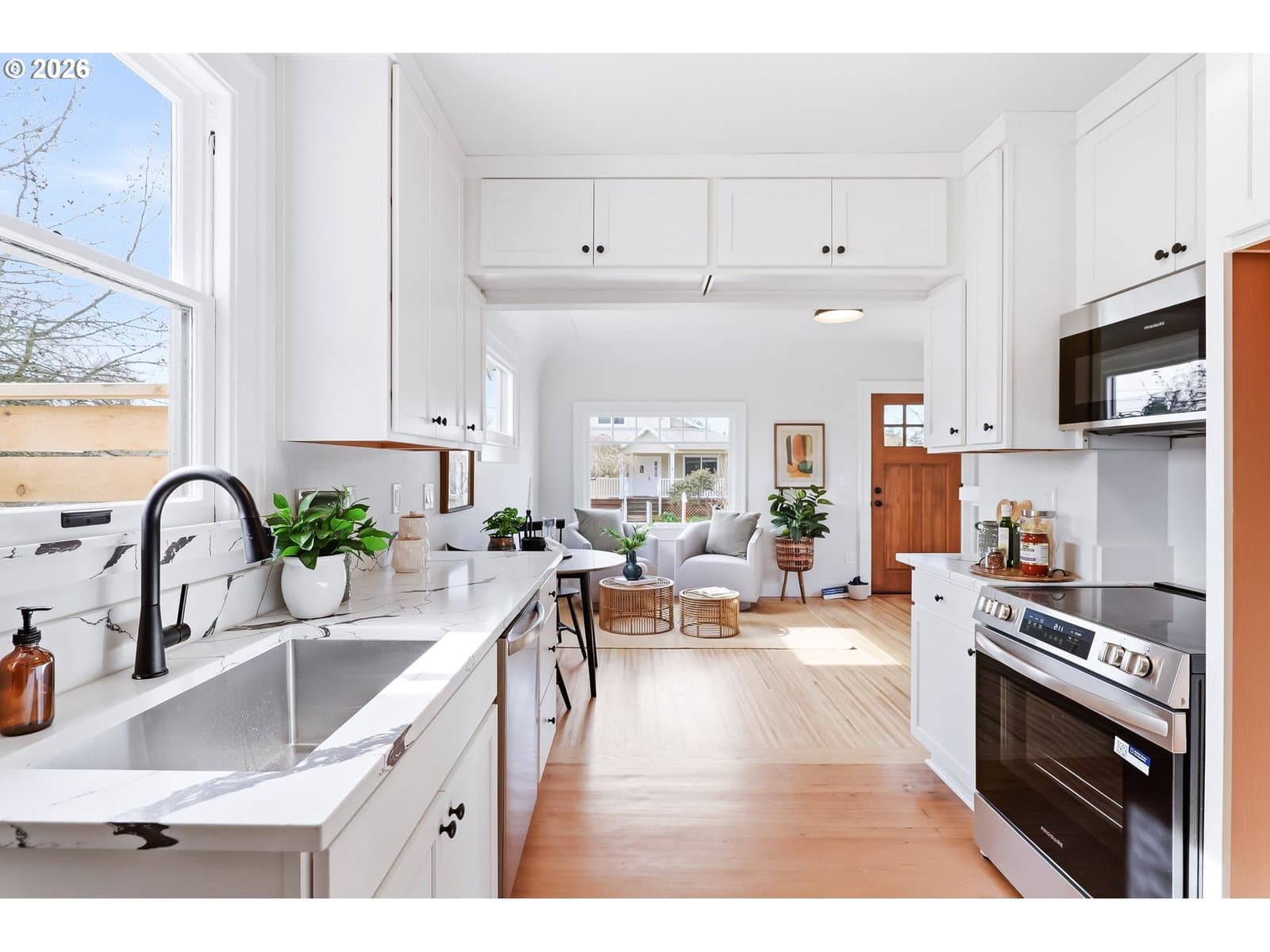 **Turn-Key Treasure in Montavilla** This home was beautifully restored and offers the perfect blend of comfort, elegance and character. With an impressive 1,490 SqFt of living space, this 3 bedroom, 2 bathroom home is ready to welcome you. Featuring an open-concept kitchen, fully finished basement with ADU potential, spacious bedrooms, and modern upgrades throughout, this home is the perfect for both relaxing and entertaining. Don't miss the timeless hardwood floors that add warmth and character throughout. Enjoy cooking in the modern kitchen with quartz countertops, stainless steel appliances, and new cabinetry or step outside to a beautiful deck surrounded by trees – a perfect spot for outdoor entertaining or relaxing. This home is also equipped with a new roof, water heater, furnace, electrical and plumbing upgrades. The desirable Montavilla neighborhood, is just minutes from vibrant coffee shops, restaurants, and shopping. Don’t miss your chance to make this dream home yours! [Home Energy Score = 1. HES Report at https://rpt.greenbuildingregistry.com/hes/OR10235120]