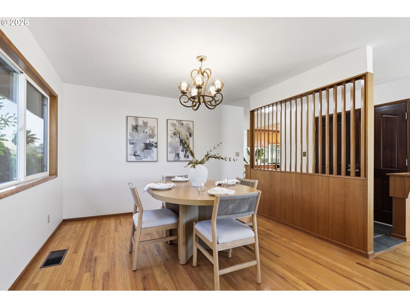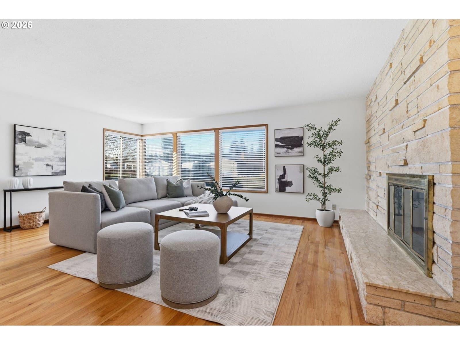 Welcome to this beautifully maintained, single-level gem in a prime Hillsboro location! Upon entry you’re welcomed by mid-century modern details, including a wood room divider and tile entry flooring, setting the stage for the properties enduring charm. The home offers two separate living areas—perfect for gatherings or relaxing by the stone-surround fireplace while natural light pours in through abundant windows. Just off the family room, a cozy nook with a built-in desk and shelving creates the ideal space for a home office, study area, or hobby room. The kitchen features well-maintained cabinetry, quartz countertops, a gas range, and a window overlooking the spacious front yard. A generously sized utility room adds convenience with a sink, folding table, and plentiful pantry storage. Among the four bedrooms is the primary suite, complete with a beautifully remodeled bathroom showcasing a sliding barn door, walk-in tile shower, and expansive new vanity. Set on over a third of an acre—a rare find—this property offers mature landscaping and endless potential for gardening, entertaining, or simply enjoying the outdoors. Just off the patio, a multi-purpose bonus room provides an ideal setting for a studio, workshop, or extra space for storing outdoor gear and hobby supplies. Additional highlights include hardwood floors, a tile roof, NEW furnace w/10 year transferable warranty, NEW interior paint, and loads of original 1960’s charm. Located in an established neighborhood with quick access to downtown Hillsboro’s growing selection of shops, restaurants, breweries, food carts, Hare Field, and local farmers markets. Exceptional location offering easy access to city amenities, all situated on a generous lot! Adjacent lot also available for purchase [Home Energy Score = 4. HES Report at https://rpt.greenbuildingregistry.com/hes/OR10244833]