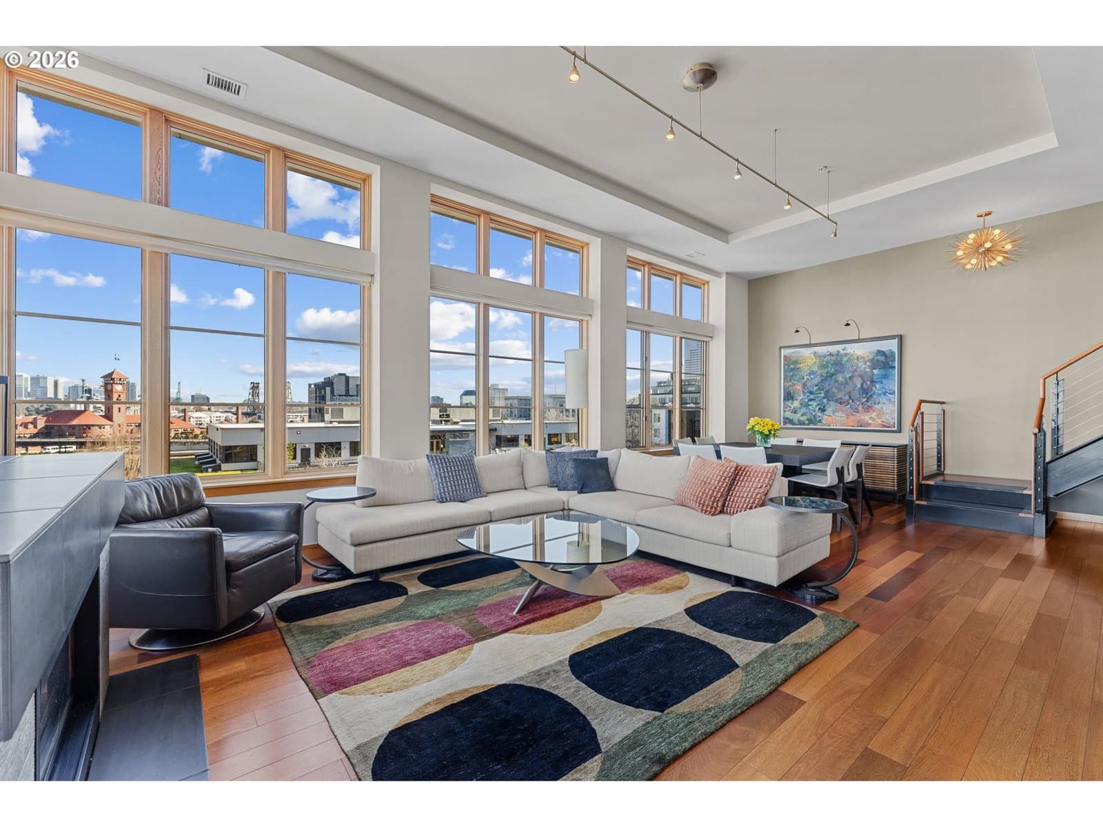 Experience elevated Pearl District living in The Tanner Penthouse, a rare northeast corner residence overlooking Jamison Square. This sophisticated 2-bedroom, 2.5-bath home offers 2,154 square feet of refined urban luxury with expansive windows framing park, city and mountain views. Featuring two large balconies—one on each level—this is a rare and luxurious amenity in the Pearl District, offering exceptional outdoor living seldom found in condominium residences.Designed for both comfort and entertaining, the open-concept main level features generous living and dining spaces filled with natural light. A large private balcony extends from the main living area—perfect for morning coffee or evening wine above the square.Upstairs, retreat to a spectacular rooftop terrace offering front-row views of Jamison Square and the surrounding skyline—an ideal setting for outdoor dining, entertaining, or relaxing under the stars. With expansive outdoor spaces on both floors, this penthouse offers seamless indoor-outdoor living and multiple vantage points to enjoy the cityscape.Located in Portland’s vibrant Pearl District, this home places you in the heart of one of the city’s most sought-after neighborhoods. Known for its blend of historic warehouse architecture and modern luxury living, the Pearl offers award-winning dining, boutique shopping, art galleries, parks, and streetcar access just outside your door. From farmers markets to First Thursday art walks, the neighborhood delivers an unmatched urban lifestyle with a strong sense of community.With two spacious bedroom suites, 2.5 baths, and an unbeatable location in the heart of the Pearl District, The Tanner Penthouse combines privacy, elegance, and vibrant city living in one exceptional offering.