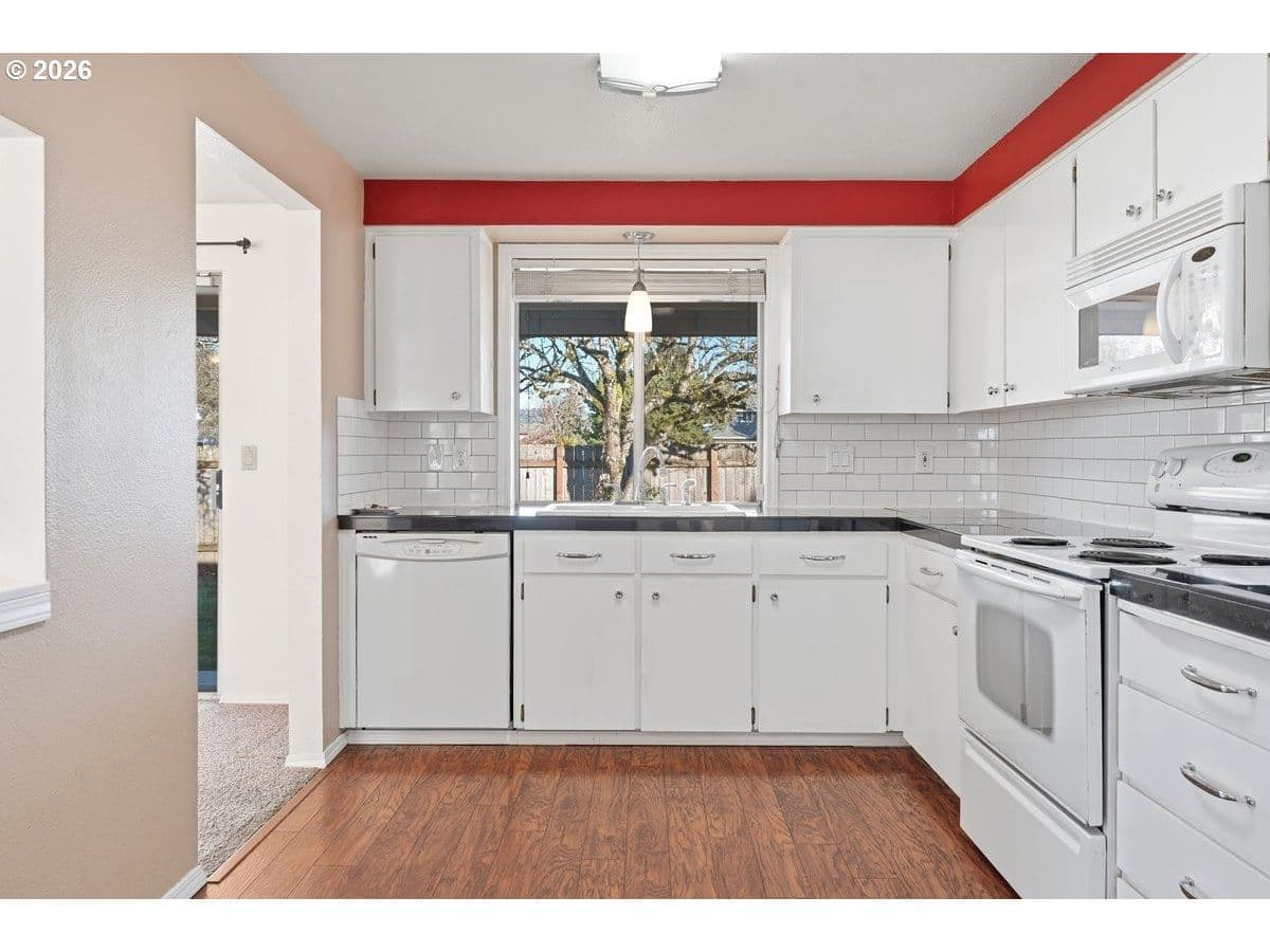 Offer Received. NEW CARPETS 3/31/26! Set in the heart of Bethany — this beautifully maintained single-level home delivers the perfect balance of location, livability, & long-term value. Backing to a peaceful greenbelt & park space, the home offers a rare sense of privacy & calm while still being minutes from everything today’s buyers prioritize. Inside, the layout is efficient, open, and filled with natural light, with generously sized rooms designed for everyday comfort & easy entertaining. The living room is warm & inviting, anchored by a gas fireplace that was professionally rebuilt in 2021, creating a cozy focal point for evenings at home. Built-in shelving adds both charm & functionality, while crown molding, painted woodwork, and granite kitchen countertops elevate the overall feel without feeling overdone. Two sliding doors open to dual backyard patios, extending the living space outdoors—ideal for summer dinners, morning coffee, or weekend gatherings. What truly sets this home apart is the level of care and major system upgrades already completed — an increasingly important factor for today’s buyers. A new roof installed in 2021 (with tranferable warranty), a brand-new furnace installed November 3, 2025 mean buyers can move in with confidence, not a to-do list. Situated on a landscaped corner lot with cedar siding & a fully fenced yard, the property offers both curb appeal & practical outdoor space. The single-level design provides long-term flexibility—ideal for anyone looking for comfort without stairs. The location is hard to beat: close to highly regarded schools, parks, shopping & dining. Enjoy a short commute to Nike & Intel, easy access to downtown Portland, & the added bonus of being just an hour from the Oregon Coast. Well-loved, thoughtfully maintained, & strategically located —this is the kind of home today's buyers are waiting for.