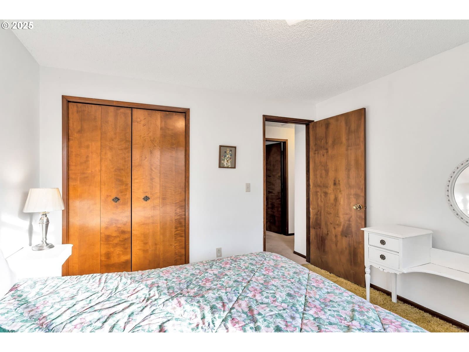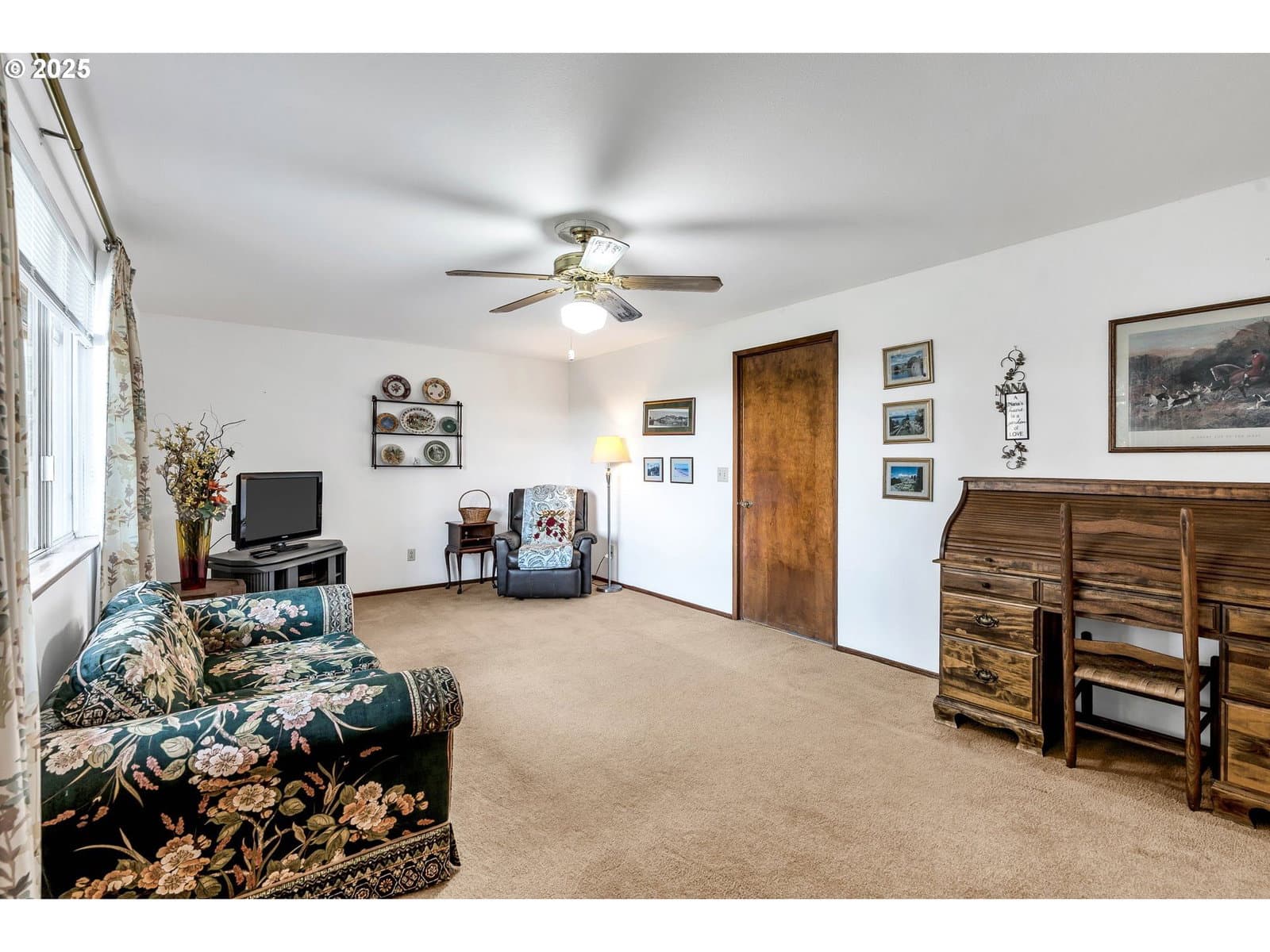 Welcome home to this inviting one-level charmer featuring 3 bedrooms and 2 bathrooms. The bright living room offers a cozy fireplace and a large picture window that fills the space with sunshine. Enjoy family meals in the formal dining room or relax in the spacious family room with a ceiling fan and another oversized window. Wall-to-wall carpet adds comfort throughout, except in the kitchen and baths. The primary suite includes a private bath with a walk-in shower. Step outside to a covered patio and a huge backyard with beautiful mature trees that open to a peaceful park—perfect for play, pets, and gatherings. Roof replaced in 2017 for added peace of mind. [Home Energy Score = 4. HES Report at https://rpt.greenbuildingregistry.com/hes/OR10242658]