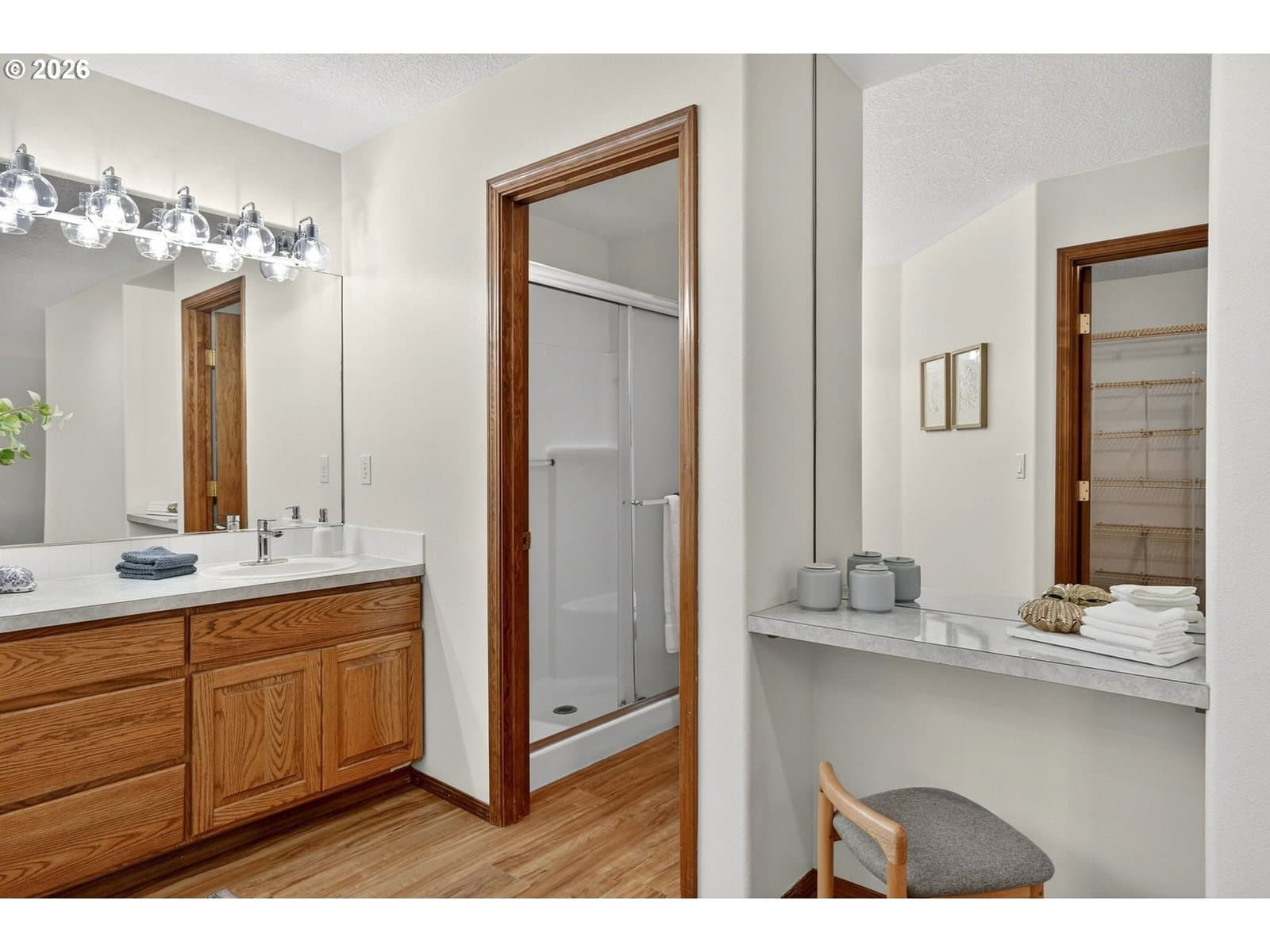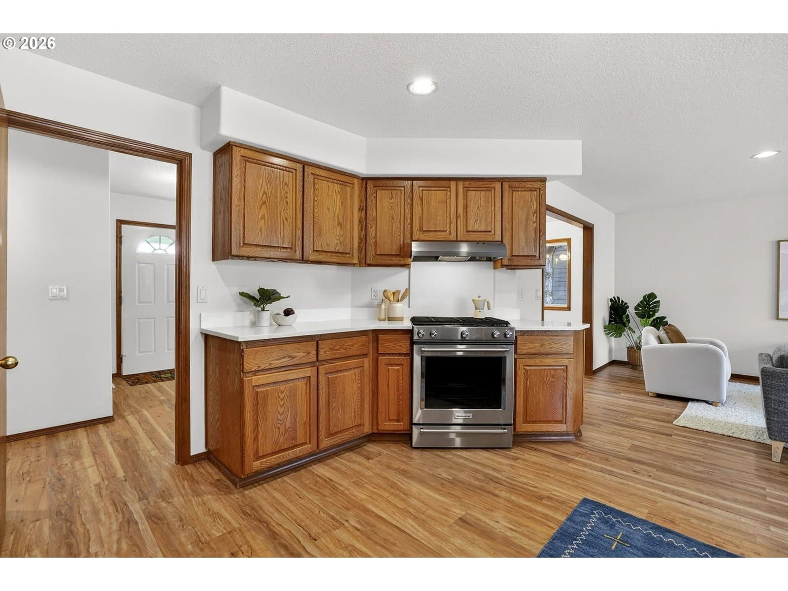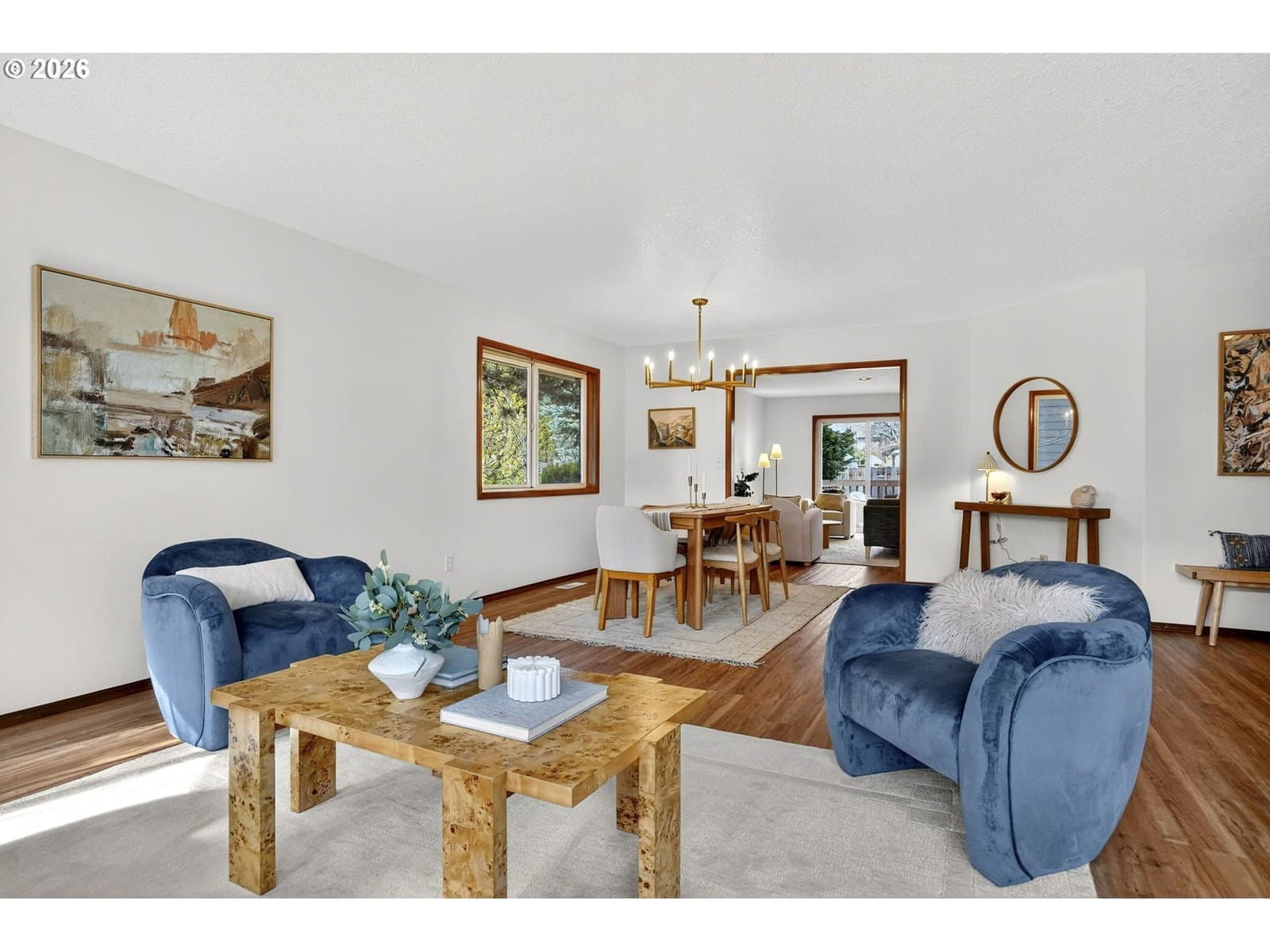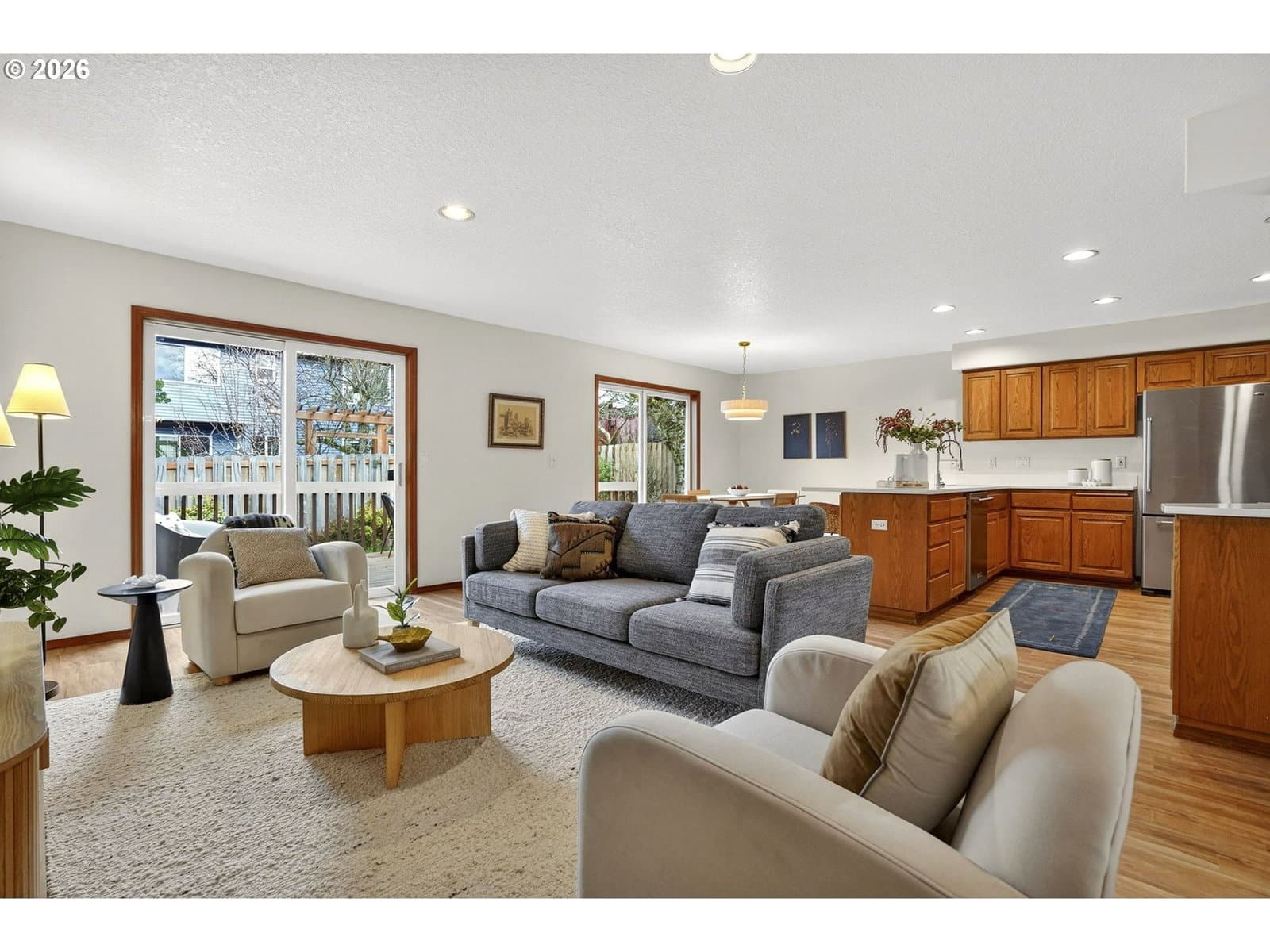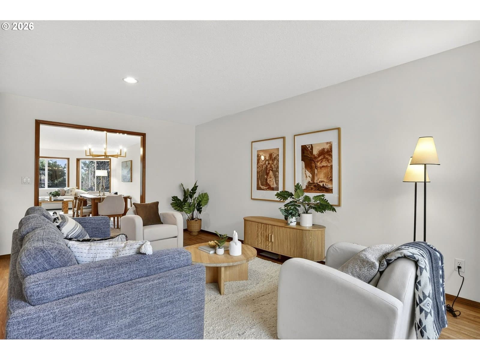Rare ONE-LEVEL living at its finest! This beautifully designed home offers effortless flow, new flooring, expansive windows, and an abundance of natural light throughout. Enjoy generous open-concept living spaces and a specious kitchen featuring a gas stove, quartz countertops, undermount sink, new disposal and stainless steel appliances. The bedrooms provide comfort for all, while the sizeable primary suite boasts dual sinks and a walk-in closet. A dedicated laundry room adds convenience (washer and dryer included), and the new roof (2023) offers peace of mind. Step outside to a serene deck, ideal for sipping your morning coffee. Located just minutes from Clackamas Town Center, the MAX Green Line light rail, Mount Talbert Nature Park, Kaiser Permanente Sunnyside Medical Center, and Costco Wholesale, this home perfectly blends style, comfort, and convenience. Don’t miss your opportunity! Open Sunday, March 1st, from 12pm–2pm!