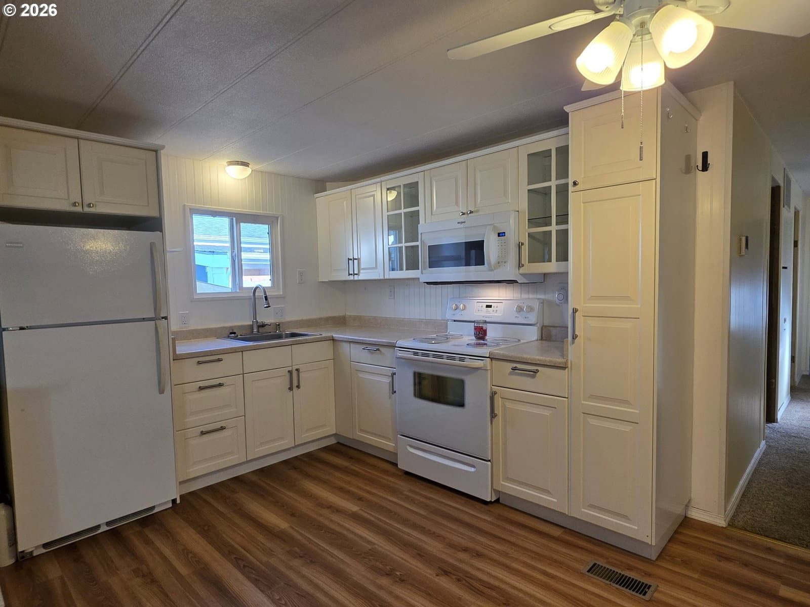 Beautifully upgraded 2-bedroom home with a spacious layout and thoughtful features throughout. The large, expanded living room offers an open, airy feel and lives much larger than expected. The kitchen is beautifully updated and fully equipped with all appliances, including convenient pull-out drawers for easy storage. A bright, enclosed cedar-lined front porch provides a cozy space to relax year-round. The home features newer vinyl windows and an updated, oversized bathroom with a newer tub surround. A stackable washer and dryer add everyday convenience. Outside, enjoy a fully fenced yard with a charming she shed, plus an additional garden shed for storage. A small vegetable garden bed and a perennial garden promise seasonal beauty, while the patio is perfect for warm summer days. Located in a fabulous community offering activities, a clubhouse, and a seasonal pool, this home combines comfort, functionality, and an inviting lifestyle.