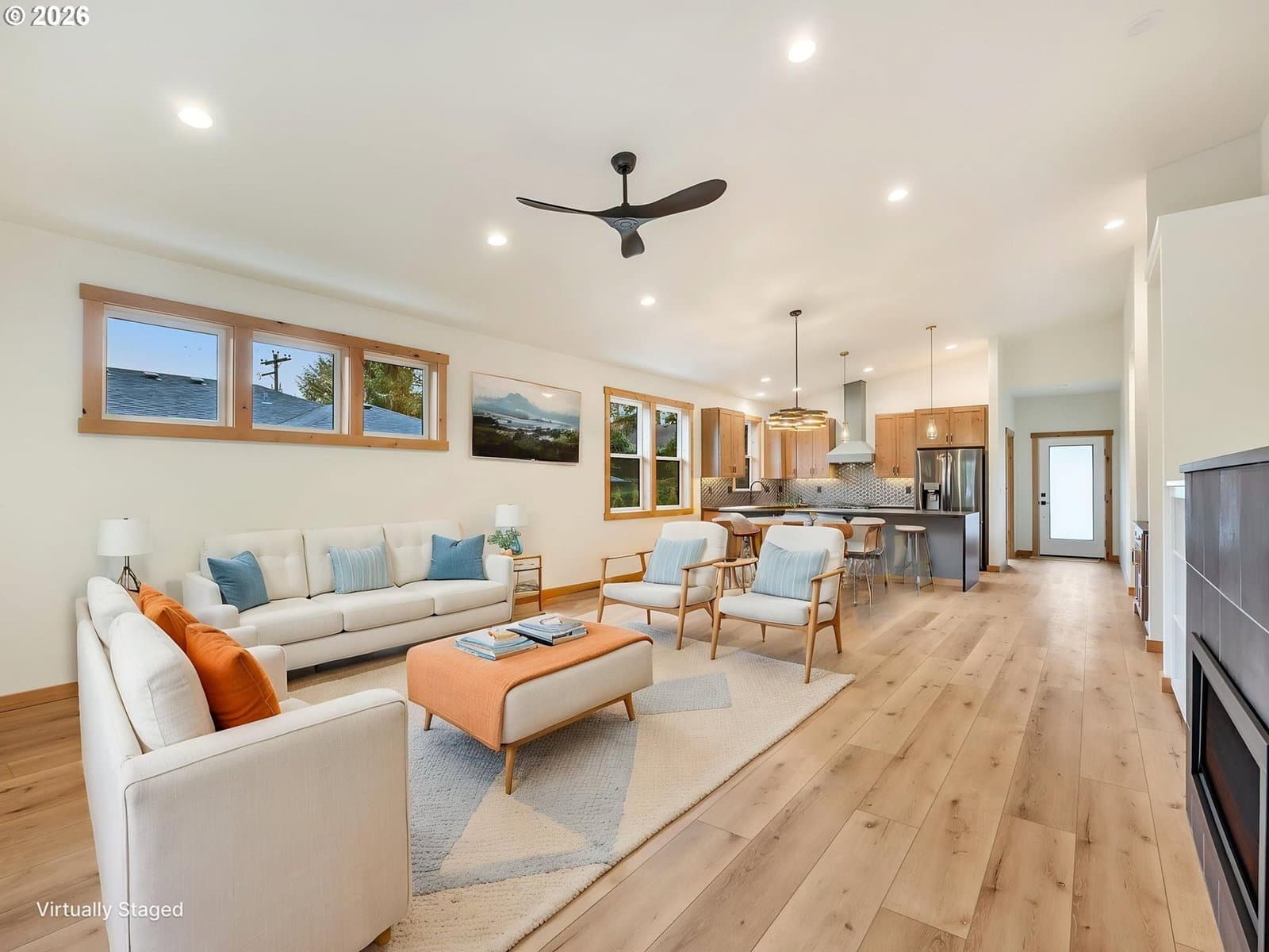 This brand new 4-bed, 2-bath home is ready to host your family and friends. With modern finishes and ample space to entertain, this property offers it all. The kitchen features an oversized island, quartz counters, and LG appliances. Gather around the propane fireplace in the living room then step out to the covered patio to enjoy the fresh air. Between the stream out front and the fire pit out back, nature invites you to relax outdoors. The side of the home has extra parking space for cars and boats, plus wiring for a hot tub and EV. With energy efficiency and comfort in mind, the heat pump provides year-round heating and cooling. Want to see the ocean? It’s a five minute stroll to watch the sunset with your toes in the sand. The only thing this property doesn’t have yet is a family there enjoying it. Now is your chance to make memories at the beach.