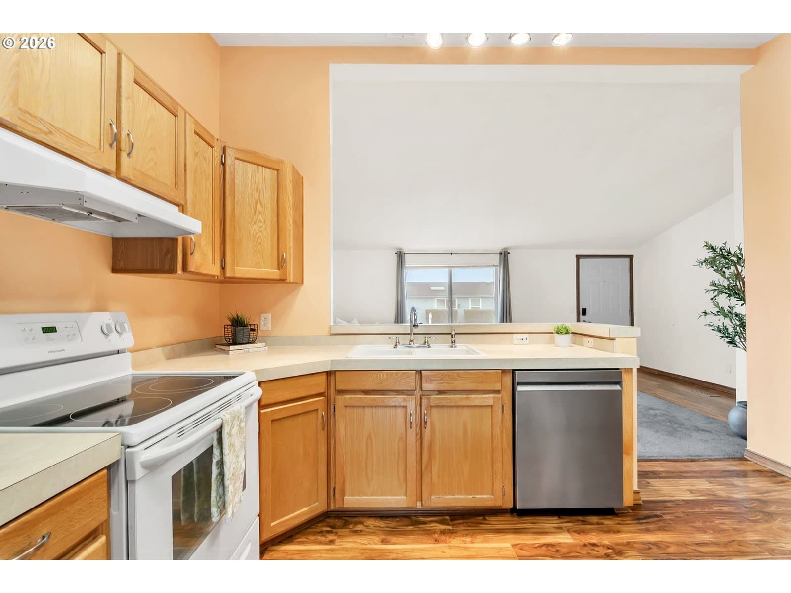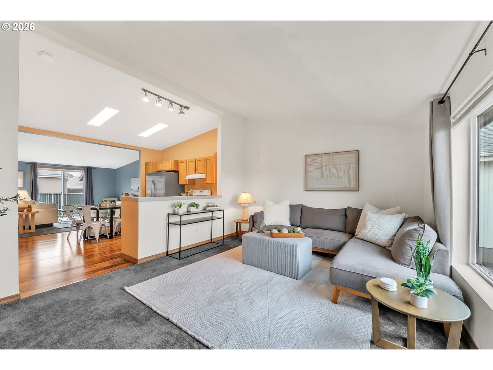 Light-filled, conveniently updated & truly move-in ready! Tucked away in a private neighborhood, yet near shopping, schools, healthcare, parks & more! Recent updates that provide peace of mind: roof (2021), furnace & heat pump (2022), carpet (2023), water heater (2018) & more! Step inside to an inviting open floor-plan w/ soaring vaulted ceilings that create a bright, airy atmosphere. The kitchen is the heart of the home, featuring newer appliances, abundant cabinet & counter space- seamless views into the spacious living room & secondary family room, ideal for both everyday living & entertaining. Primary suite is a retreat that boasts an ensuite bathroom w/ walk-in shower & a generous closet. Additional guest bedrooms are well-sized. Outside, unwind on the patio & enjoy your backyard- especially lovely when the mature roses are in bloom! The attached two-car garage offers storage, & all kitchen appliances plus the washer/dryer are included. If you’re searching for an affordable, updated home that’s ready for its next owner, this is a GREAT value! Don’t miss your chance to call this place "home!"