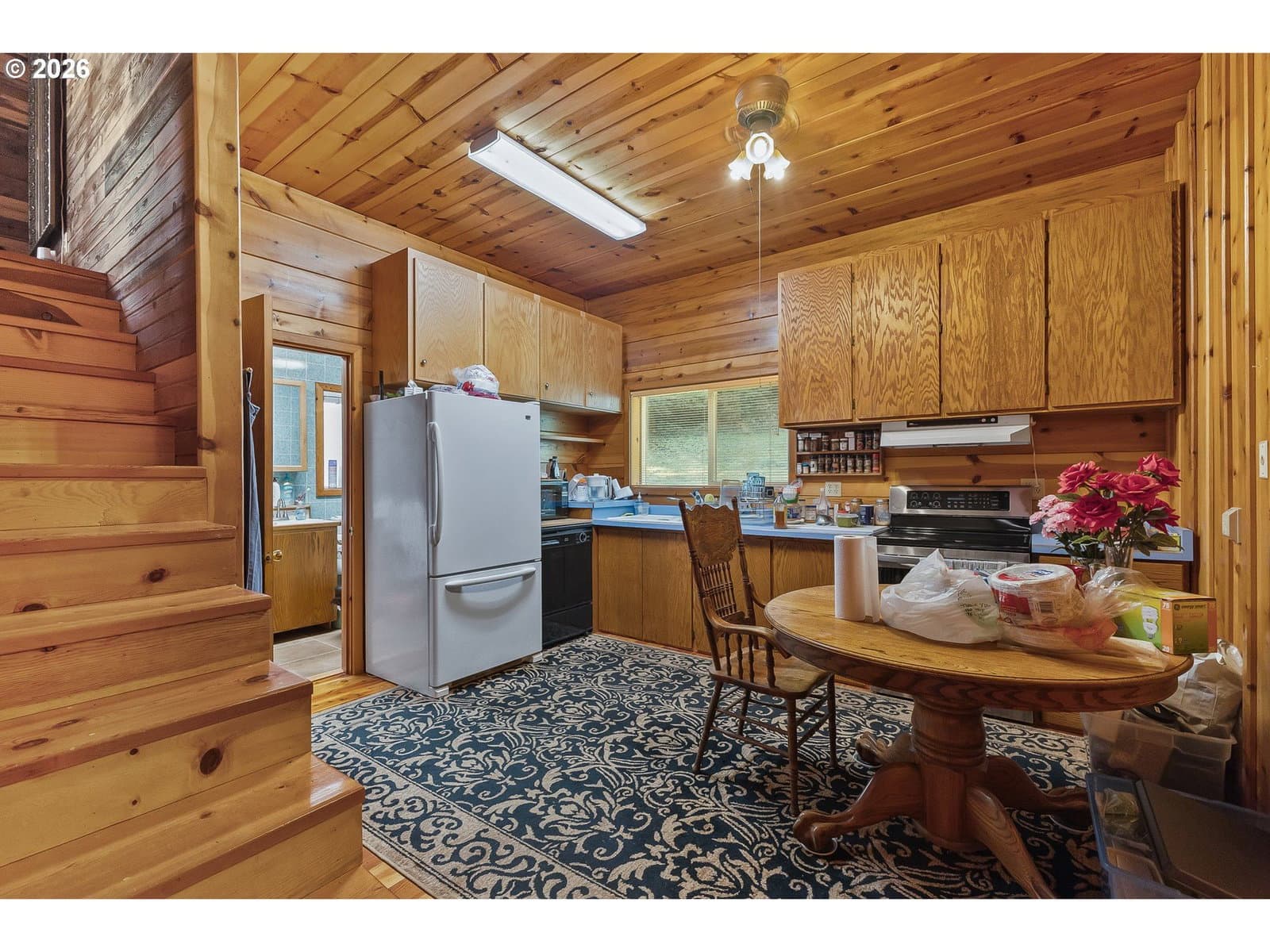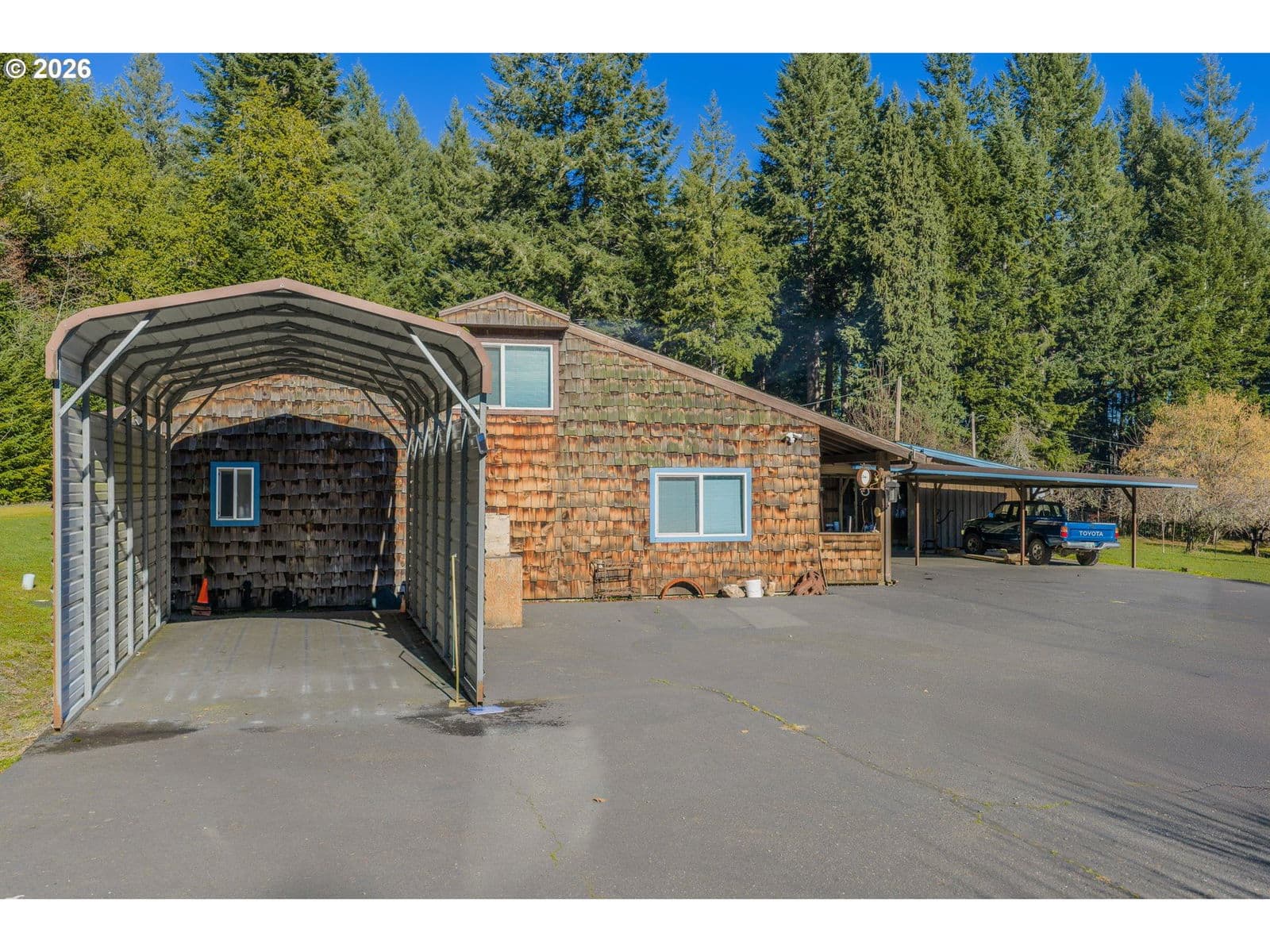 Truly one-of-a-kind estate set on 4.07 acres. This property blends craftsmanship, functionality, and natural beauty, offering a rare opportunity for a peaceful rural lifestyle. The 3 bedroom/1 bathroom home offers approximately 1,200 sq.ft. of comfortable living space. The property features an impressive collection of thoughtfully designed outbuildings and amenities. At the heart of the estate is a 50 x 100 custom shop with multiple dedicated workspaces, custom wood detailing, abundant natural light from skylights, and a large roll-up door. The shop includes two bathrooms, a kitchen area, private office, and a trophy display room. Upstairs offers 840 square feet of finished, carpeted storage, and a secure two-story vault room. An air compressor shed supplies integrated air lines throughout the shop. A 30 x 40 woodshop building complements the main shop and includes a guest bedroom, bathroom, loft space, and private exercise room—ideal for guests, creative pursuits, or expanded work-from-home options. Additional improvements include a large tractor shed, bike storage shed, garden shed, and propane tank shed. The grounds unfold into a park-like retreat with tranquil woodlands, a custom firepit area, and space to relax while enjoying sunsets and nature. Established fruit orchards include apples, pears, cherries, and plums. Four fully serviced RV sites with water and power add versatility for guests. This property offers an ideal setup for a home-based business, hobby operation, or multi-use estate, while also providing room to grow, explore, and enjoy a quieter lifestyle away from urban congestion. Located in the charming community of Powers, known for its forests, rivers, and outdoor recreation, this is a rare opportunity to enjoy privacy, space, and flexibility in a truly special setting.