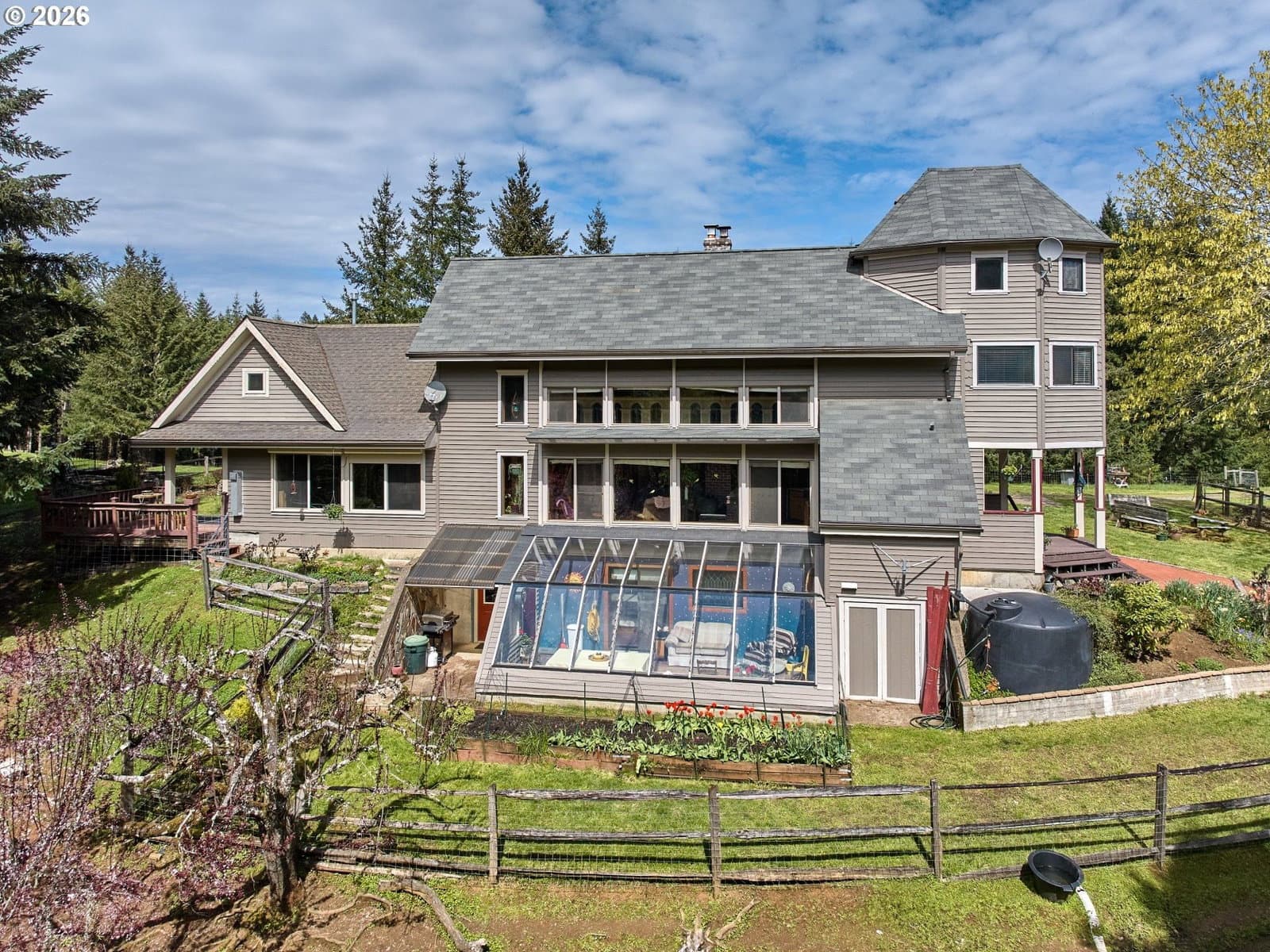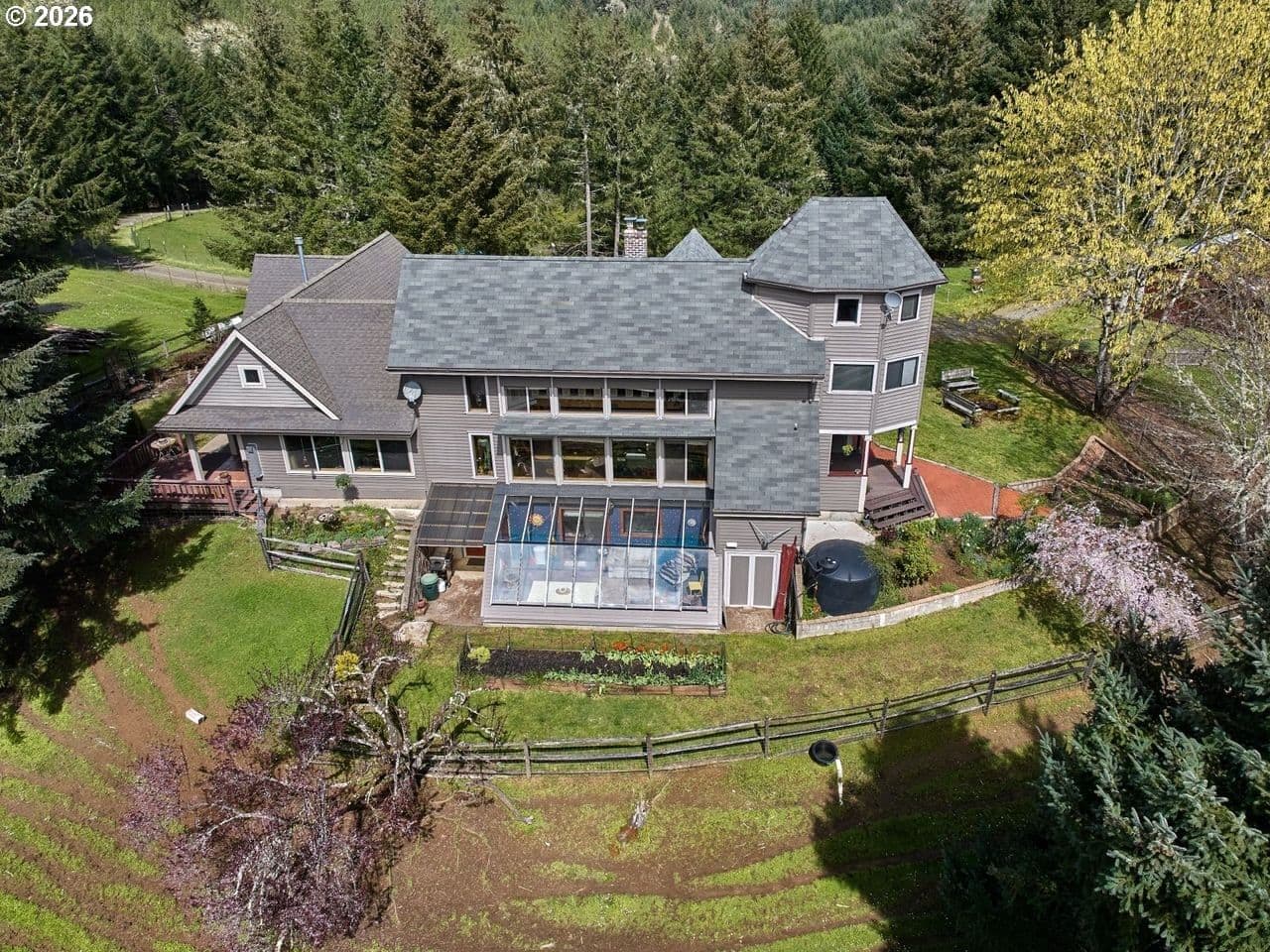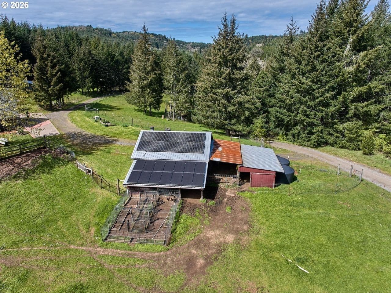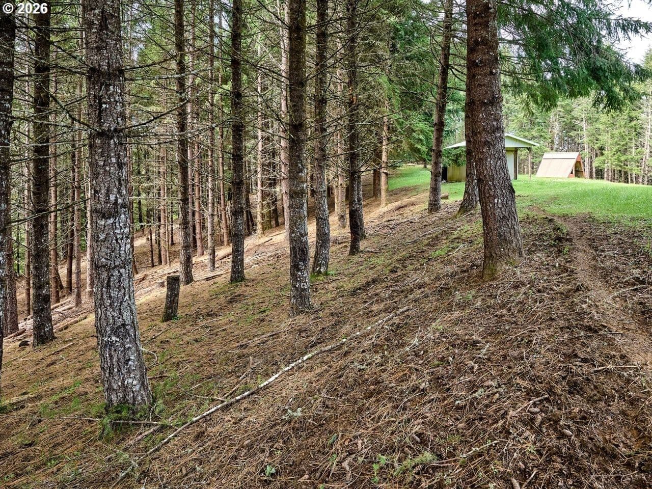 This distinctive property, in the foothills of the Oregon Coast Range & the onset of the Nestucca River National Back Country Byway, brims with rural wine country charm. Set back from the road, a tree-canopied driveway opens to a private 25 acre country estate where forest, curated grounds & a beautiful home live in harmony with the landscape. 5 acres of open pasture, orchard, gardens & homesite provide space for animals, beekeeping, growing & peaceful Willamette Valley living. 18 acres of healthy, recently thinned 35-yr old Douglas Fir offer beauty, tax benefits & long term value, with an additional 2 acres of mixed vegetation & a seasonal creek. 28 solar panels + passive solar design support energy efficiency, while the home is a warm labor of love with a separate living addition, offering space & flexibility for multi generational living or guests. Inside, expansive windows, rich hardwood, slate, tile & vintage woodwork create bright inviting spaces anchored by wood & propane stoves & baseboard heat. The layout boasts 4 bedrooms, 2.5 baths + bonus rooms, perfect for home offices, studios or craft. The main level provides a full kitchen, while the attached addition's kitchenette & zero barrier shower are ideal for independent living & extended family. The basement contains a 300 square foot bedroom & 240 square foot cool storage room for wine, preserves or root cellar use. An attached greenhouse extends the growing season, while the acreage includes a barn, woodworking shed & coop. Water security supports a self sufficient lifestyle with 2 in ground 4,000 gal. concrete tanks (1 fed by well, 1 by rainwater) + 11 above ground 1,500 gal. tanks for additional rainwater & land stewardship. A 5 minute drive to the first of 50+ wineries & the world’s finest Pinot Noir & dining. Conveniently, just over an hour to Portland & the Oregon Coast. Tour this rare opportunity to enjoy your own forested country estate in the heart of pastoral Yamhill-Carlton AVA wine country! ~18 Ac Forest Deferral, ~5 Ac homesite area w/ pasture & usable area, ~2 Ac mixed brush/species & seasonal creek