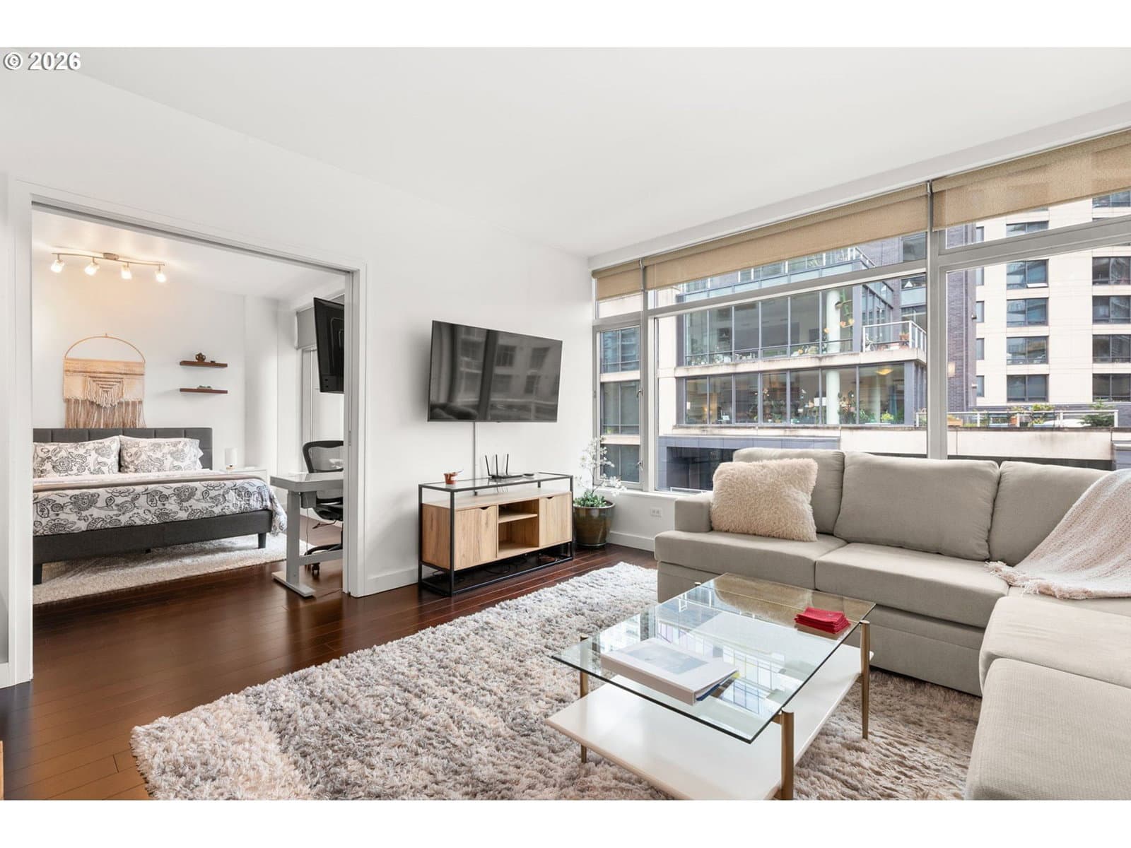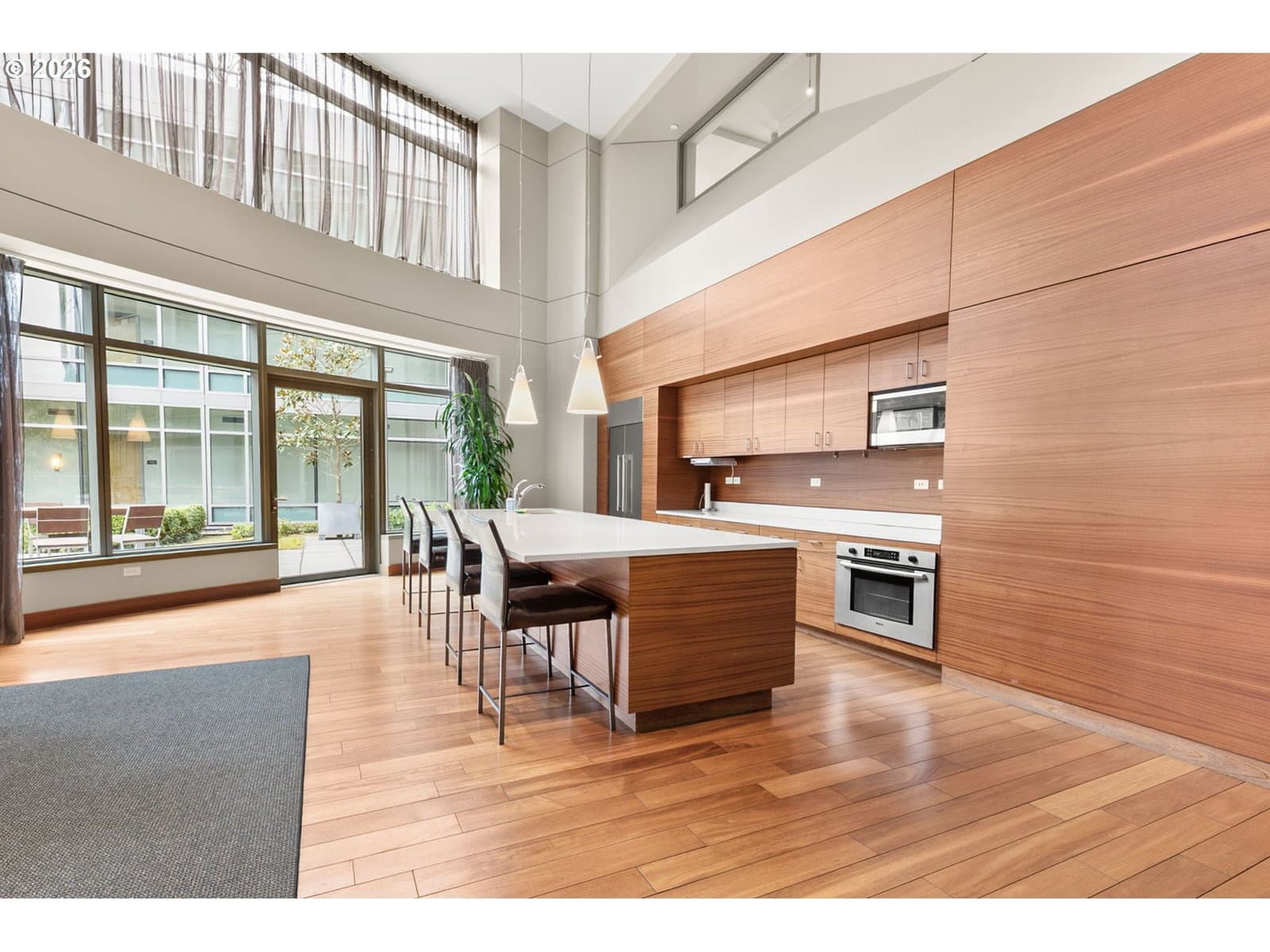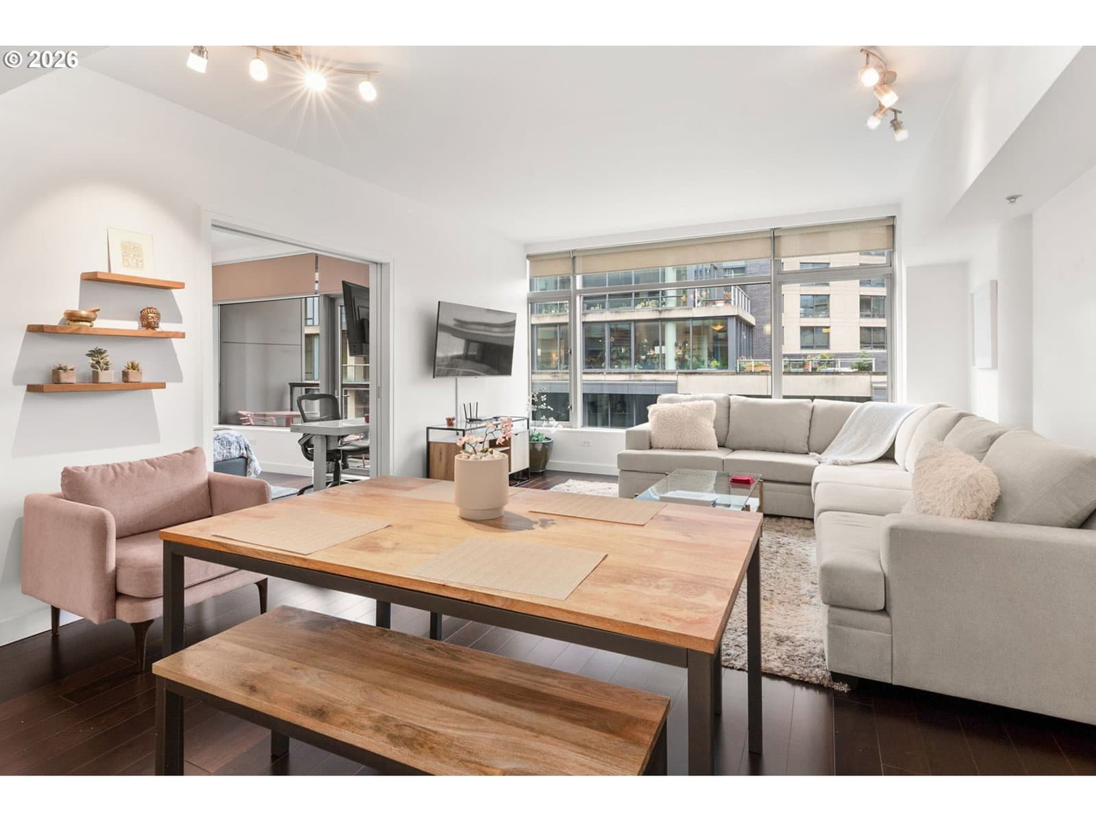 Welcome to this beautifully appointed residence in the heart of Portland’s vibrant South Waterfront. Unit #305 at the John Ross is a true one bedroom floorplan that offers a perfect blend of modern comfort and urban convenience, featuring an open-concept layout with expansive west facing windows that fill the space with natural light. The well-designed kitchen boasts sleek cabinetry, quality appliances, and ample counter space — ideal for both everyday living and entertaining. The spacious living area flows seamlessly to a private balcony, providing a peaceful retreat with serene views. The bedroom flows to a private balcony and features a walk-in closet, while the bathroom is thoughtfully finished with contemporary fixtures. Additional highlights include in-unit laundry, secure building access, and deeded parking. Residents enjoy access to premium amenities and a prime location just steps from the riverfront, walking trails, OHSU, shops, dining, and public transit. Whether you’re seeking a primary residence or a low-maintenance city retreat, this home delivers exceptional lifestyle and value in one of Portland’s most sought-after neighborhoods.