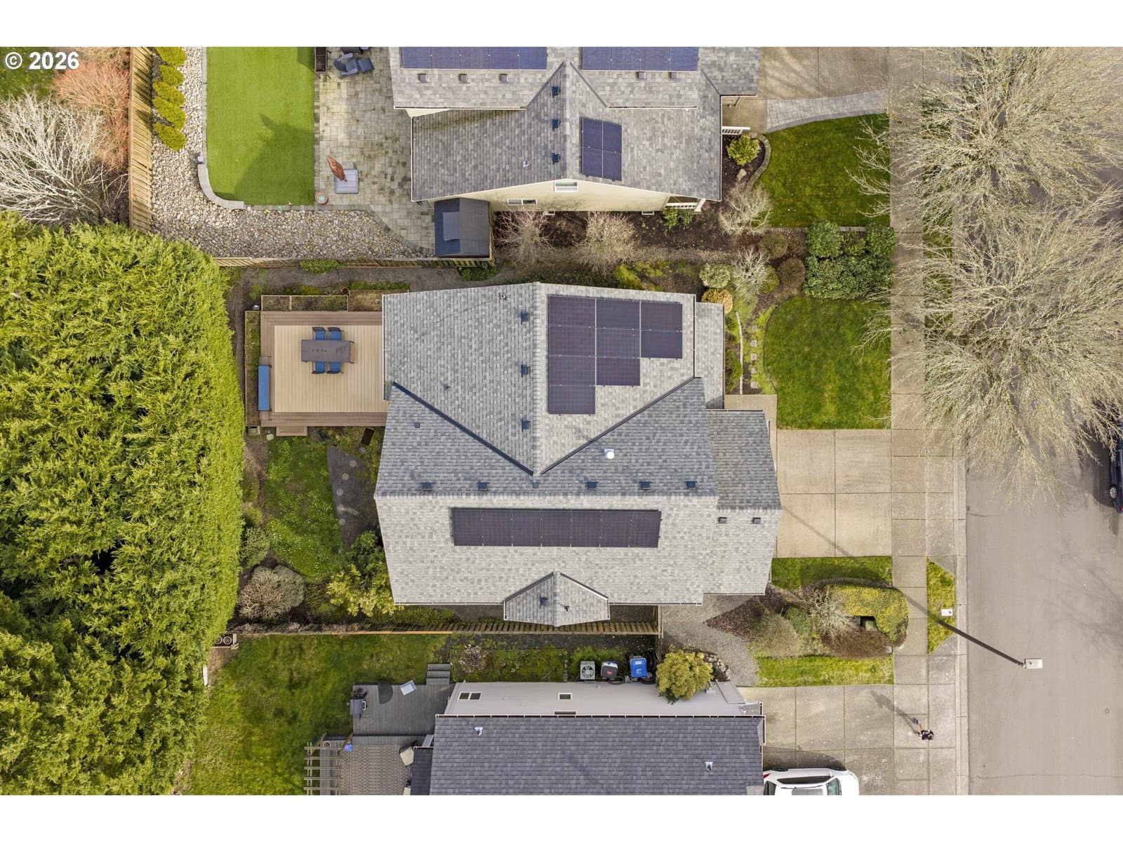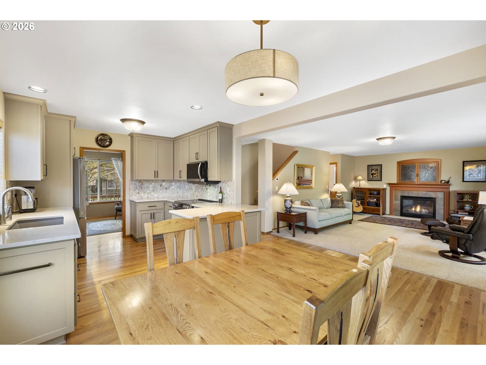 Located in Sherwood, Oregon a community known for its small-town charm, historic downtown, and vibrant farmers market, this well-maintained home offers vaulted spaces, real hardwood floors, and a 3-year-old roof! A covered front porch leads to a vaulted entryway that opens into bright, comfortable living areas. The living room features large windows and a gas fireplace, creating a central gathering space within the home.The updated kitchen includes quartz counters, stainless steel appliances, modern cabinetry, and an easy flow to the dining and living areas. Upper bonus room can easily be a 4th bedroom. Real hardwood floors run through the main level, adding warmth and durability. The vaulted primary suite offers abundant natural light, a private bathroom, and walk-in closet. A spacious great room provides flexible space for a media room, an additional living area, or large gatherings. Major updates include a newer roof (3 years old) and solar panels that are fully paid off (2025 monthly billing $15.92-$31.81). The private backyard features a large deck and mature landscaping, creating an inviting outdoor space for relaxing or entertaining.