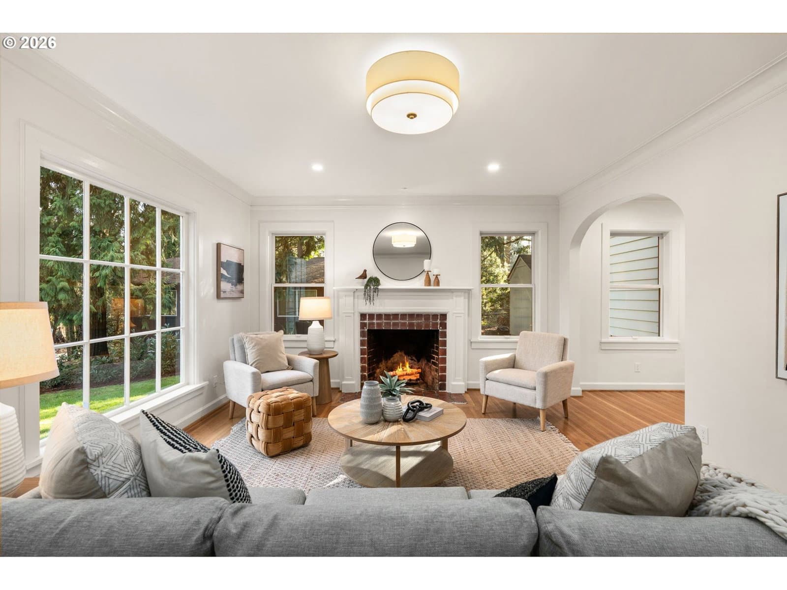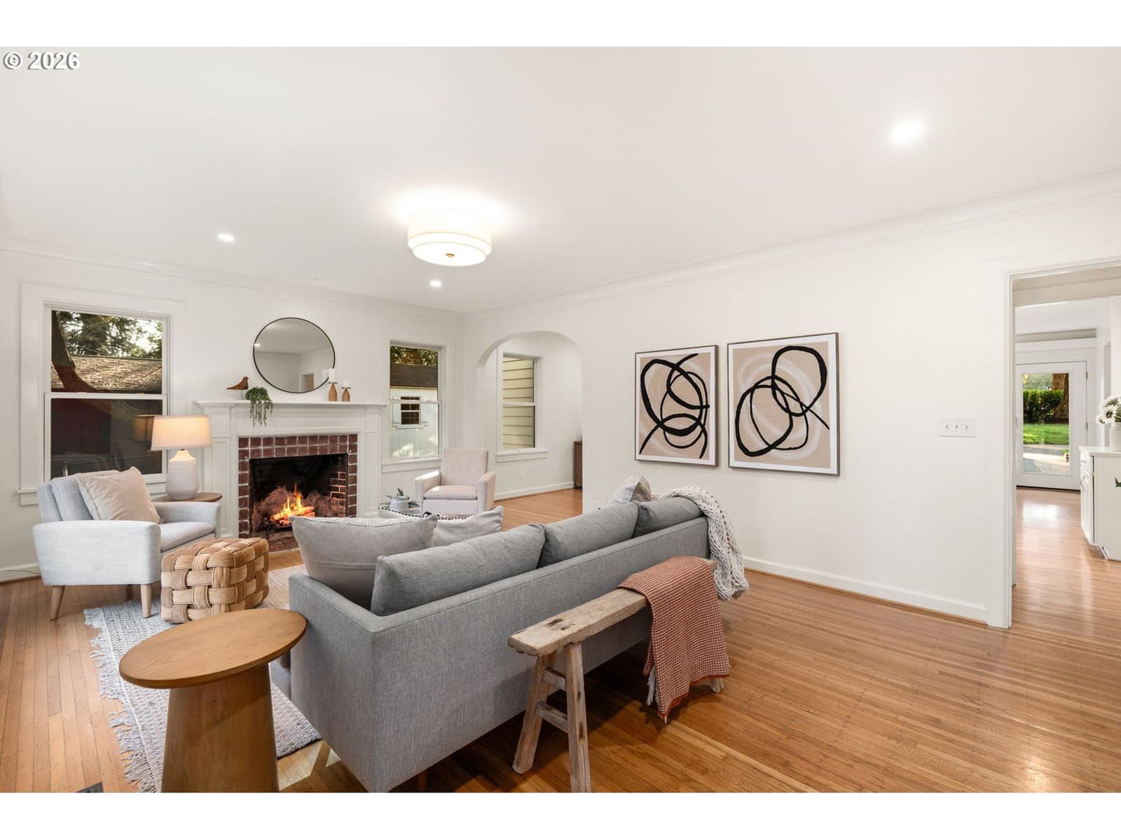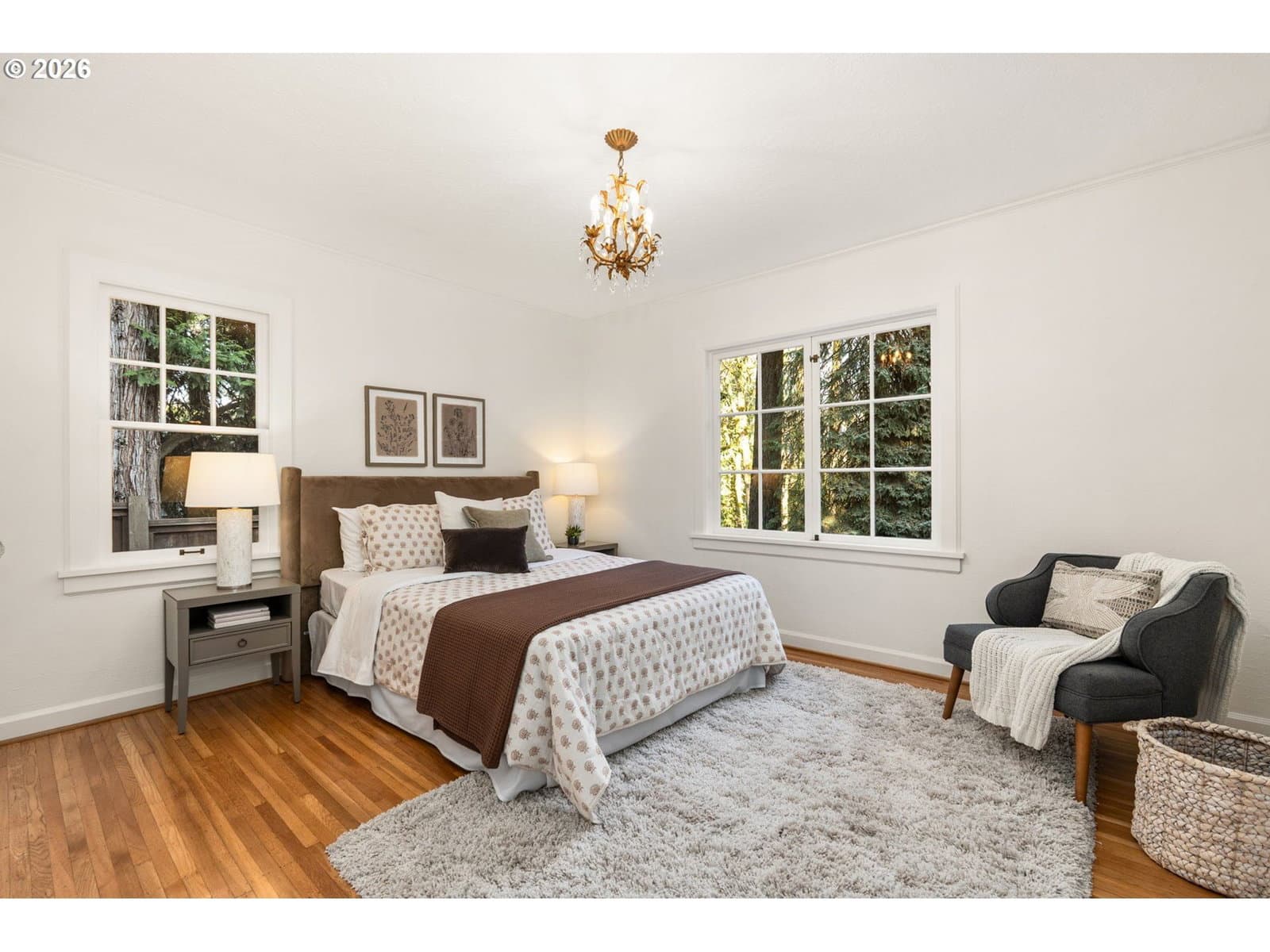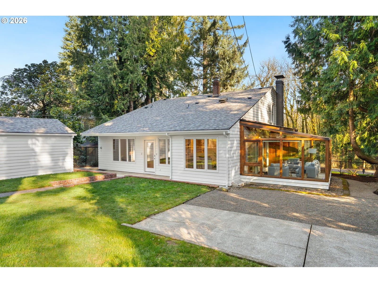 Love at first sight across from nature, wrapped in 1937 charm, and ready for its next chapter. Set on a generous double lot, this refined Saltbox blends classic architecture with modern updates in a serene, park-like setting. The main level features hardwood floors, crown molding, and recessed lighting. A formal living room with a wood-burning fireplace opens through an arched entry to the dining room, where French doors lead to a sunroom with tile floors and wood accents. A main-level bedroom and full bath offer flexible living options. Upstairs, the primary suite includes a remodeled en suite bath with tile finishes, heated floors, and walk-in shower, plus two additional bedrooms and an updated hall bath. The lower level provides bonus space, laundry, and storage. Fully fenced yard with patio, gated driveway, and tool shed. With a brand new roof and newer high-efficiency systems, this home blends enduring character with elevated comfort and timeless appeal… enter carefully, you might catch feelings! [Home Energy Score = 2. HES Report at https://rpt.greenbuildingregistry.com/hes/OR10227795]