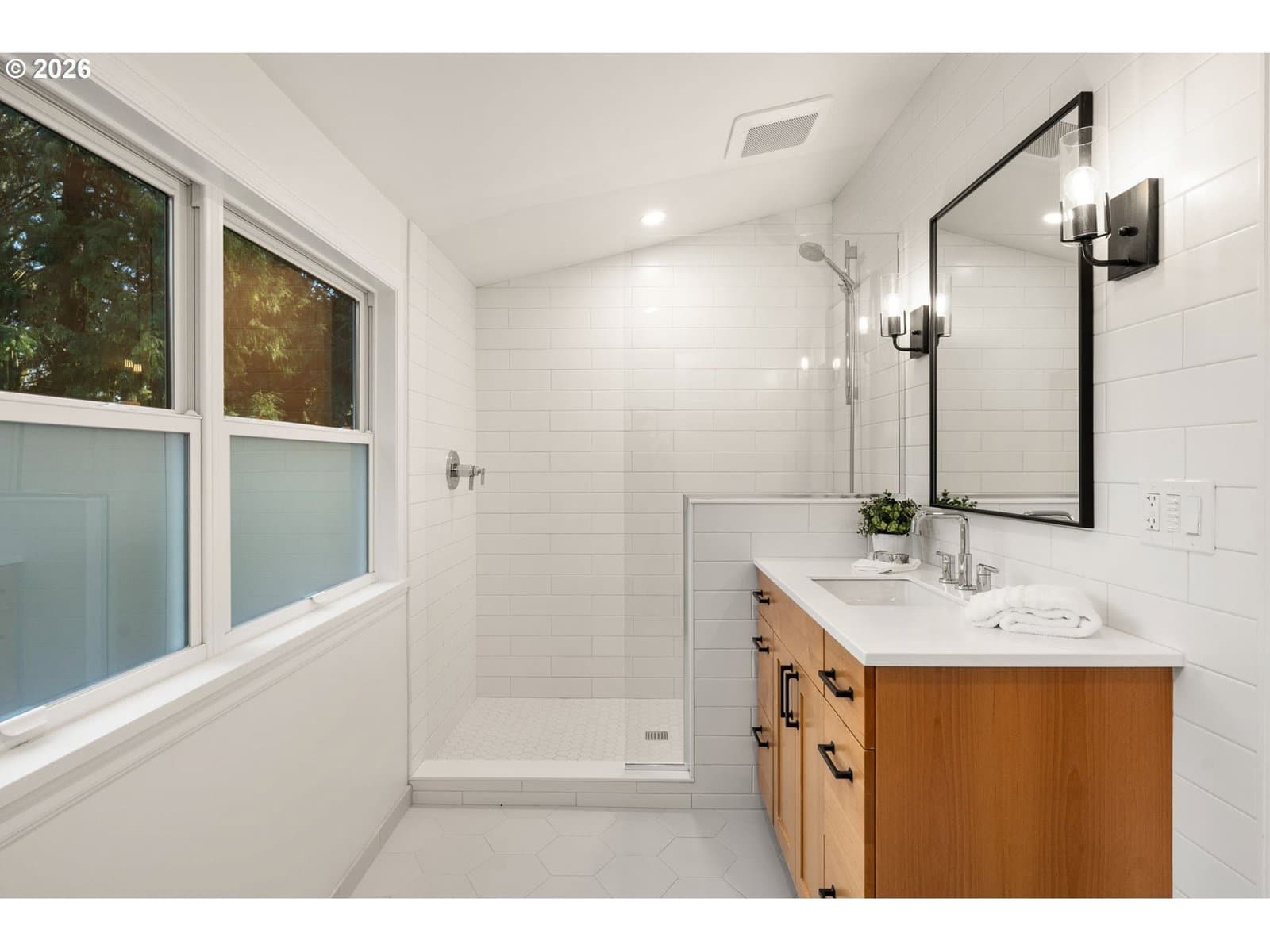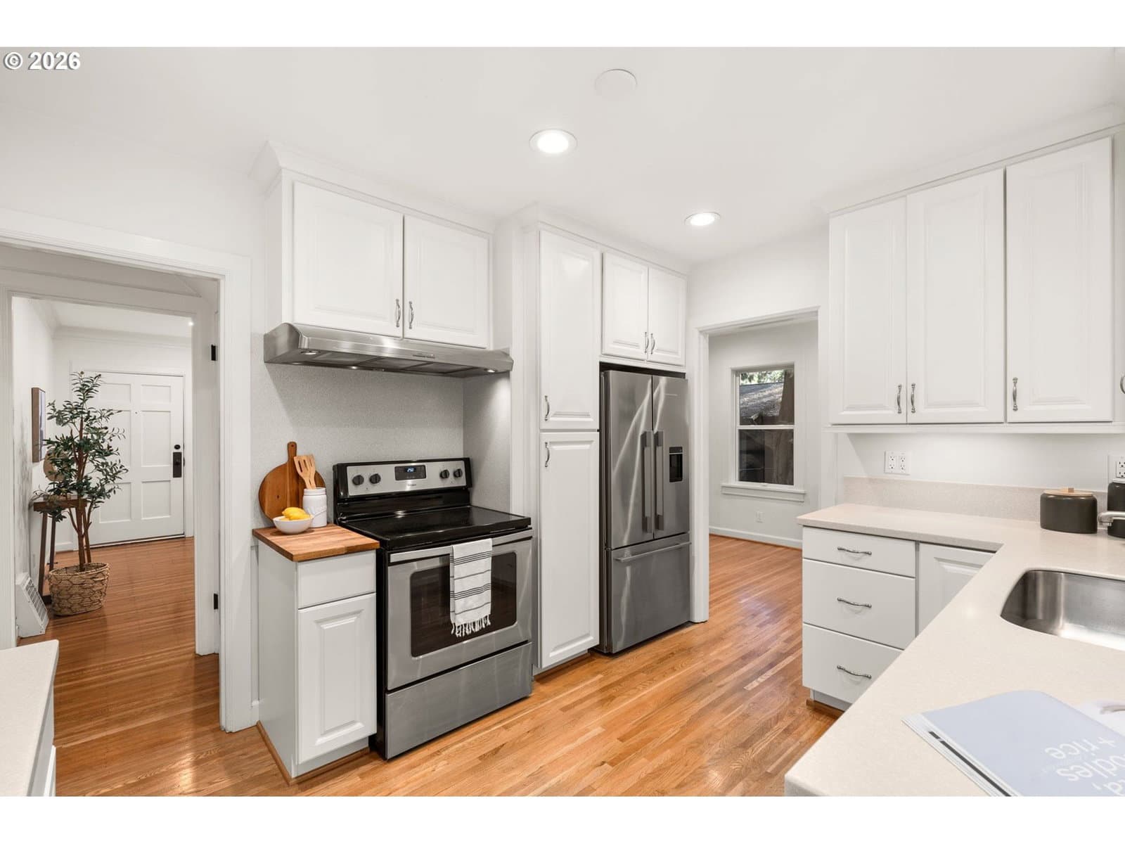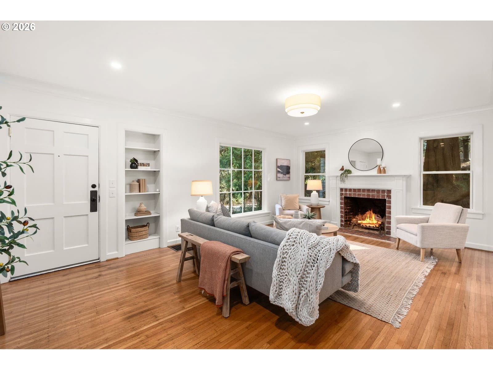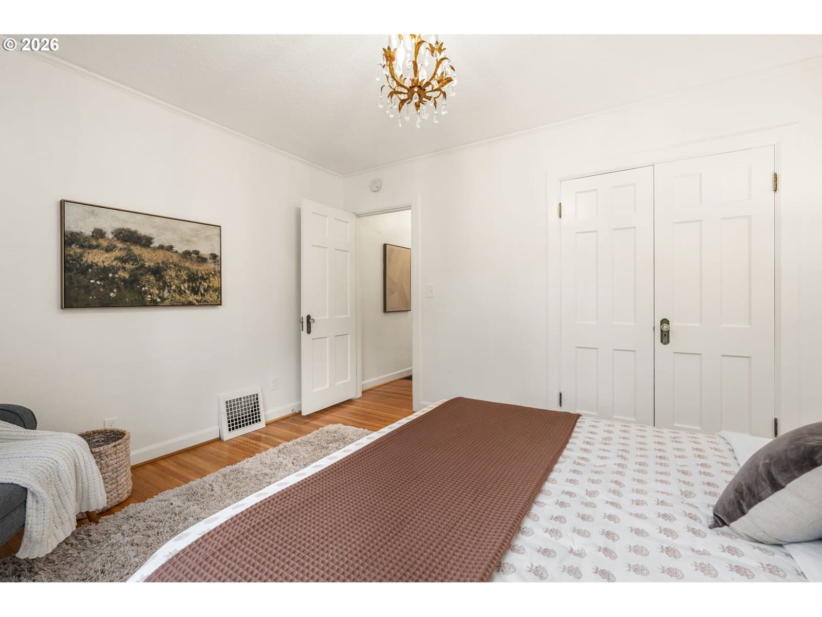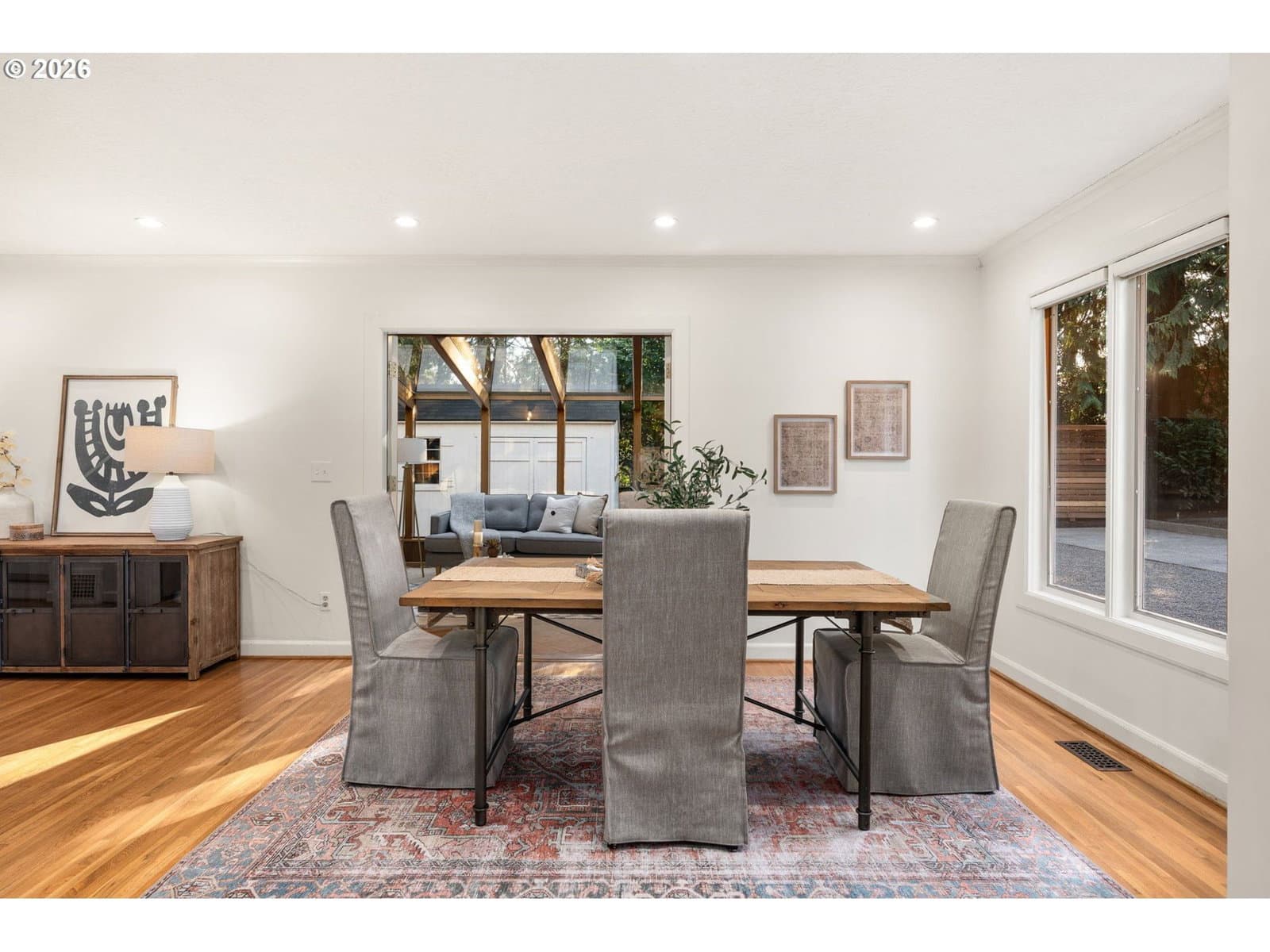 Love at first sight across from nature, wrapped in 1937 charm, and ready for its next chapter. Set on a generous double lot, this refined Saltbox blends classic architecture with modern updates in a serene, park-like setting. The main level features hardwood floors, crown molding, and recessed lighting. A formal living room with a wood-burning fireplace opens through an arched entry to the dining room, where French doors lead to a sunroom with tile floors and wood accents. A main-level bedroom and full bath offer flexible living options. Upstairs, the primary suite includes a remodeled en suite bath with tile finishes, heated floors, and walk-in shower, plus two additional bedrooms and an updated hall bath. The lower level provides bonus space, laundry, and storage. Fully fenced yard with patio, gated driveway, and tool shed. With a brand new roof and newer high-efficiency systems, this home blends enduring character with elevated comfort and timeless appeal… enter carefully, you might catch feelings! [Home Energy Score = 2. HES Report at https://rpt.greenbuildingregistry.com/hes/OR10227795]