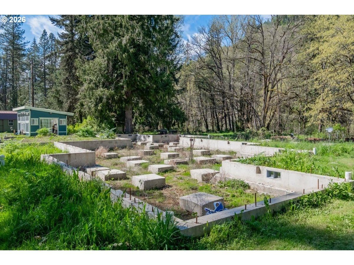 Welcome to 8 acres of quiet, peaceful living, where a beautiful creekside backdrop and established infrastructure set the stage for your next home. The foundation for a new stick built home is already in place, and some building materials are on site to help you get started. A manufactured home currently sits on the property, offering a comfortable spot to live while you build. Per county guidance, the manufactured home may remain once the new home is completed—buyer to verify with the county. The land itself offers a lovely mix of open space and natural beauty, along with generous storage options including a large garage, an old barn, and a newer greenhouse for gardening or hobby projects. With its creek frontage and private setting, the property feels like a peaceful retreat while still giving you room to create exactly what you envision.