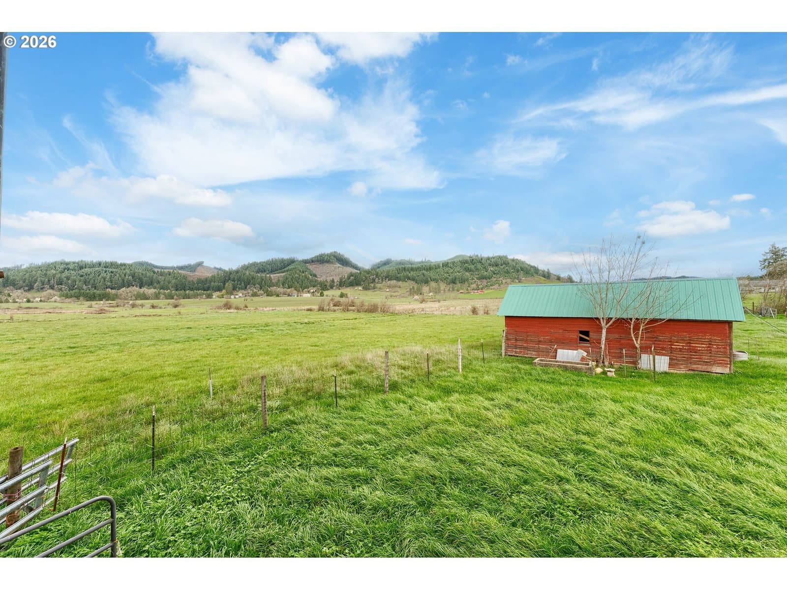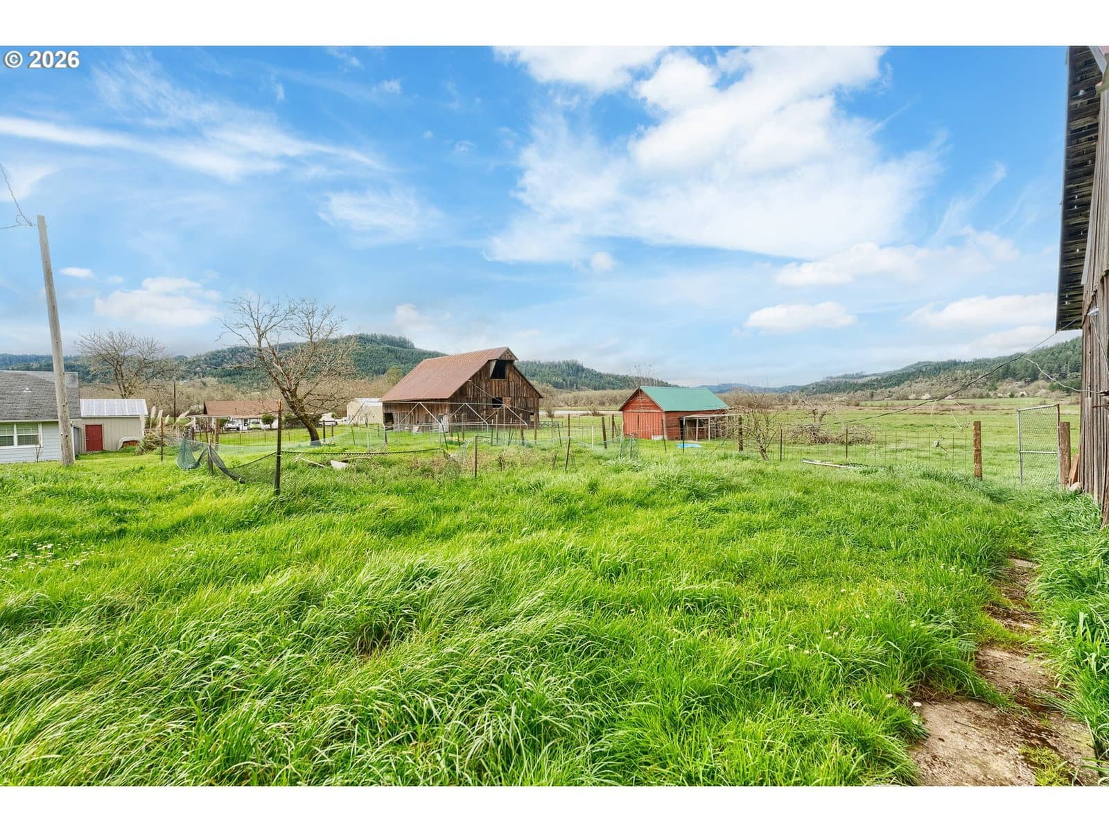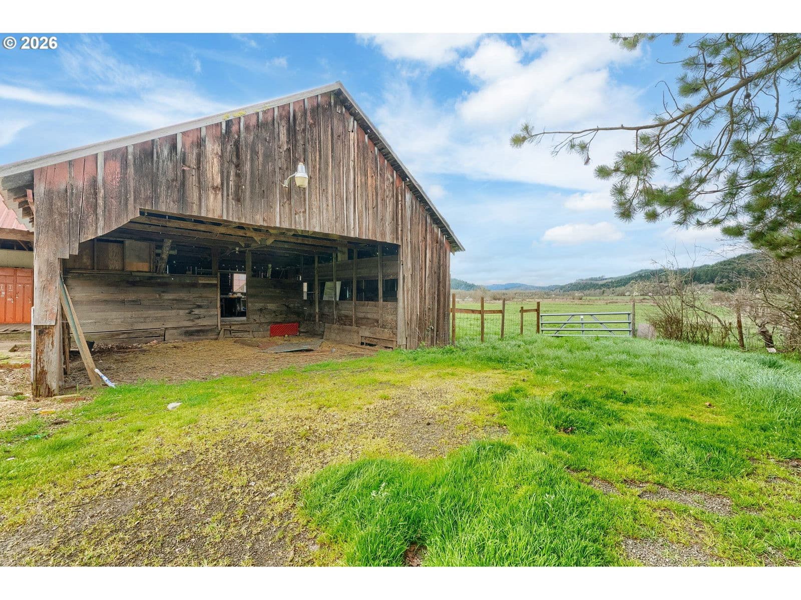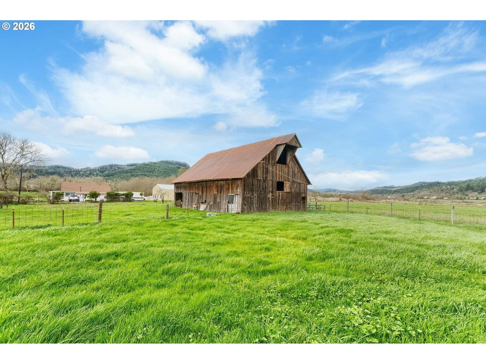 Bring your Victorian farmhouse dreams to life at this charming Yoncalla property! Situated on almost 10 usable acres, this 3-bedroom, 1.1-bath farmhouse offers 1,948 SF with high ceilings, wood floors, and a warm wood-burning fireplace. Originally built in 1904 by the Daugherty family—early Yoncalla grocers—this historic home sits on land tied to the Applegate settlement, when the Applegate family parted from the Oregon Trail. Today, the nearby Applegate Museum and family homestead remain close neighbors, adding to the property’s rich sense of place.The nearly 10-acre property offers a beautiful blend of open pasture, natural landscape, and creek frontage. Approximately 6 acres are productive hay field that have yielded around 30 one-ton round bales each summer, with potential for even greater production through additional land maintenance. Yoncalla Creek runs through the property, and a seasonal pond could potentially be restored to year-round use with some upkeep. Wildlife is a regular part of daily life here, with deer, turkey, geese, ducks, loons, and even the occasional bear passing through the land.The original barn—dating back to the home’s early days—still stands and has supported a variety of animals over the years, including horses, cattle, donkeys, pigs, and goats. The property is well set up for country living with a barn, workshop, tool shed, poultry coop, garden space, cross fencing, RV parking, and expansive open land ready for animals, agriculture, or recreation.Inside the home, portions of later additions have been thoughtfully stripped back over time to reveal elements closer to the original structure, leaving both character and opportunity for the next steward to continue uncovering and restoring its historic charm.With peaceful territorial and valley views, paved access, and two separate taxable lots, this property offers flexibility and space to create your ideal hobby farm, homestead, or rural retreat or destination wedding/ event venue.