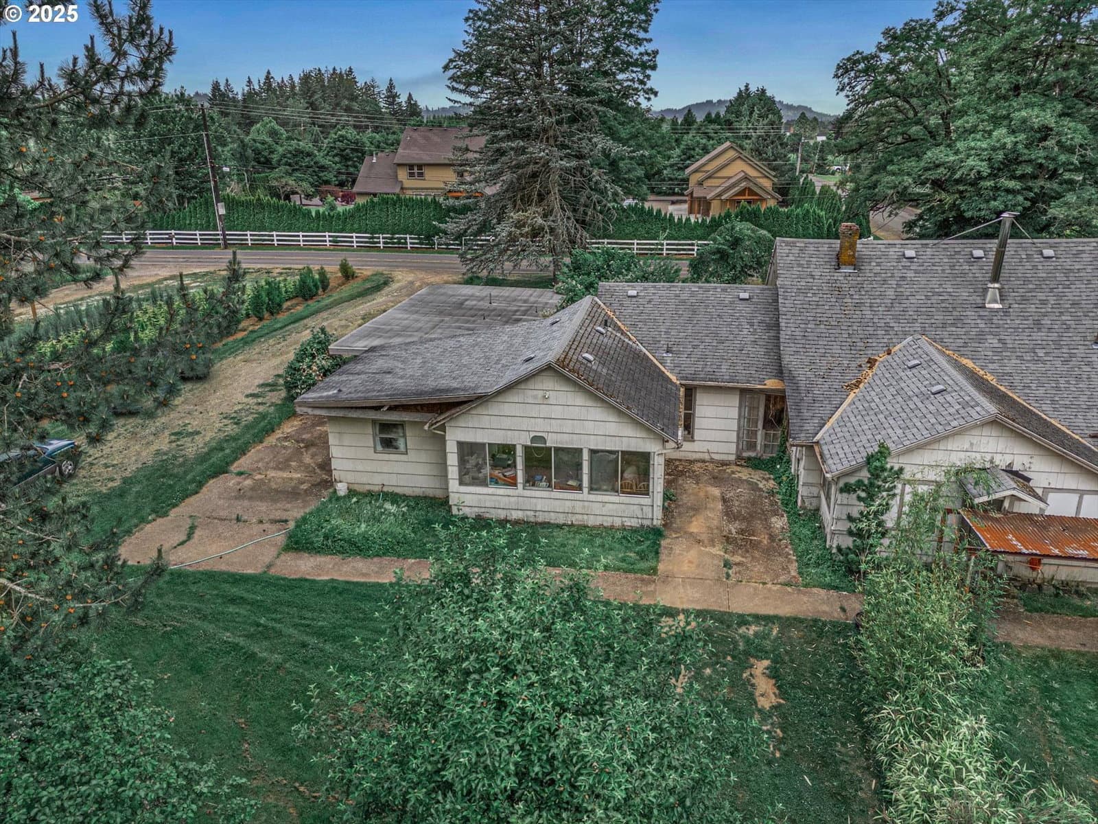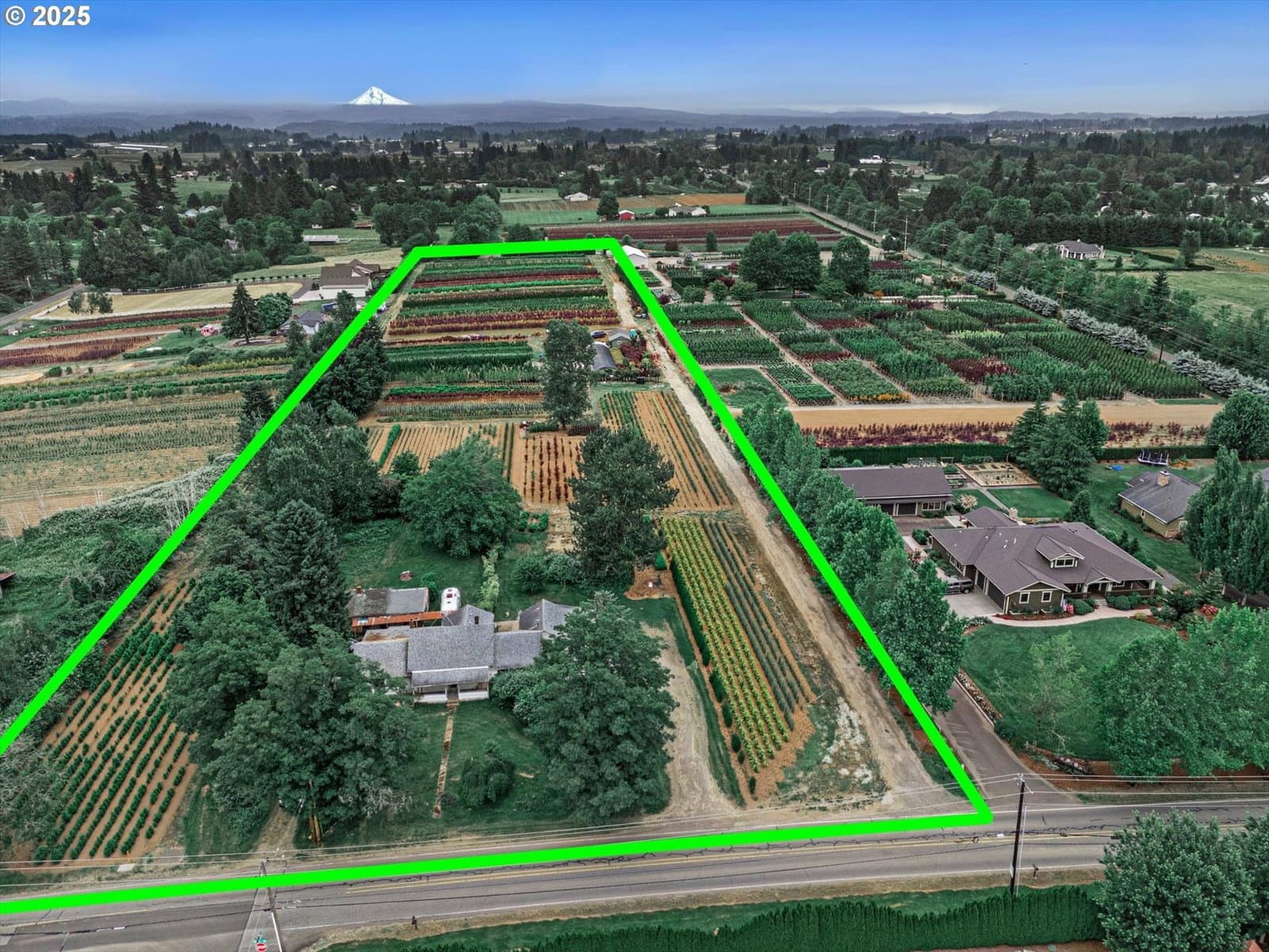 Flat, just under 9 acres with stunning Mt. Hood views. House is likely a tear down and not financeable in current condition. Land is leased to a nursery through July 2026, featuring existing nursery stock and quality soil. Former care home with an additional small cottage currently rented. Please do not walk the property without a scheduled showing or disturb tenants. Access to structures upon accepted offer. Buyer to do due diligence on allowable uses and financing. A beautiful setting to build your dream home or continue nursery operations.